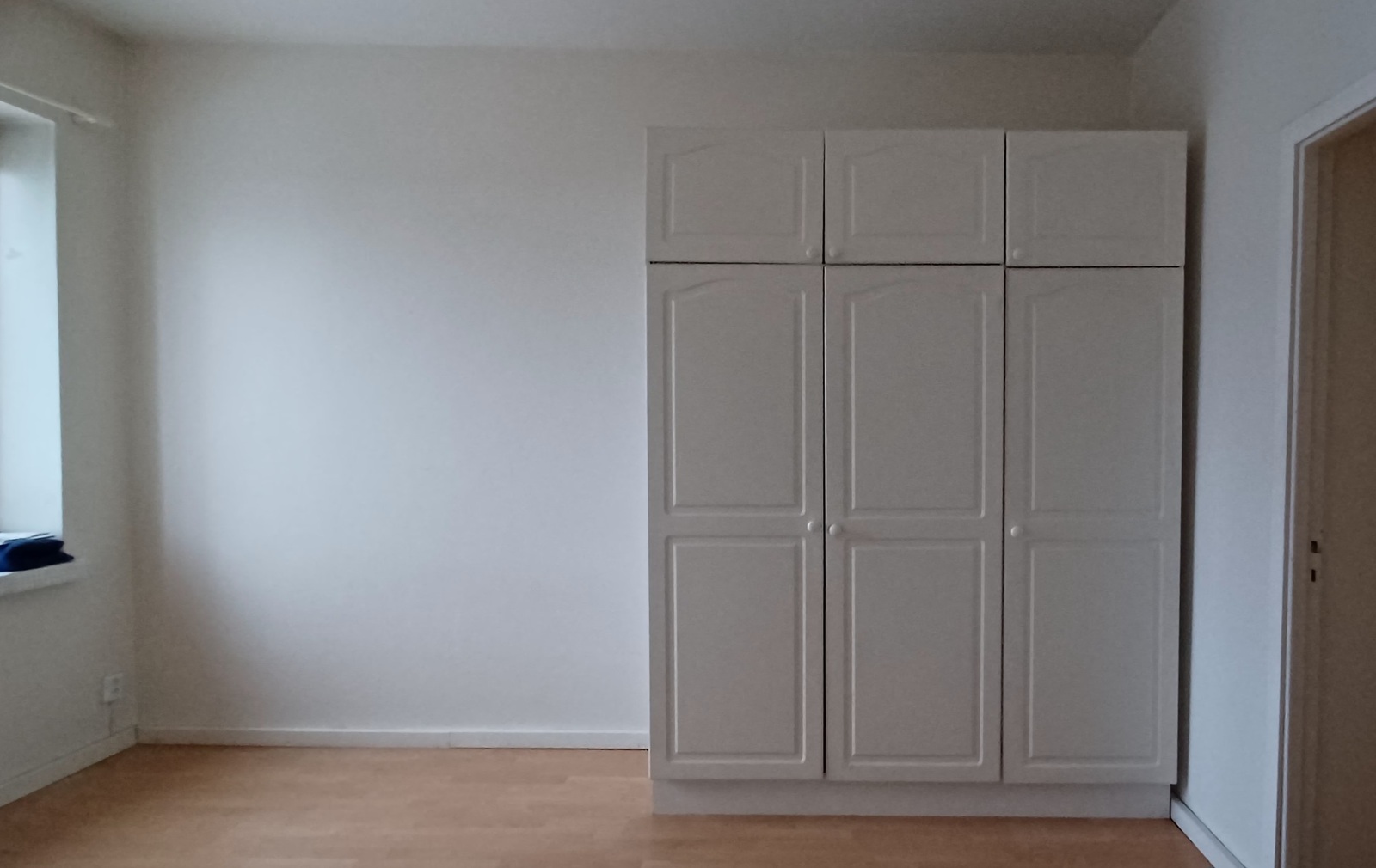 Valoisassa makuuhuoneessa on lisää säilytystilaa tuomassa iso vaatekaappi.