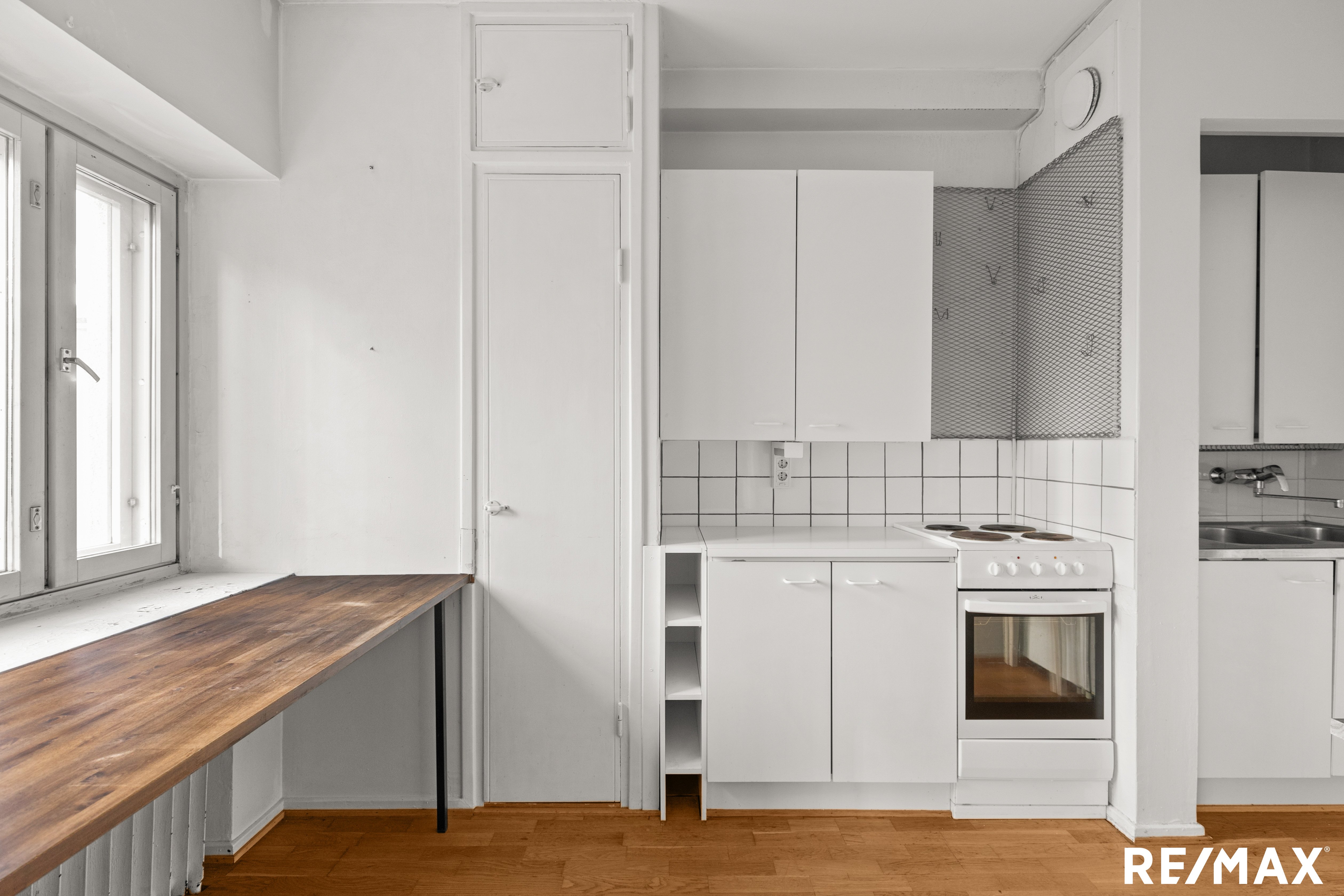 Tämä Pengerkadun toisen asuinkerroksen koti houkuttelee jo pelkästään sen sijainnin puolestaan. Lisäksi asunnon valoisan ja muunneltavan pohjaratkaisunsa ansiosta tämä koti soveltuu erinomaisesti niin ensiasunnon ostajille sekä sijoittajille, kuin kaupunkiasunnoksikin. Asunnosta on länteen Pengerkadulle avautuva näkymä. Asunnon olohuoneessa on makuukäyttöön suunniteltu alkovi ja tilava keittiö. Eteisen sekä makuualkovin kiinteiden kaappien lisäksi huoneistolle kuuluu tilava verkkovarasto. Kylpyhuone tullaan remontoimaan kokonaisuudessaan juuri yhtiössä käynnistyvän putkiremontin yhteydessä. Putkiremontin odotetaan valmistuvan vuoden 2026 aikana kokonaisuudessaan ja tämän huoneiston osalta ennakoitu kustannusarvio on noin 53000euroa, joka tullaan jyvittämään urakan päätyttyä.