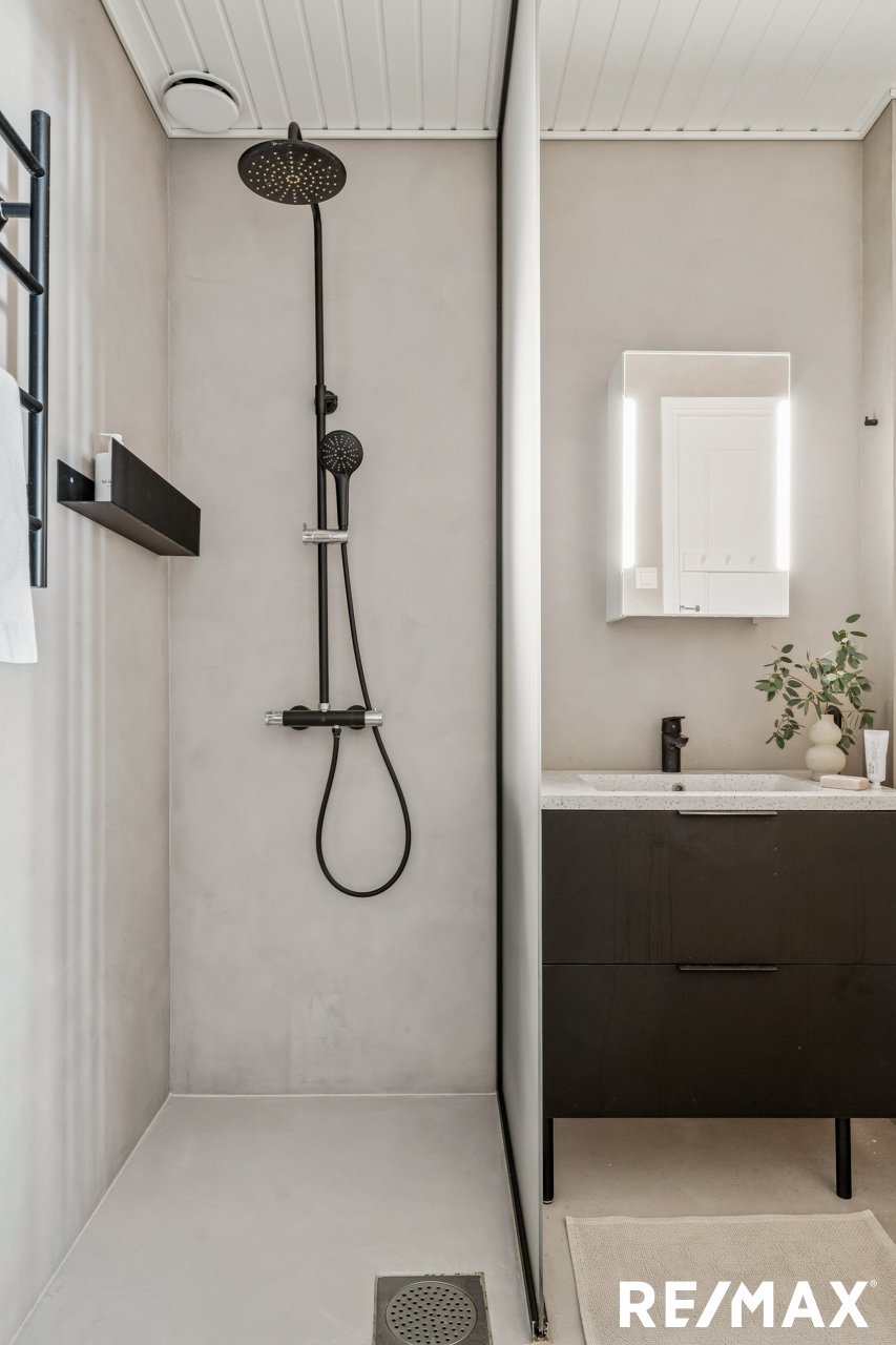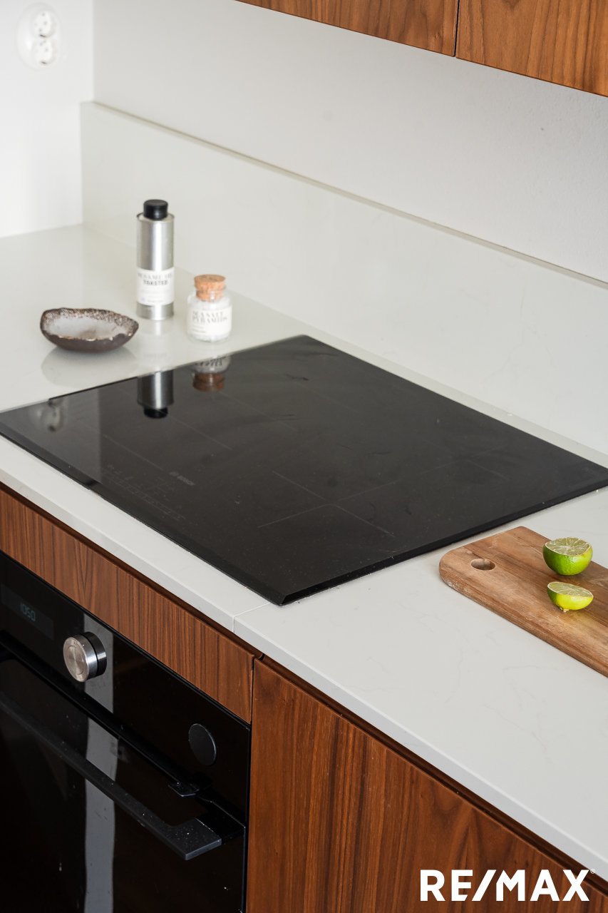 Asunnon keittiö on remontoitu laadukkaasti vuonna 2022 ja siellä on runsaasti työ- ja säilytystilaa sekä tilaa pienelle aamiaispöydälle. Keittiön yhteydessä on käytännöllinen kodinhoitotila. Olohuoneessa on tilaa isommallekin ruokapöydälle ja sohvaryhmälle, mikä tekee siitä täydellisen paikan niin arkeen kuin juhlaan.