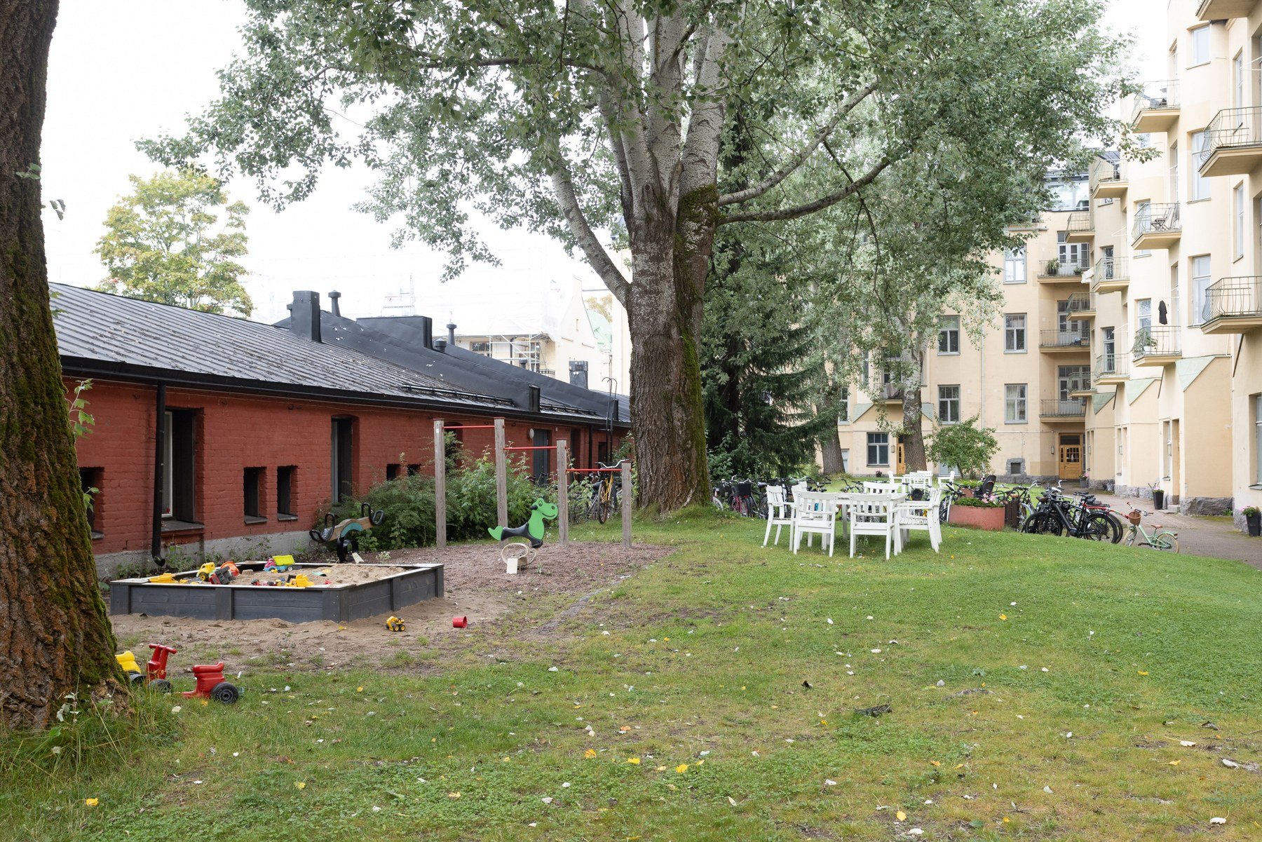 Kapteeninkatu 4–6 piha-alue: salaojat, pumppaamo, ulkoseinien eristys. Valmis 06/2023.