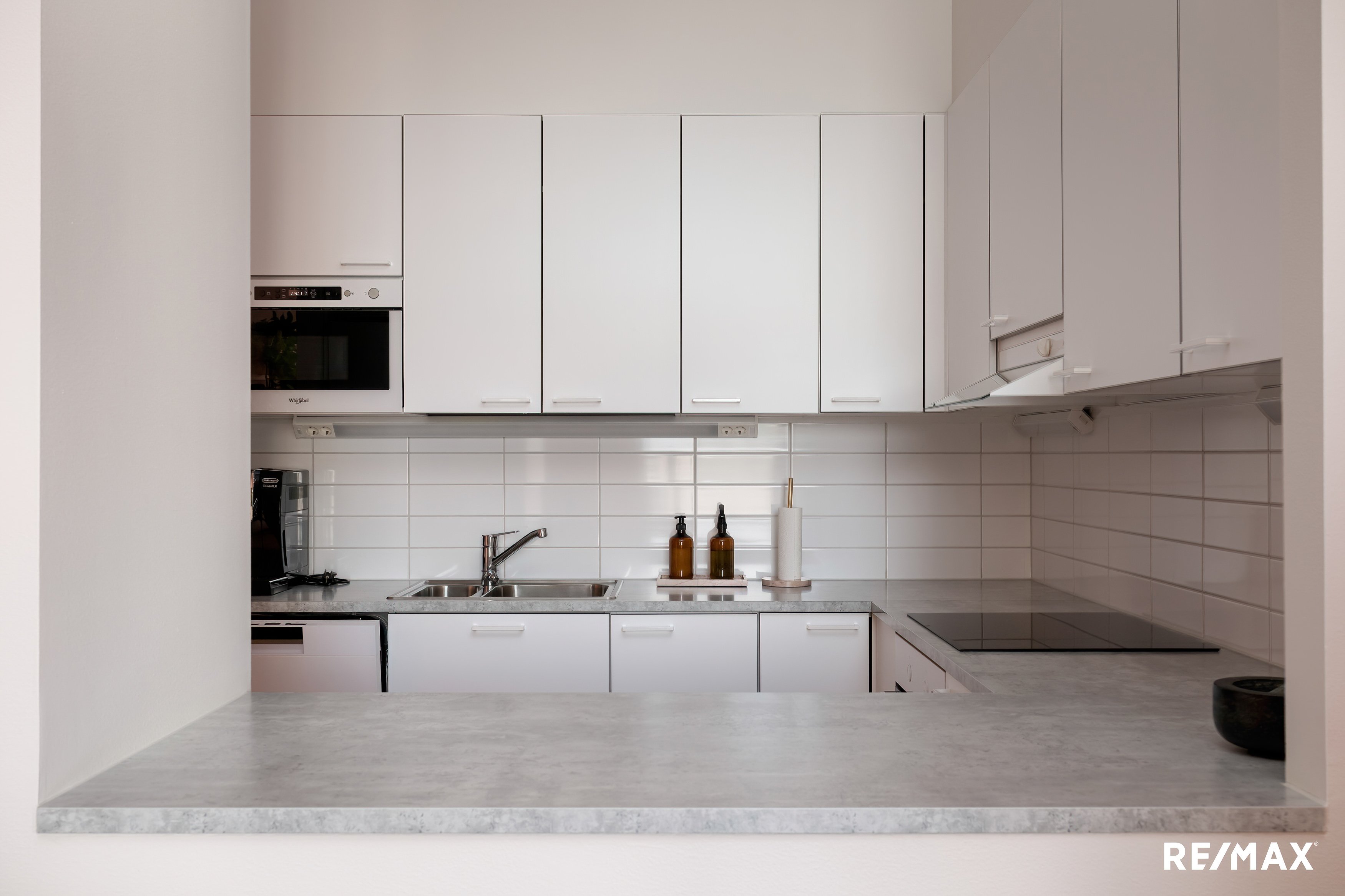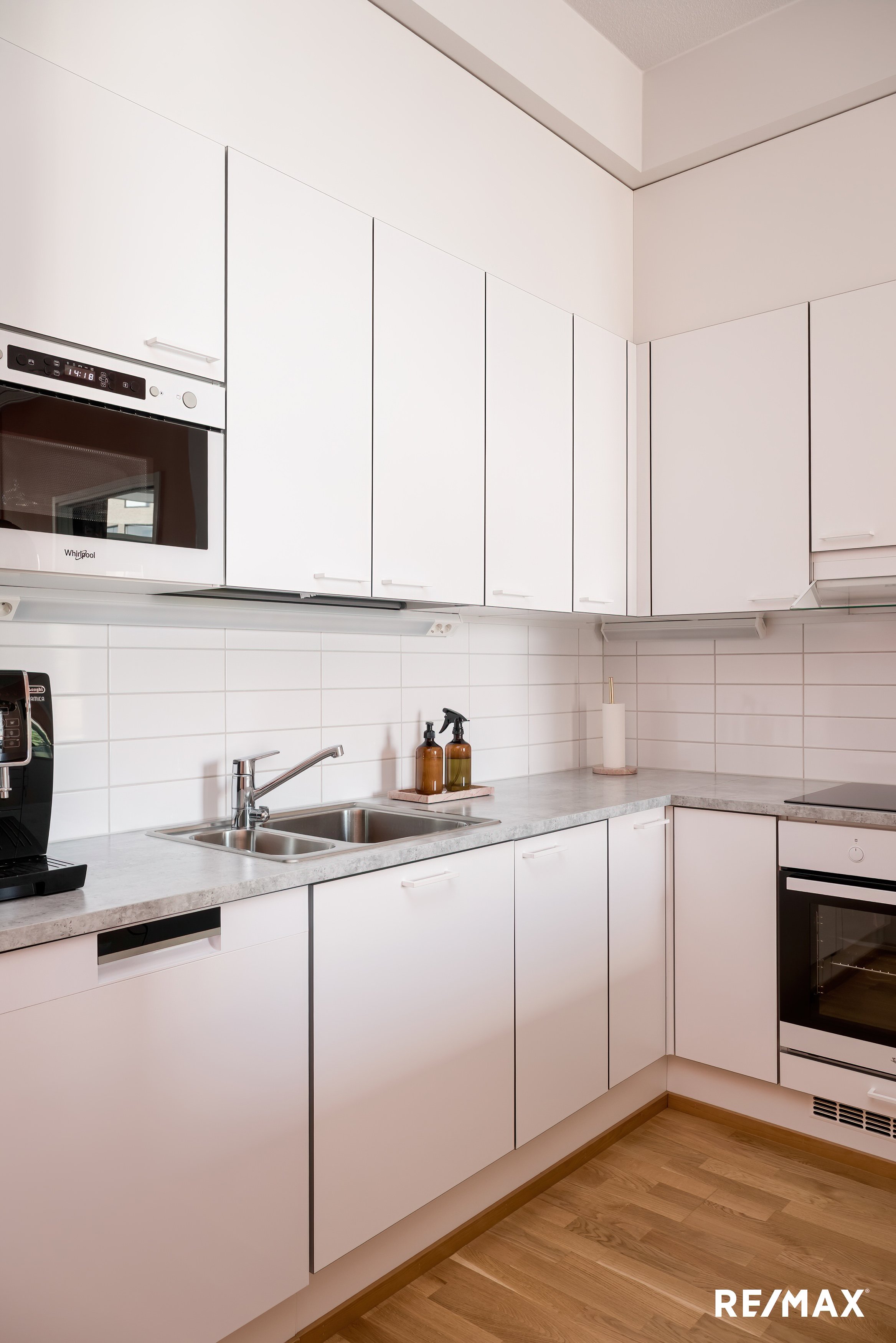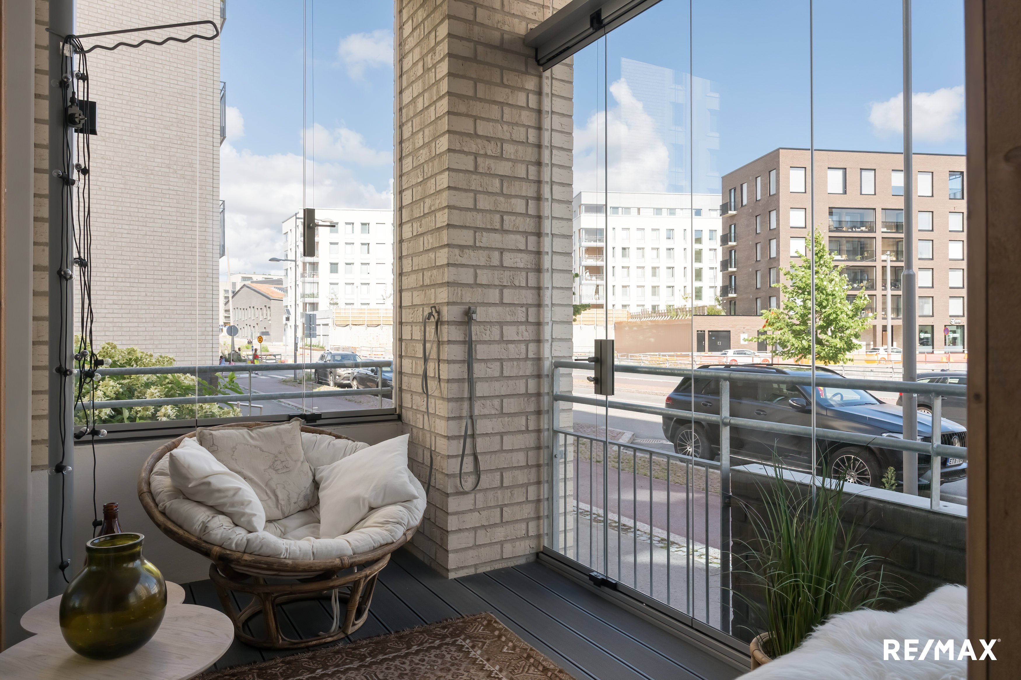 Asunnon korkea huonekorkeus, moderni ilme ja laadukkaat materiaalit tekevät siitä houkuttelevan vaihtoehdon. Keittiö on avoin ja kaappitilaa on enemmän kuin monessa vastaavankokoisessa kaksiossa. Parvekkeelta avautuvat näkymät merelle päin, ja se antaa mahdollisuuden nauttia ulkoilmasta.