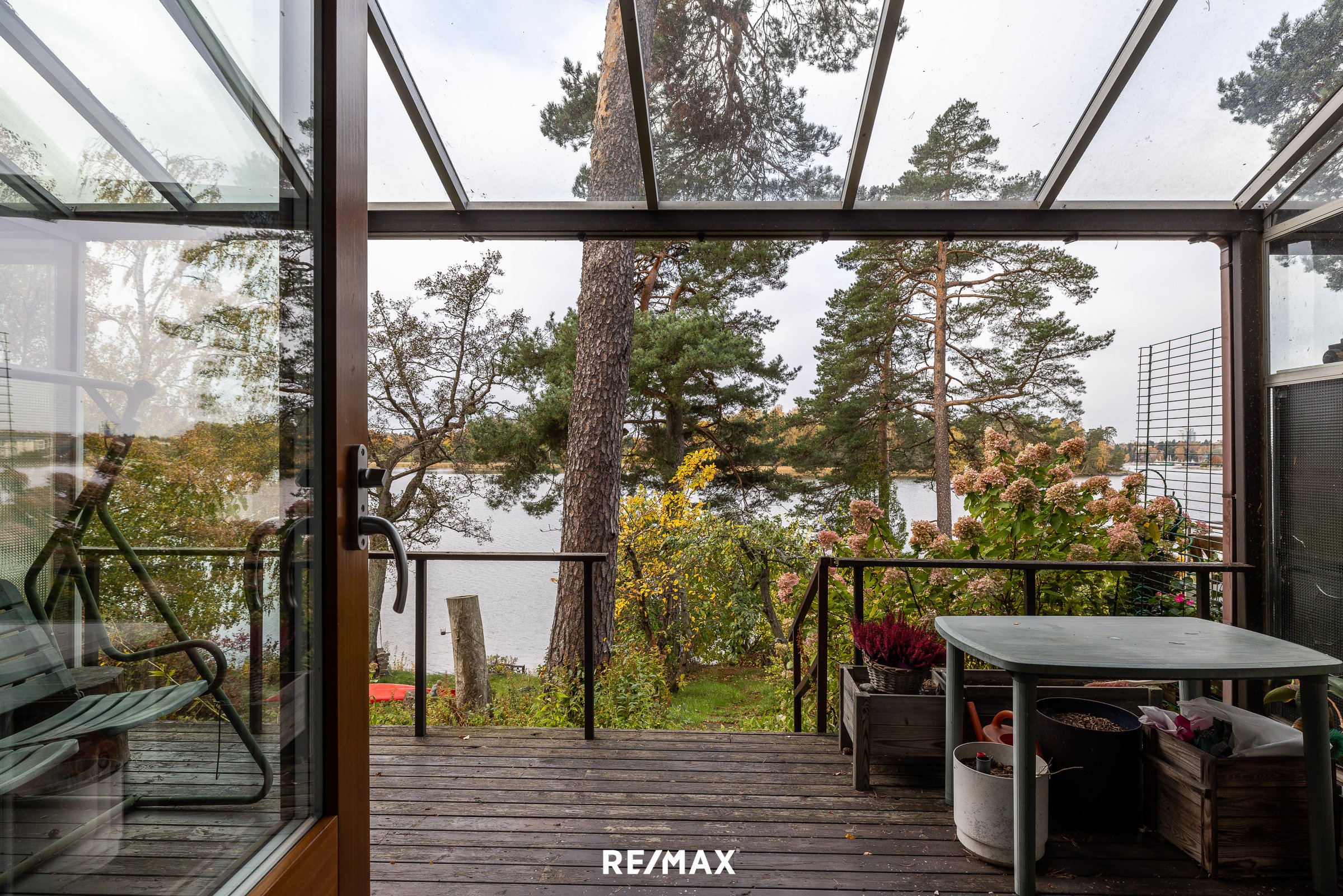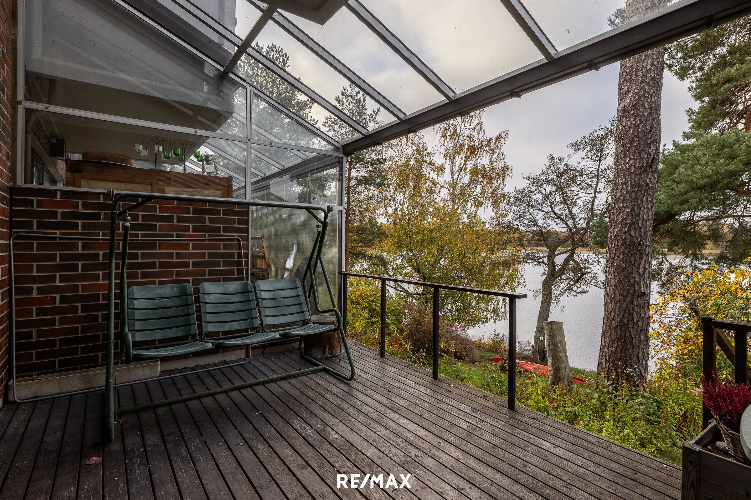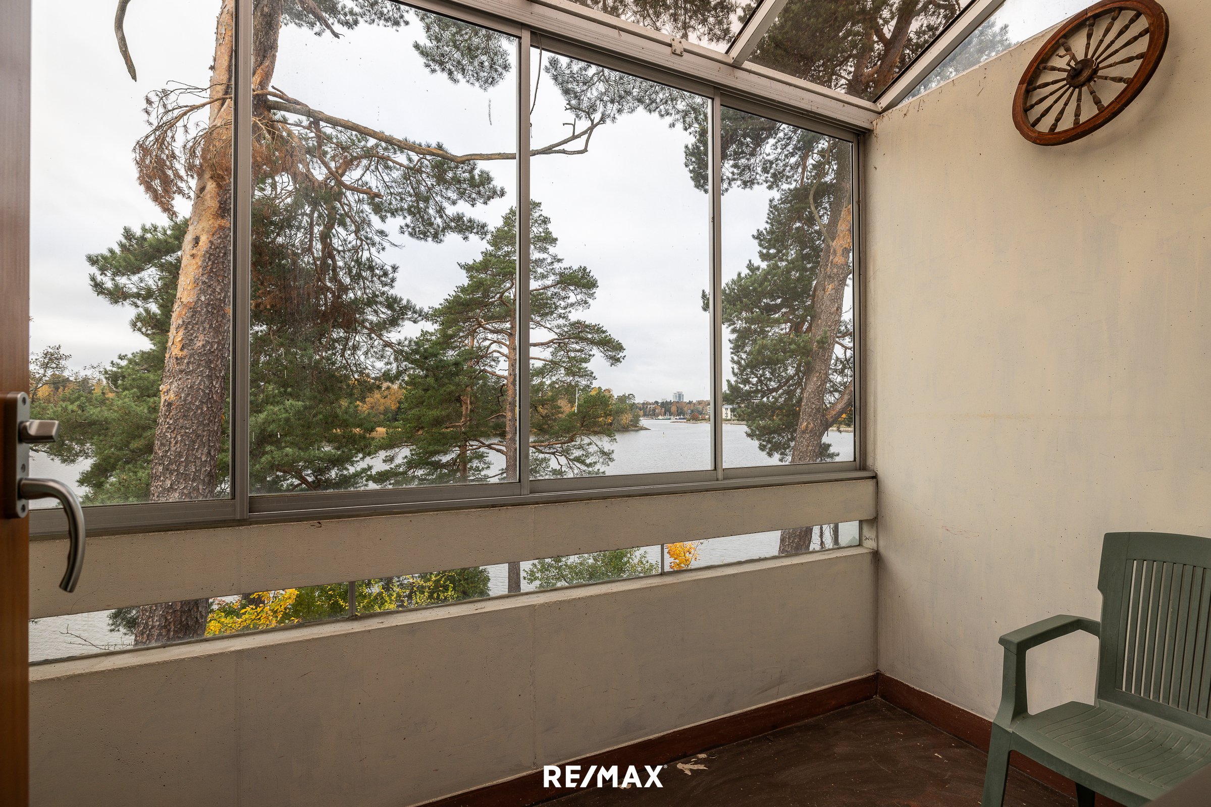 - Lasitettu parveke, katettu terassi ja rantaviivaan rajoittuva piha lounaaseen.
