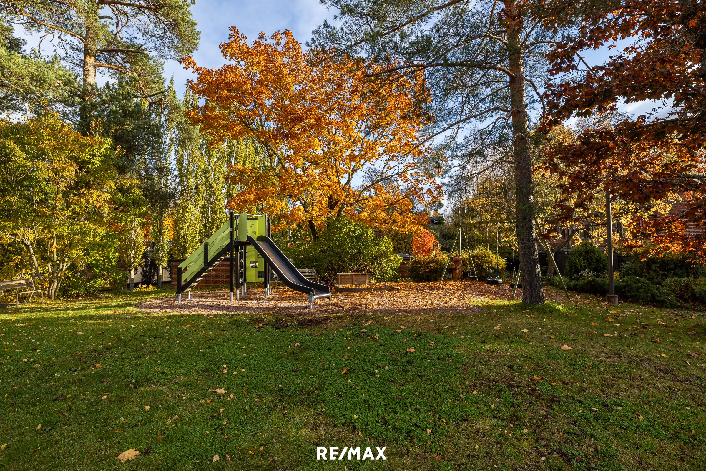Yhteisessä käytössä on tunnelmallinen grillipaikka savustimineen. Perheen pienimmille löytyy turvallinen ja hyvin hoidettu leikkipaikka. Lisäksi taloyhtiön kaunis ja vehreä pihapiiri tarjoaa mukavan paikan rentoutumiseen ja lasten leikkeihin.