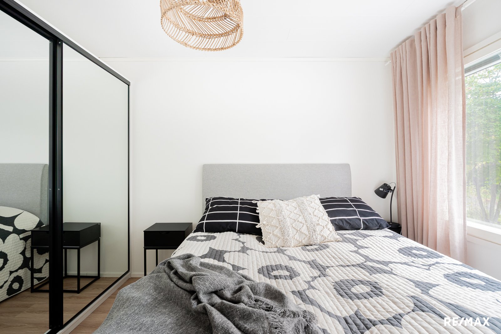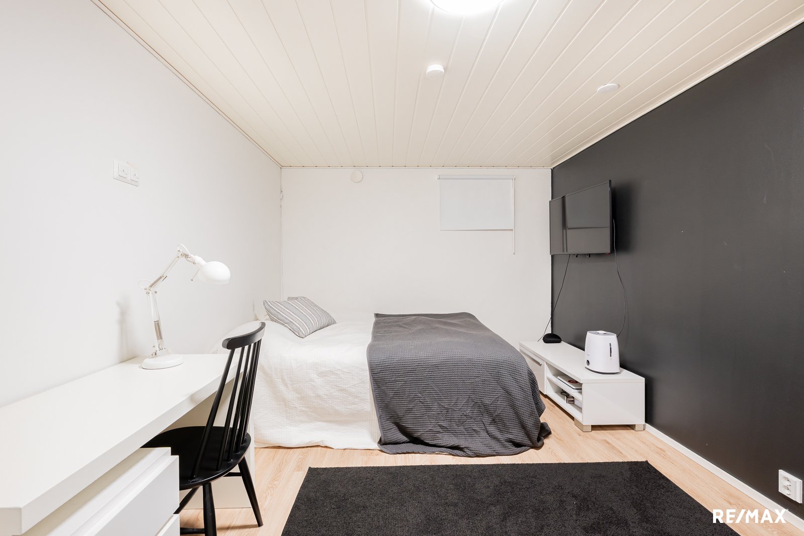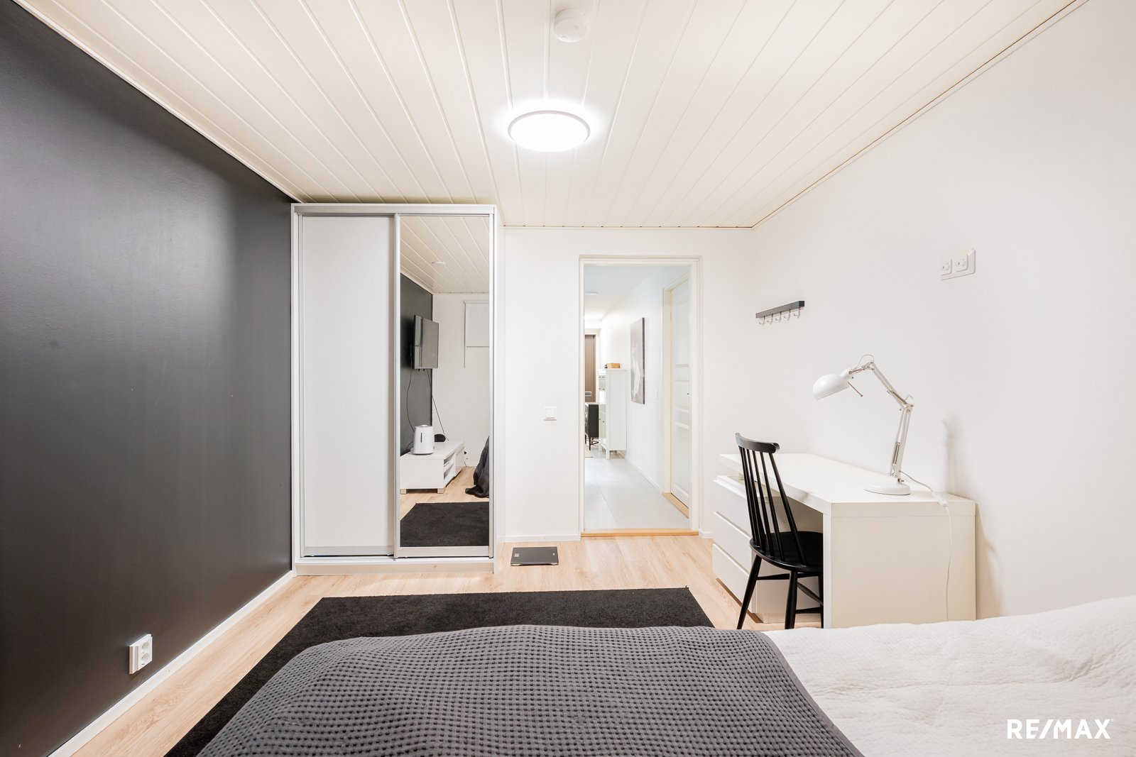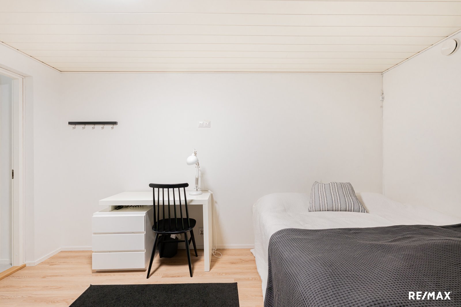 Asunnossa on kaksi makuuhuonetta ja lisäksi alakerrassa on erillinen huone, jota voi käyttää esimerkiksi harrastetilana - nykyisellä omistajalla se on ollut makuuhuonekäytössä.