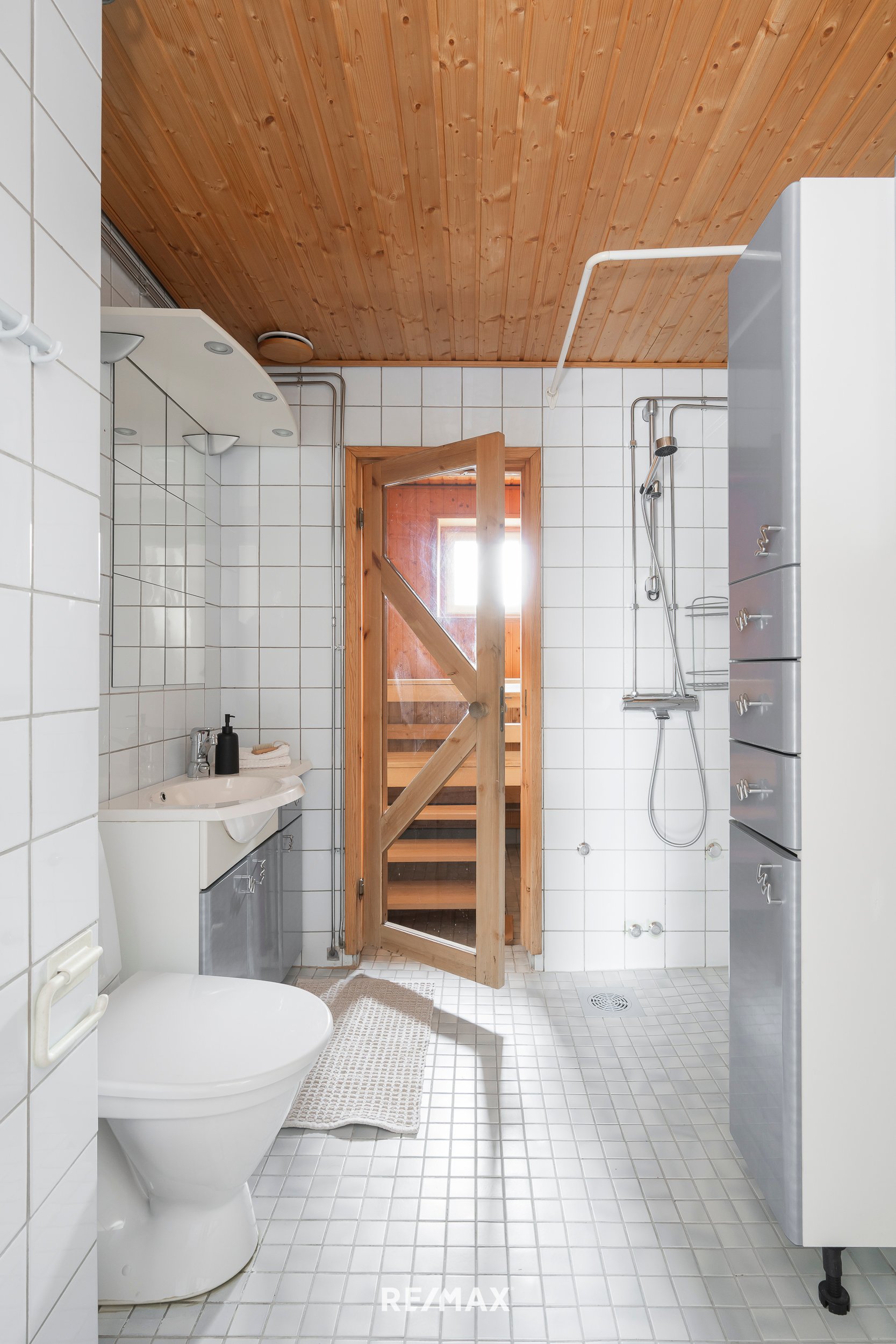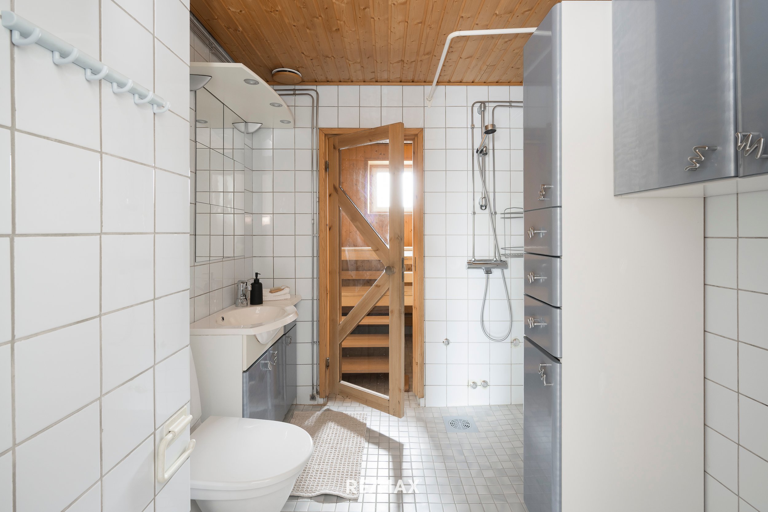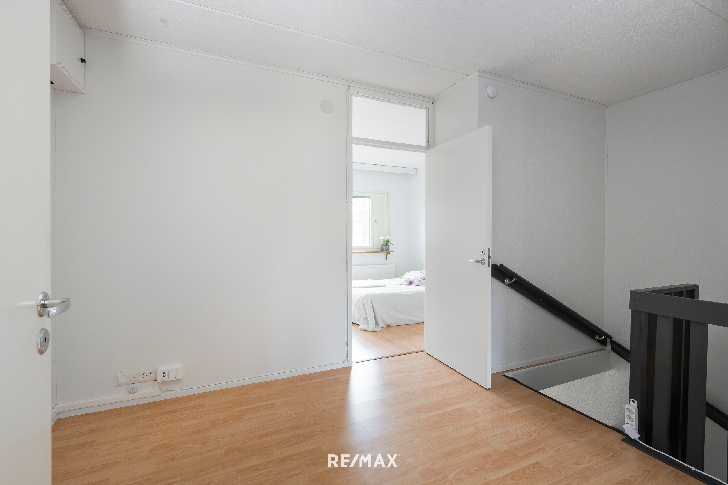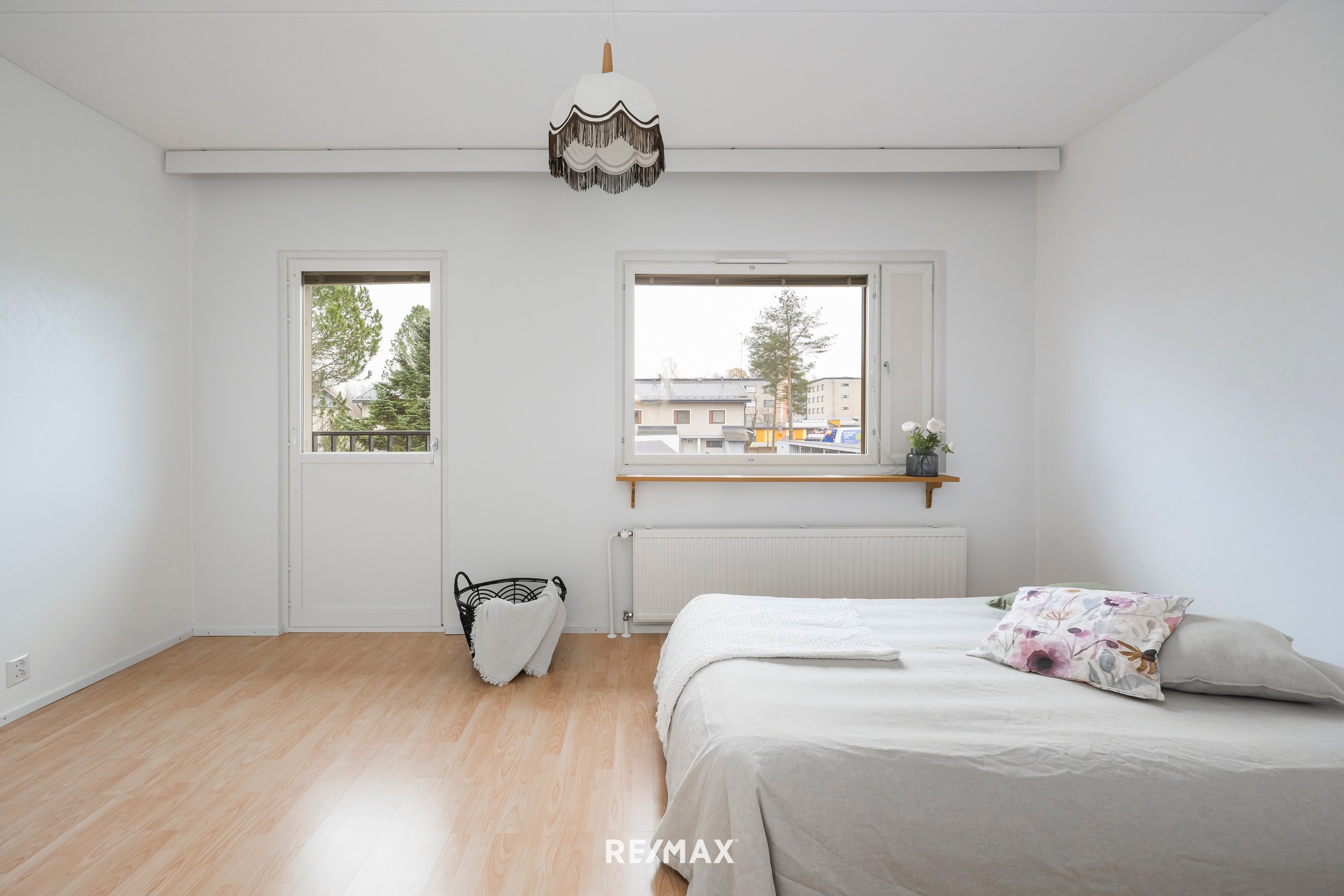 Yläkerrassa sijaitsevat kaksi tilavaa makuuhuonetta tarjoavat mukavat puitteet levolliseen lepoon, ja toisessa makuuhuoneessa on ranskalainen parveke. Asunnon saunassa rentoudut kiireisen päivän jälkeen, ja alakerran juuri uudistettu wc tuo lisämukavuutta arkeen.