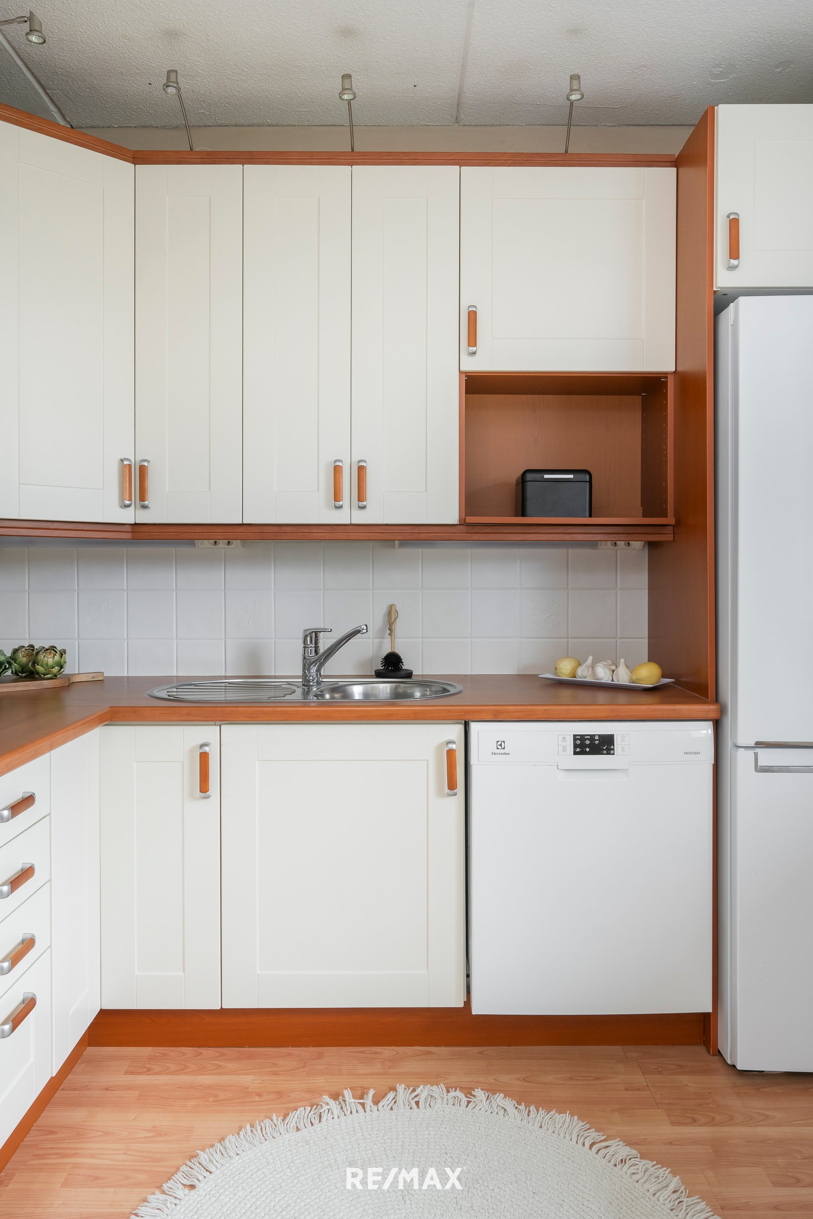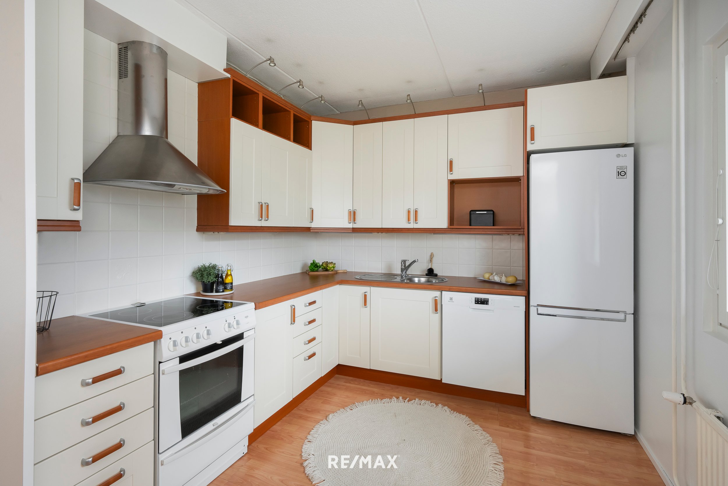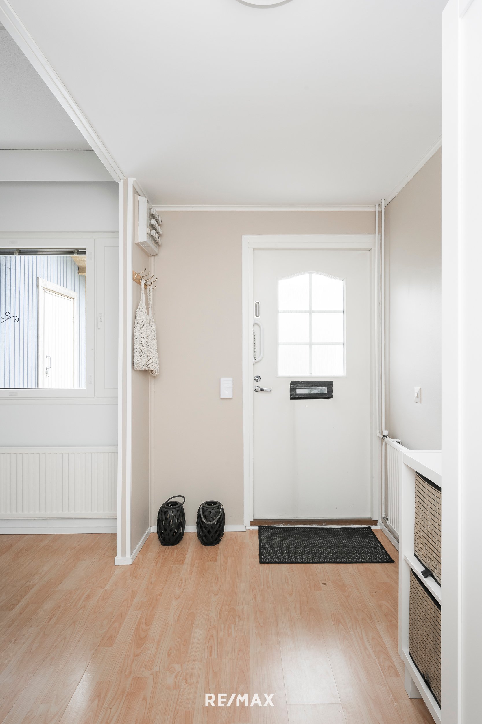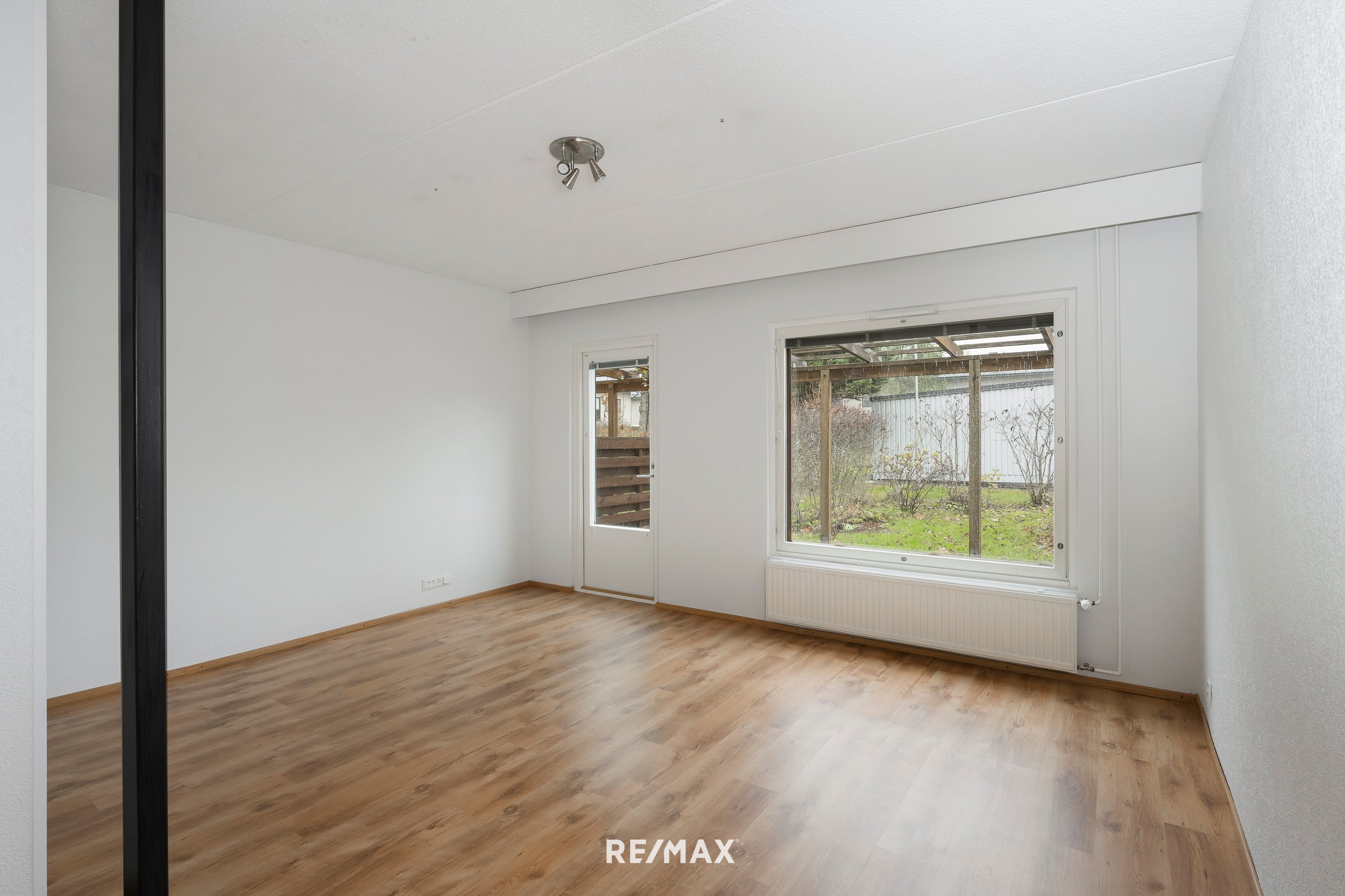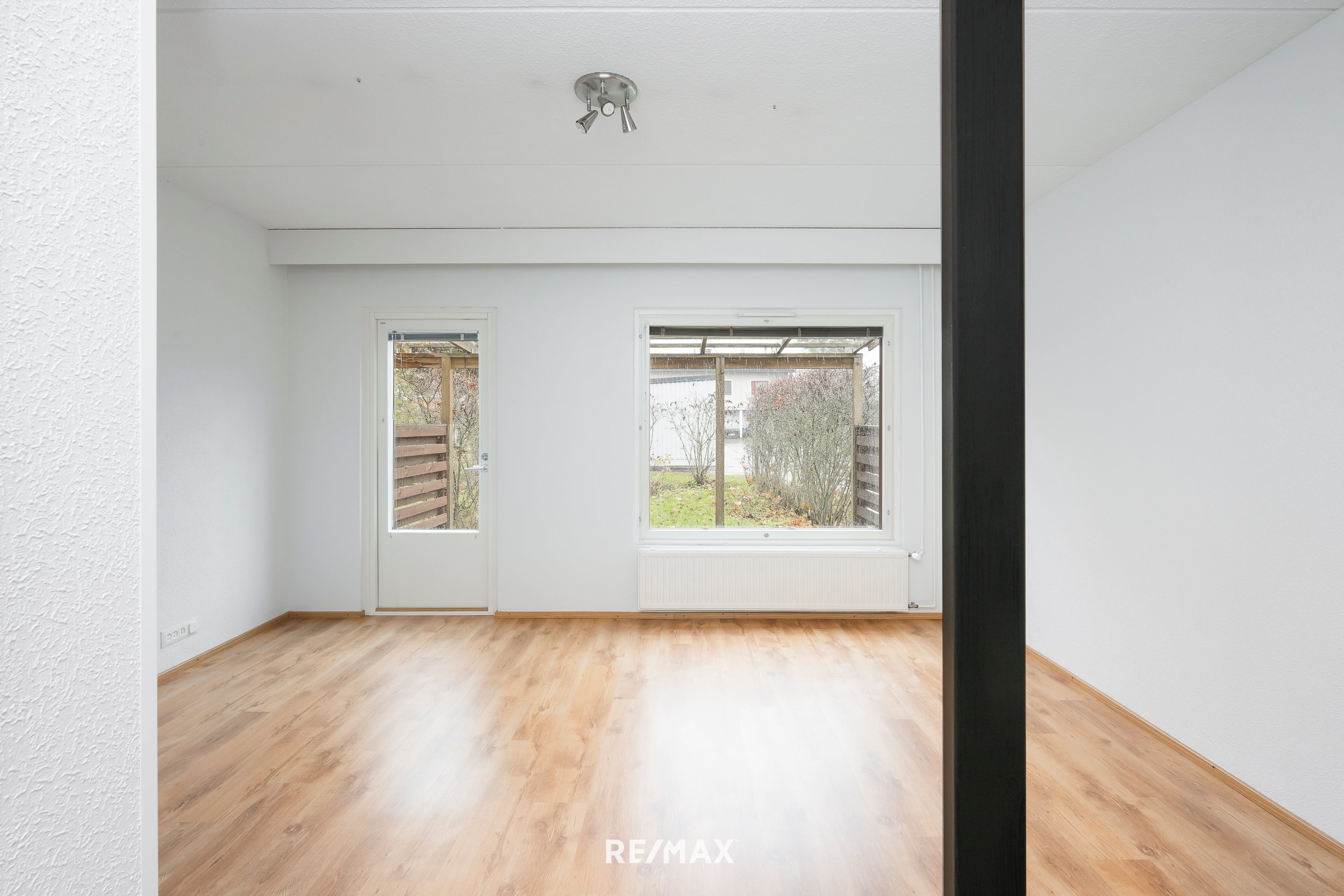Kodin valoisa ja avara olohuone kutsuu viihtymään, ja sieltä on käynti omalle terassille, joka avautuu aidatulle takapihalle. Erillinen keittiö tarjoaa runsaasti kaappitilaa ja modernit kodinkoneet tekevät arjesta sujuvaa.