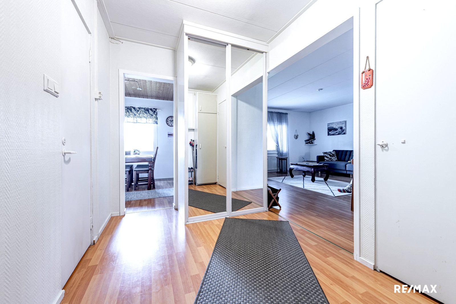 Asunnossa on kaksi makuuhuonetta, tilava olohuone sekä hyvin varusteltu keittiö, jossa on muun muassa astianpesukone ja jääkaappipakastin. Kylpyhuone on remontoitu ja siellä on liitäntä pesukoneelle. Asunnon pinnat ovat hyvässä kunnossa, ja laminaattilattiat tuovat modernia ilmettä.