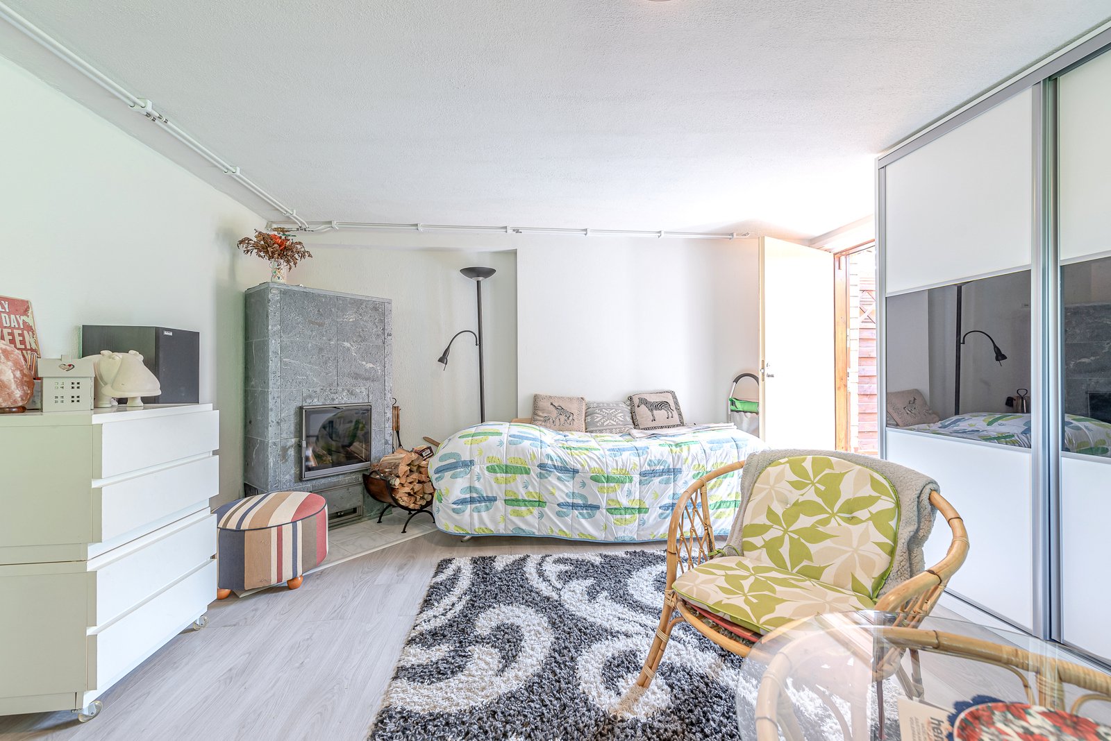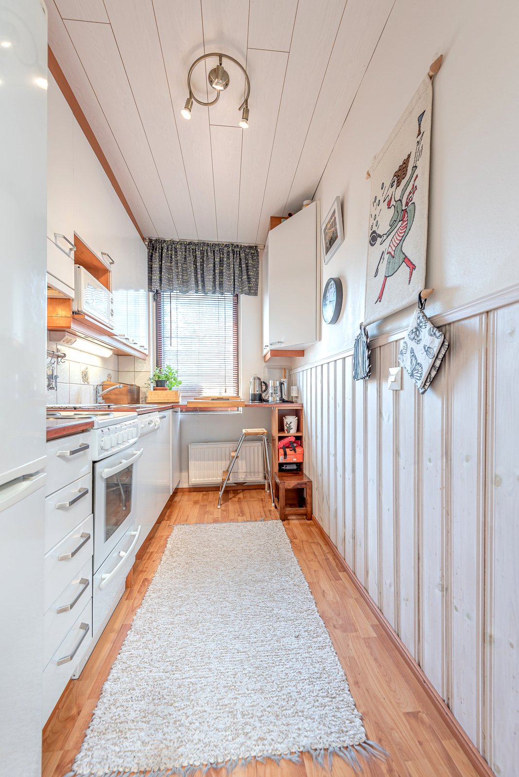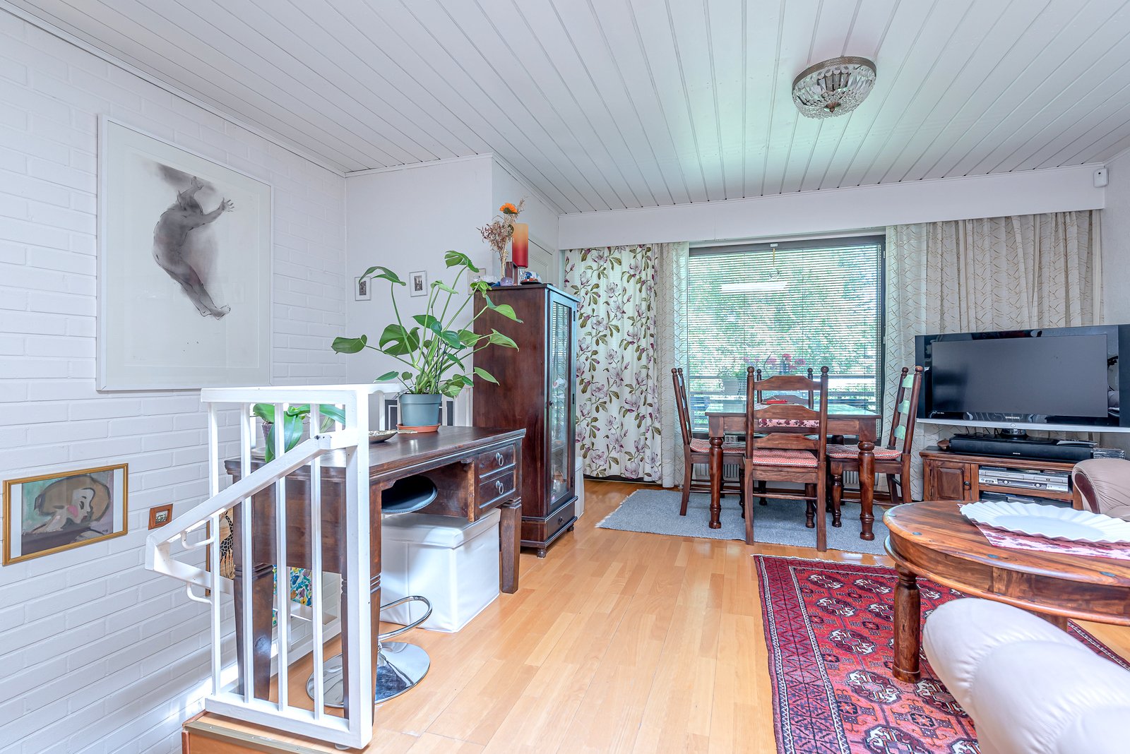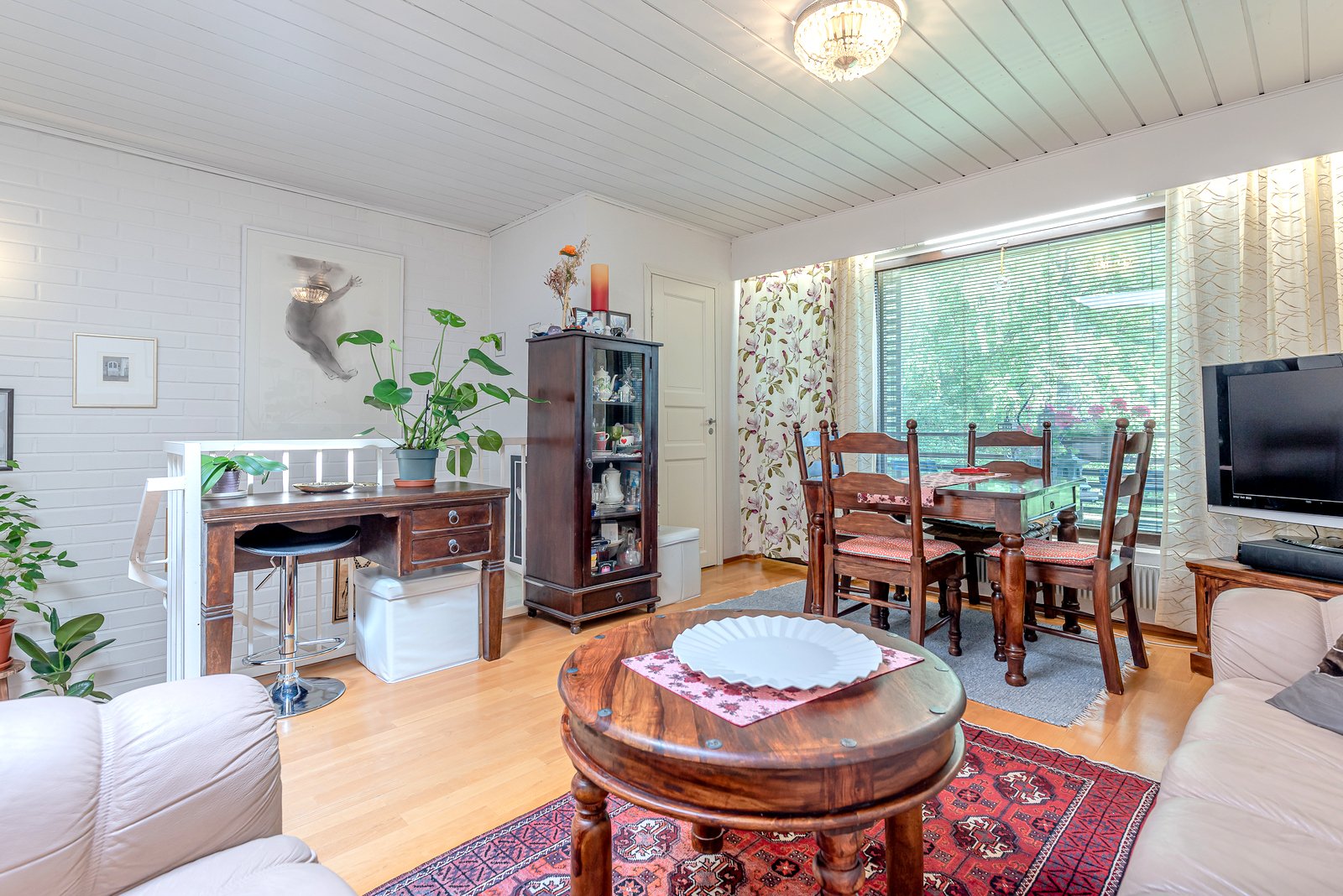 Kodissa on tilava olohuone, johon tulee valoa isojen ikkunoiden ja kattoikkunan kautta, Keittiö on pienehkö, mutta sieltä löytyy kaikki tarpeellinen arjen kokkailuihin. Asunnon sauna tarjoaa rentouttavat löylyt ja saunan jälkeen rentoutuminen on takkatulen ääressä luksusta. Takkahuoneen kautta pääsee myös vilvoittelemaan pihalle saunan löylyistä.