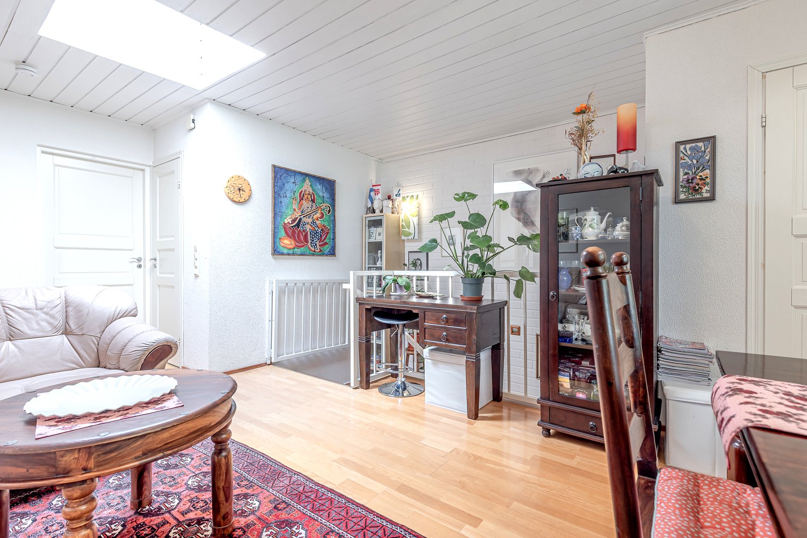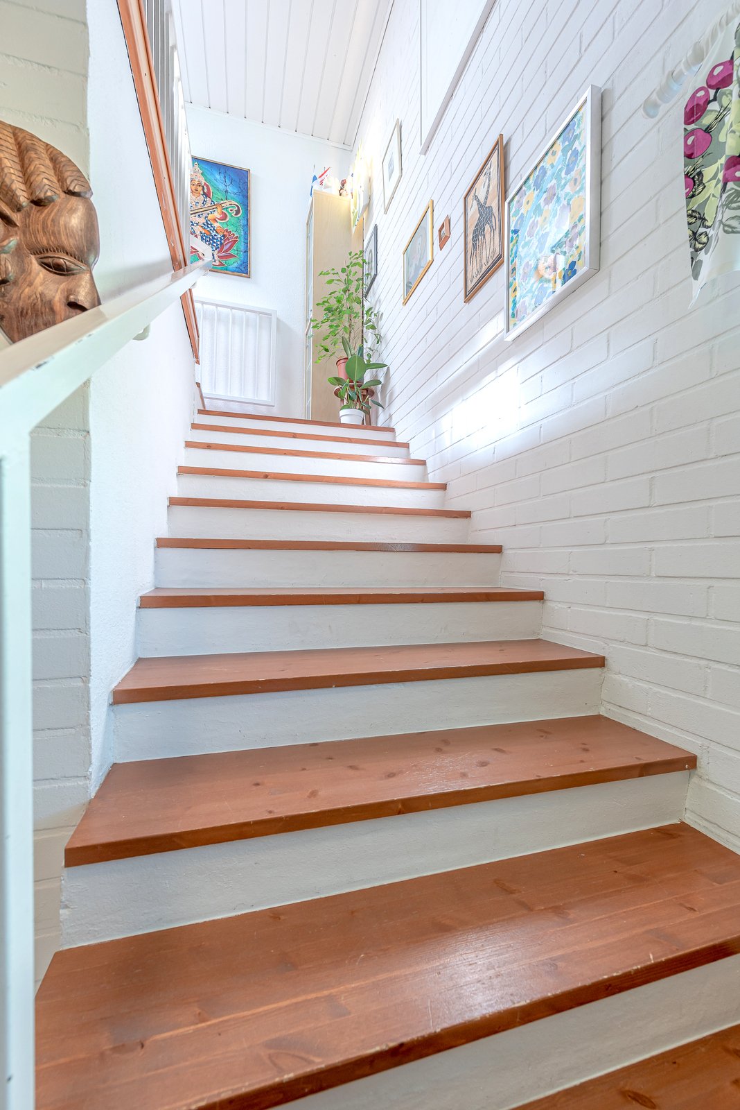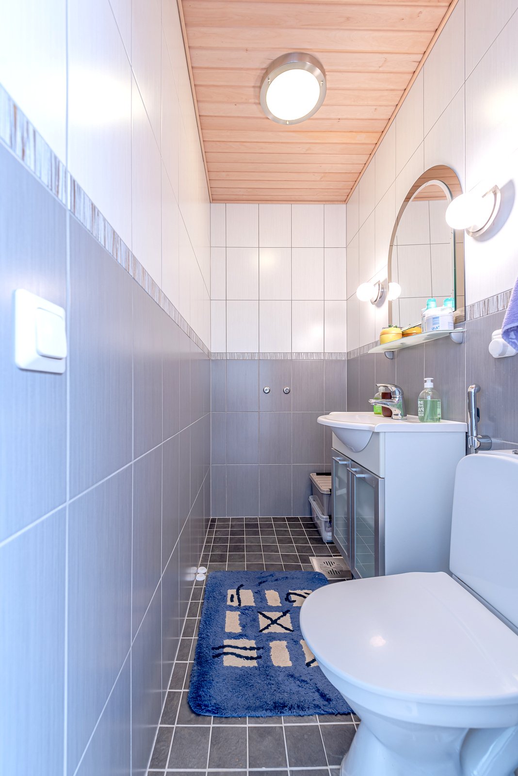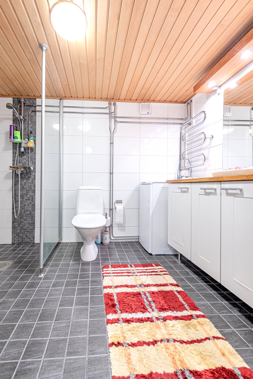 Kodissa on tilava olohuone, johon tulee valoa isojen ikkunoiden ja kattoikkunan kautta, Keittiö on pienehkö, mutta sieltä löytyy kaikki tarpeellinen arjen kokkailuihin. Asunnon sauna tarjoaa rentouttavat löylyt ja saunan jälkeen rentoutuminen on takkatulen ääressä luksusta. Takkahuoneen kautta pääsee myös vilvoittelemaan pihalle saunan löylyistä.