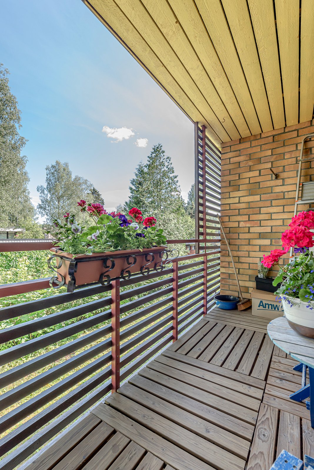 Päätyasunnon piha-alue on suojaisa ja tarjoaa mukavasti tilaa ulkoiluun ja oleskeluun. Lisäksi asunnossa on parveke, jossa voi nauttia kesäpäivistä. Säilytystilaa on runsaasti, muun muassa vaatehuoneen ja kaappien muodossa.