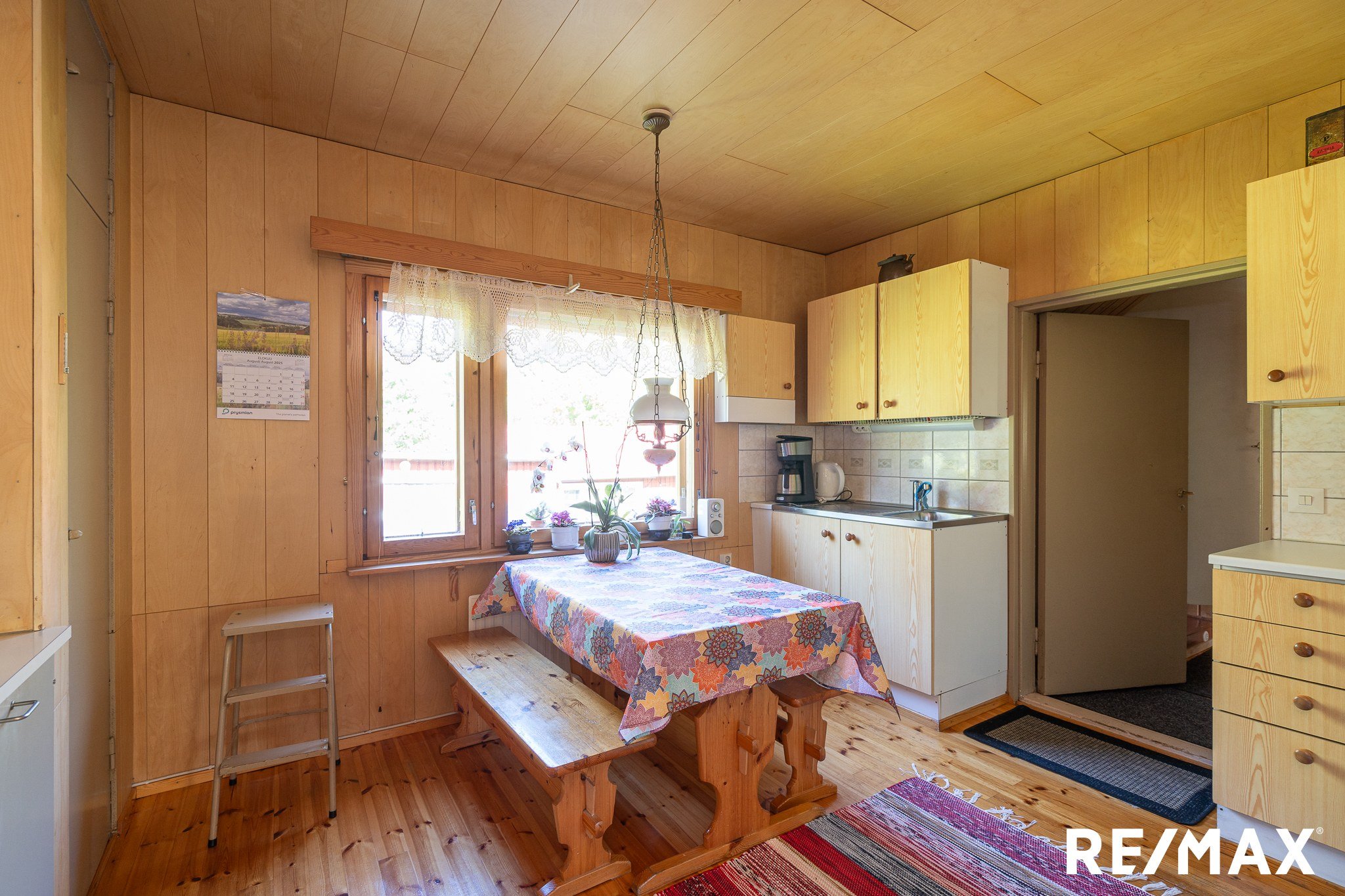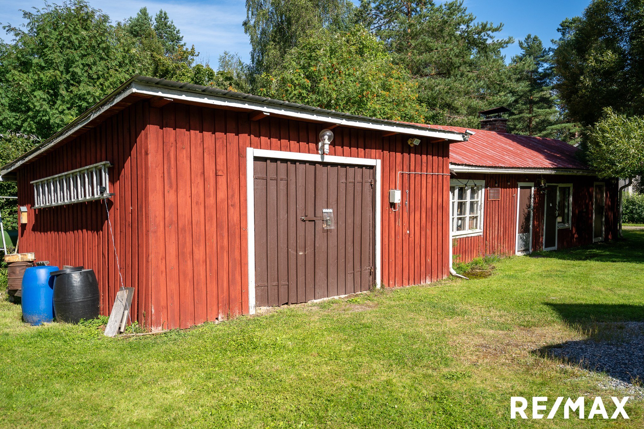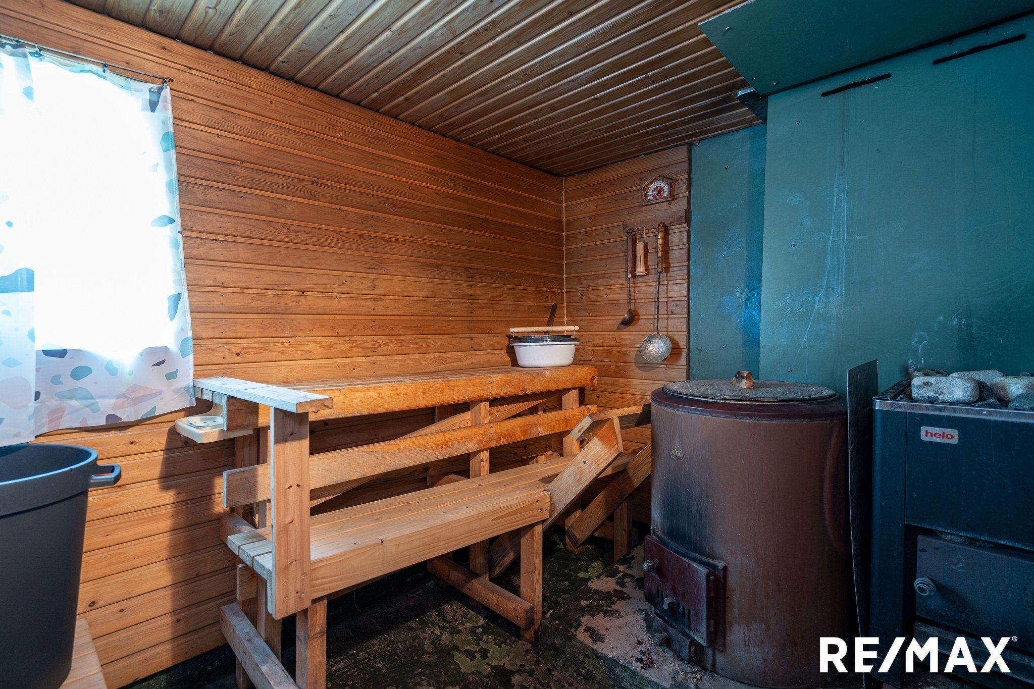 Kaksikerroksinen talo on valoisa ja avara, ja sen lämmitysjärjestelmä koostuu puusta, ilmalämpöpumpusta ja sähköstä. Erillisessä talousrakennuksessa perinteinen puusauna ja varastotilaa.
