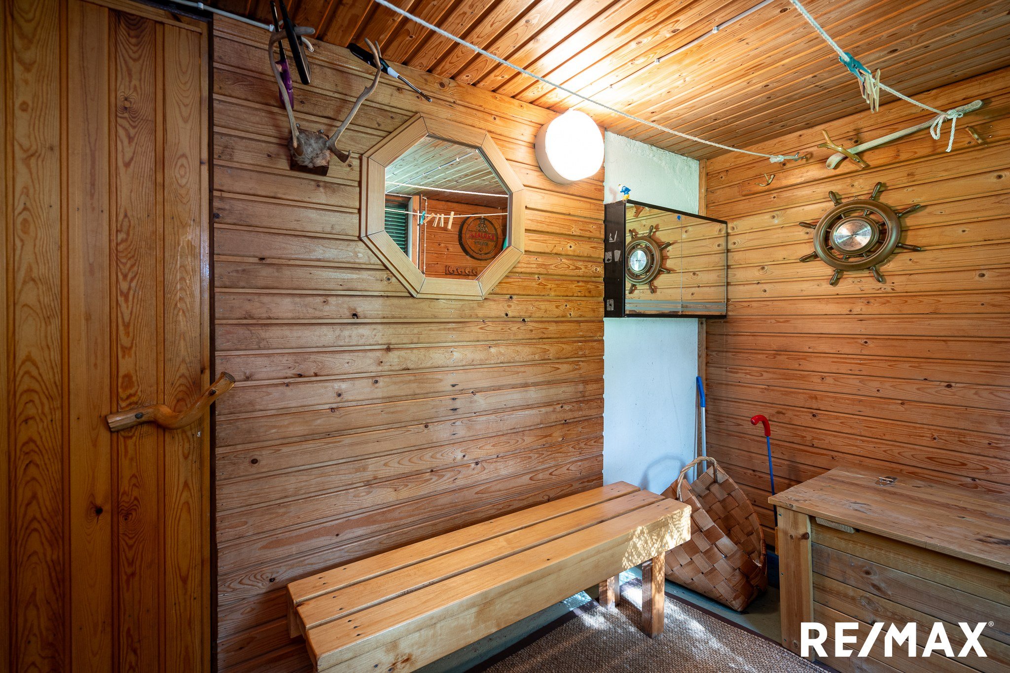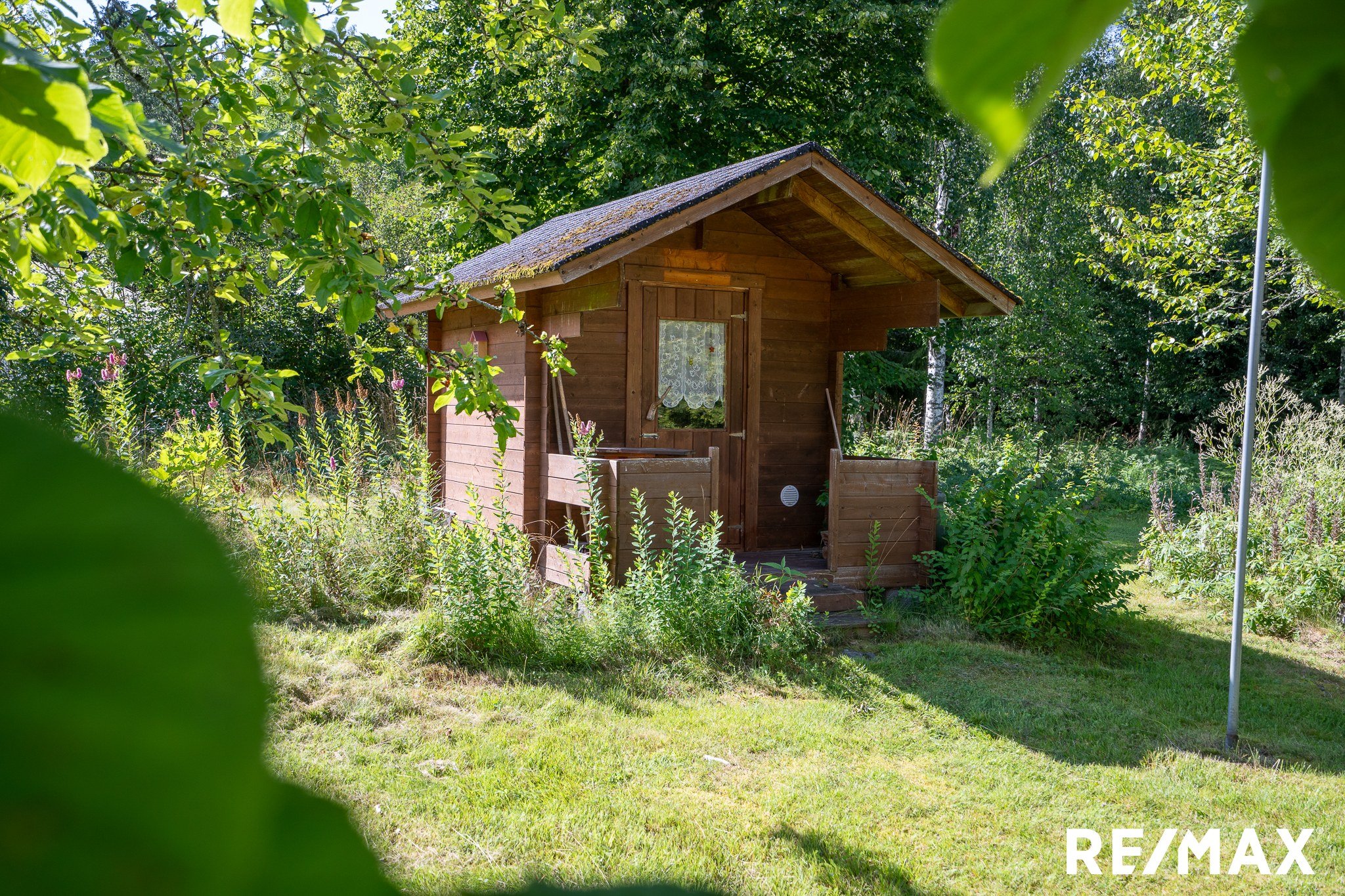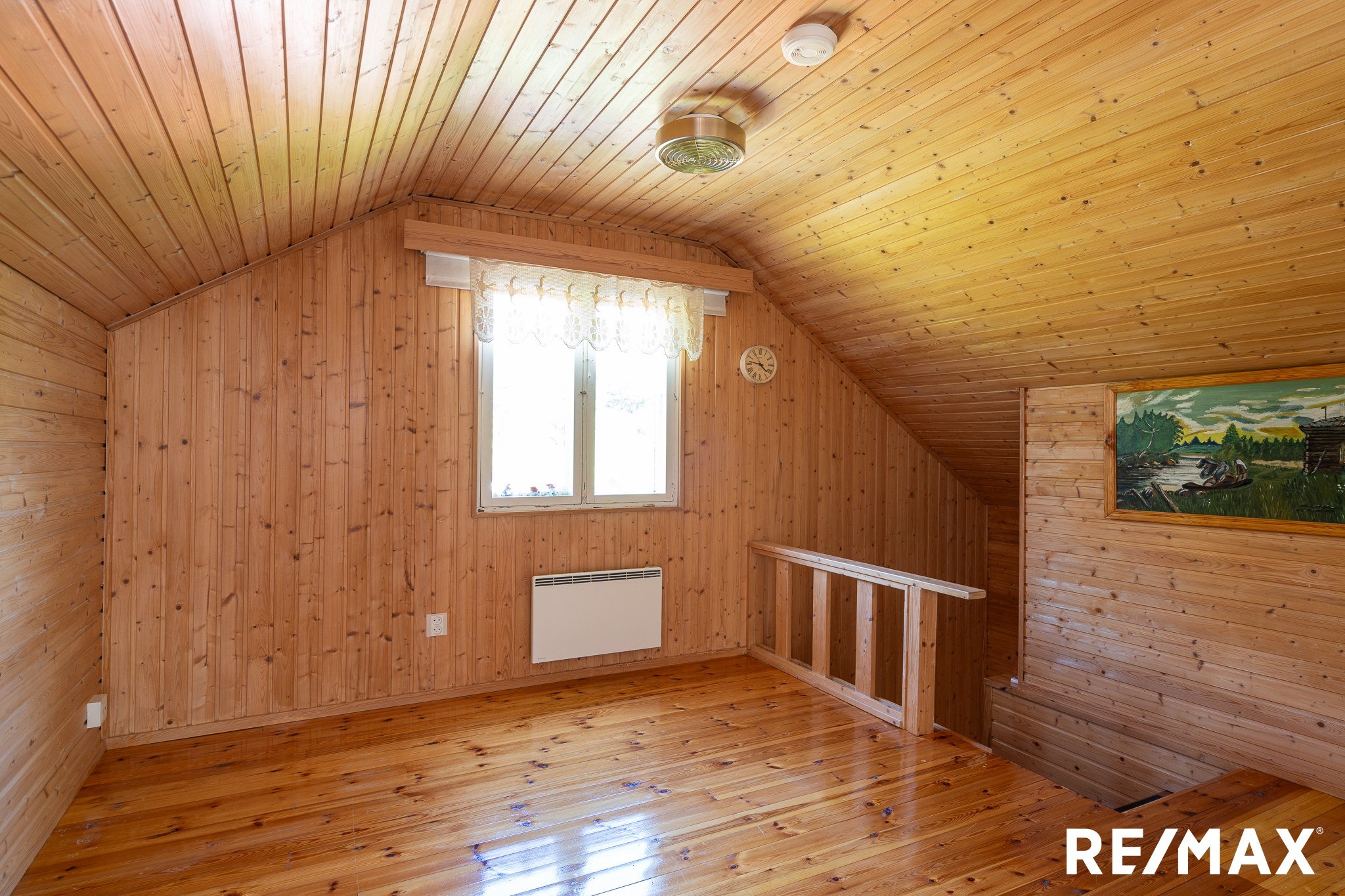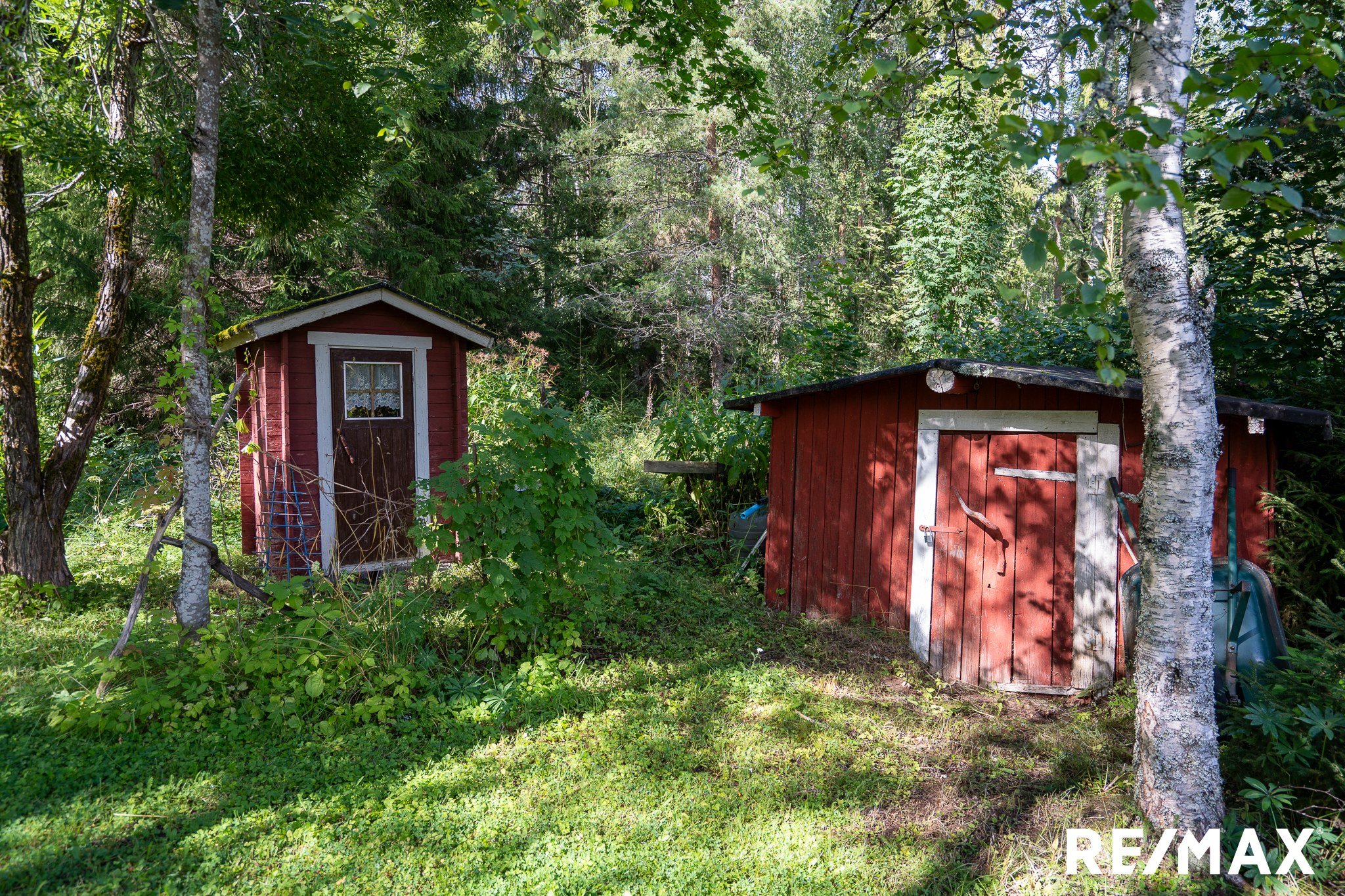 Kaksikerroksinen talo on valoisa ja avara, ja sen lämmitysjärjestelmä koostuu puusta, ilmalämpöpumpusta ja sähköstä. Erillisessä talousrakennuksessa perinteinen puusauna ja varastotilaa.