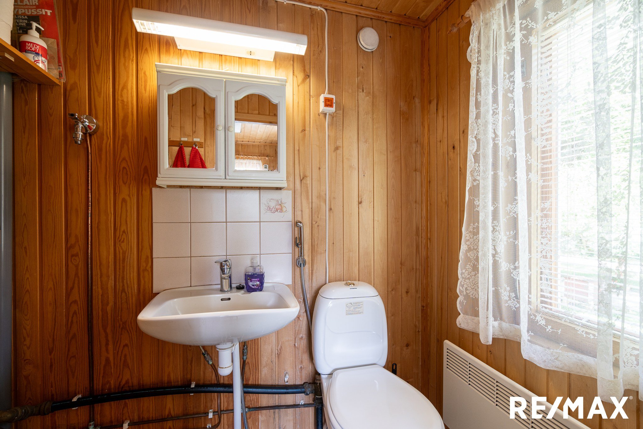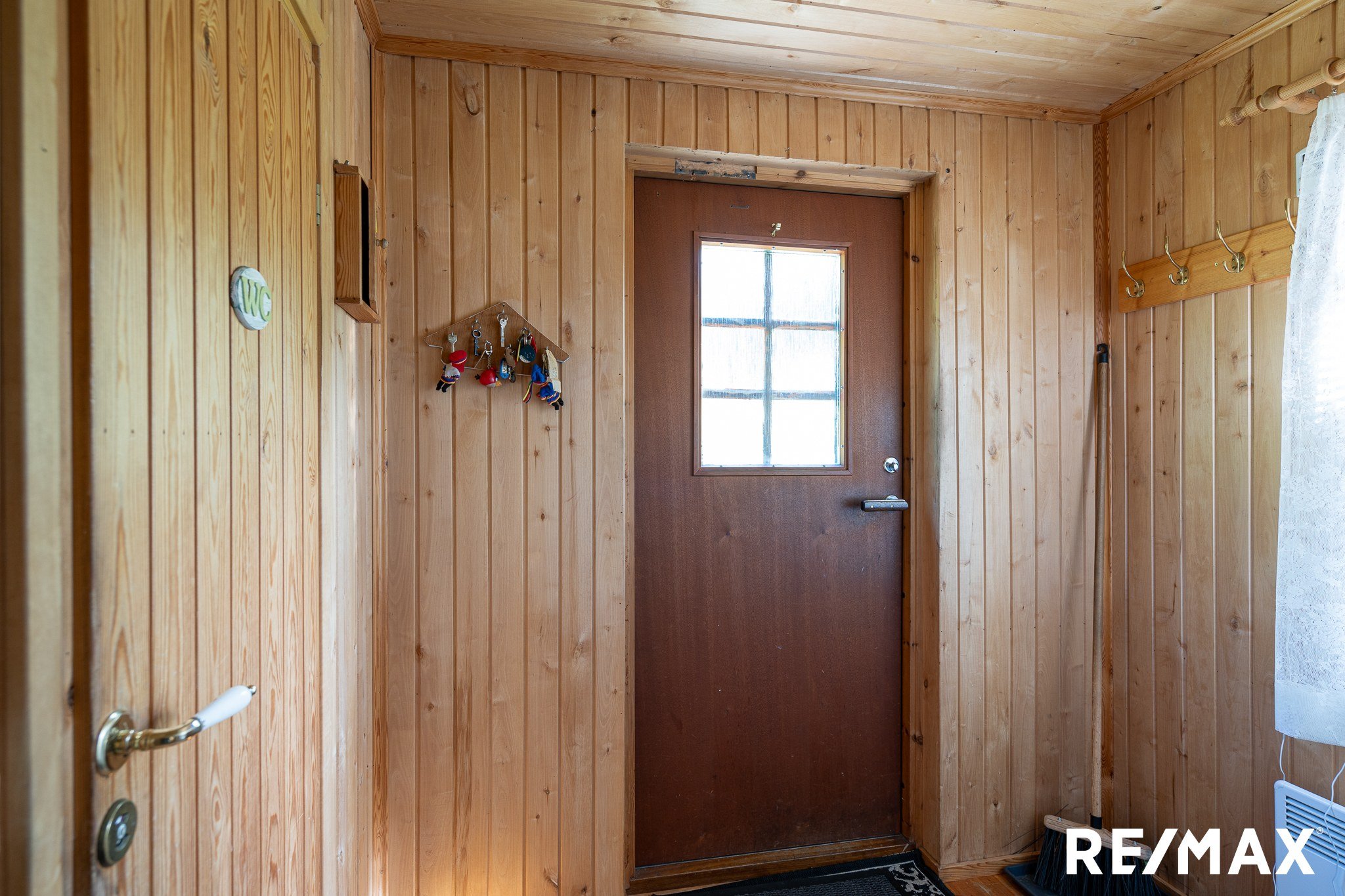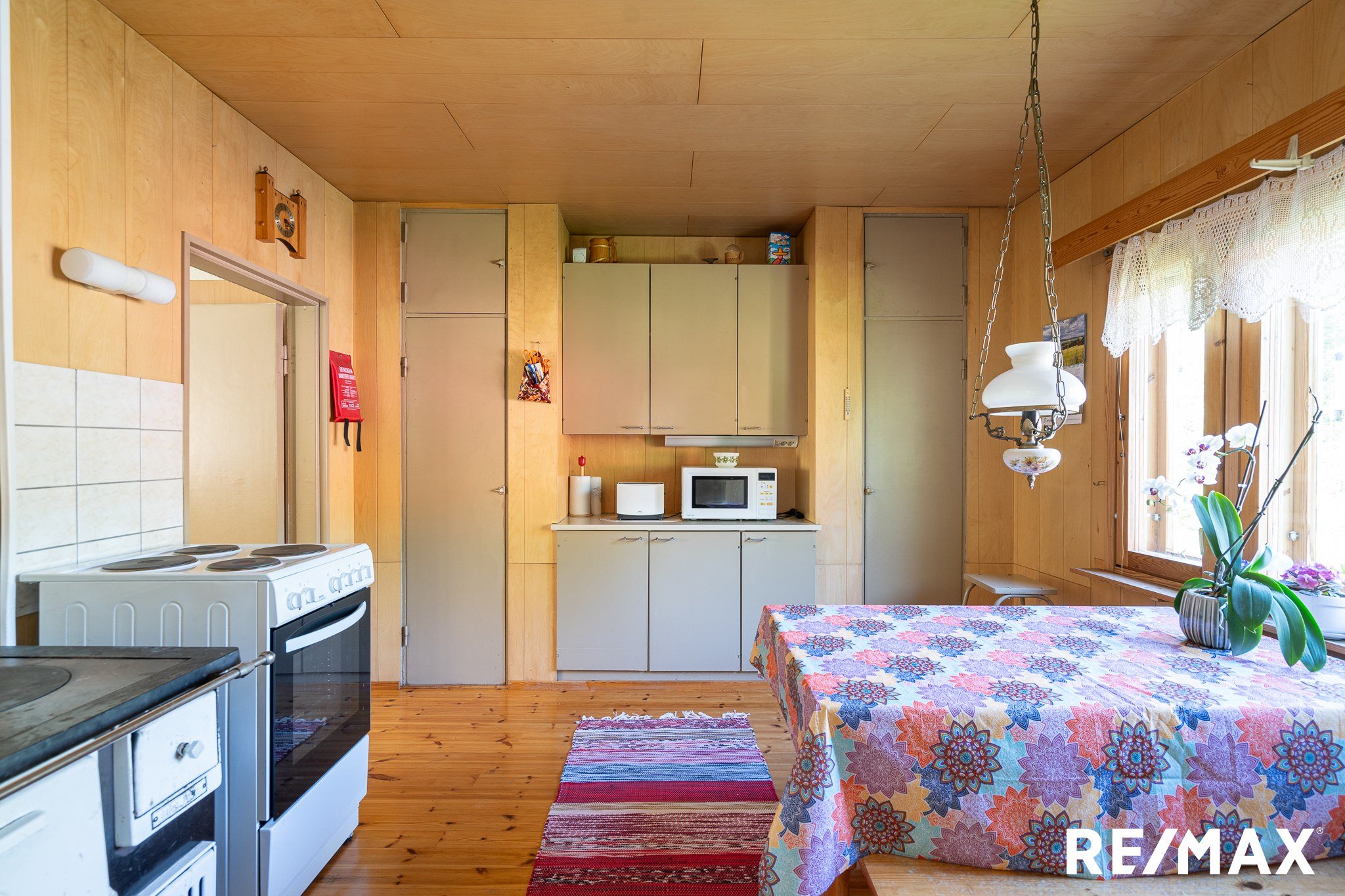 Sisätiloissa on kaksi makuuhuonetta, olohuone, keittiö sekä wc. Keittiö on varustettu jääkaappi-pakastimella, uunilla, liesitasolla ja mikroaaltouunilla. Talon pintamateriaalit ovat pääosin puuta ja tapettia, mikä luo lämpimän ja kodikkaan tunnelman.