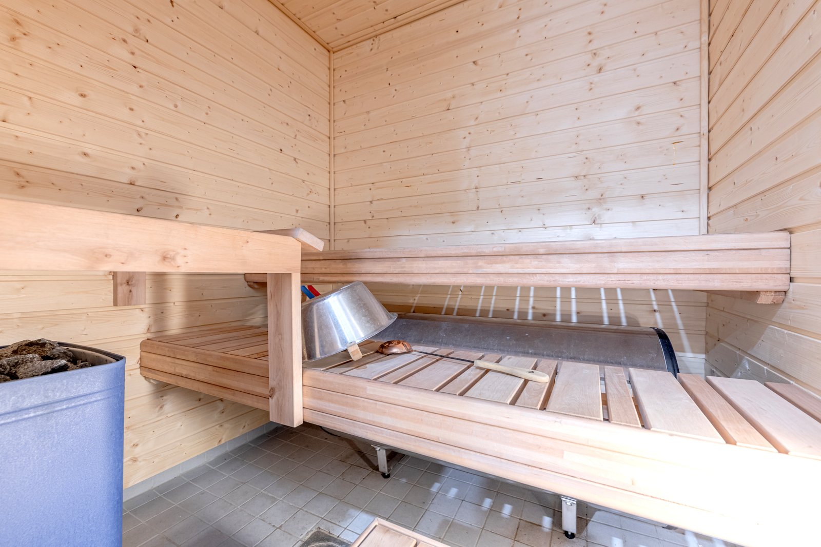 Asunnossa on kaksi makuuhuonetta, olohuone, keittiö, kylpyhuone ja sauna.