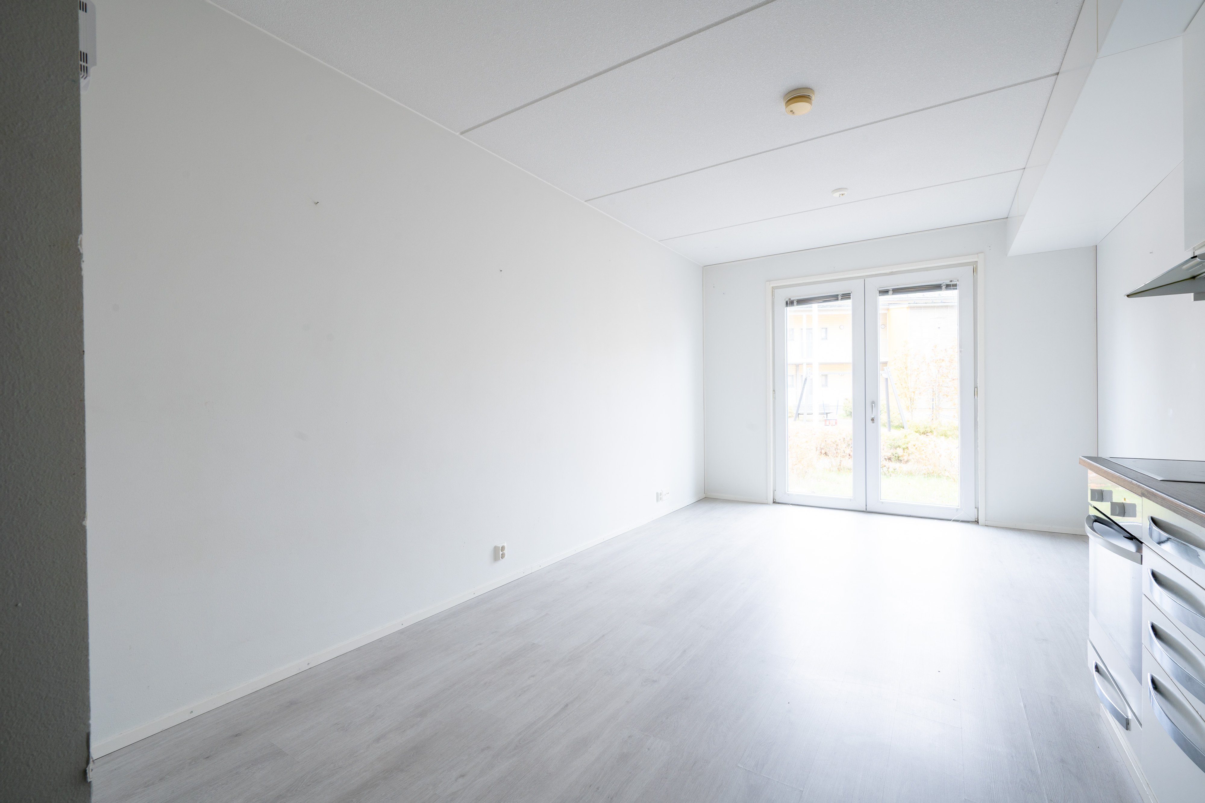 Yksiö, joka tuntuu neliöitään suuremmalta jo kynnyksellä. Luonnonvalo osuu avokeittiön pintoihin, eteisestä aukeaa selkeä ja helppo tila, ja ikkunallinen kylpyhuone tuo arkeen mukavan ylellisyyden sekä lattialämmitys pitää varpaat lämpiminä ympäri vuoden.