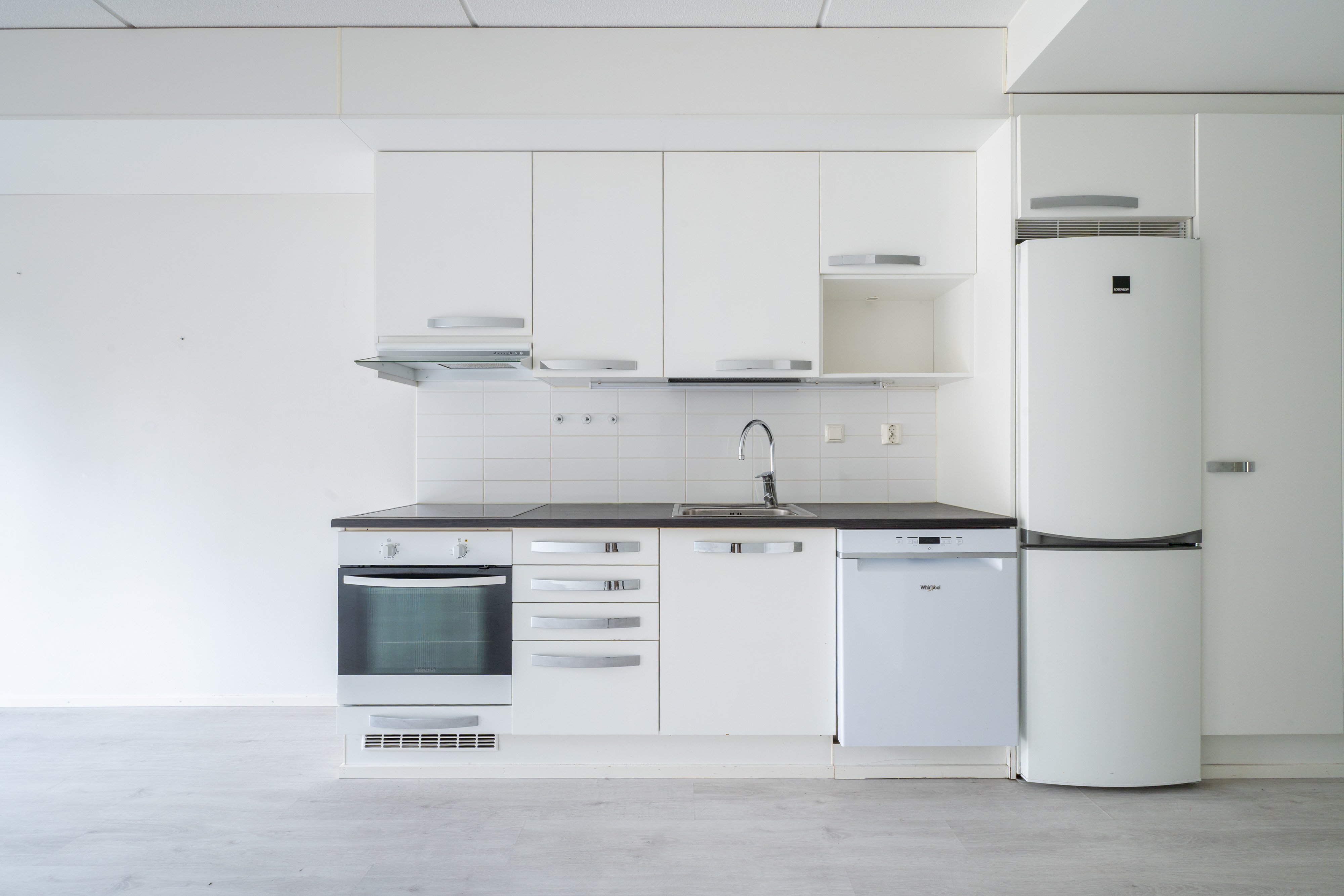 Avokeittiössä on kaikki olennainen astianpesukoneesta keraamiseen lieteen, ja olohuoneeseen jää tilaa sekä sohvalle että ruokapöydälle. Säilytysratkaisut ovat yllättävän hyvät: kaapistoja on järkevästi ja taloyhtiön huoneistokohtaiset varastot täydentää kokonaisuuden. Alakerran sijainti tuo käytännöllisen pihan omaan käyttöön.