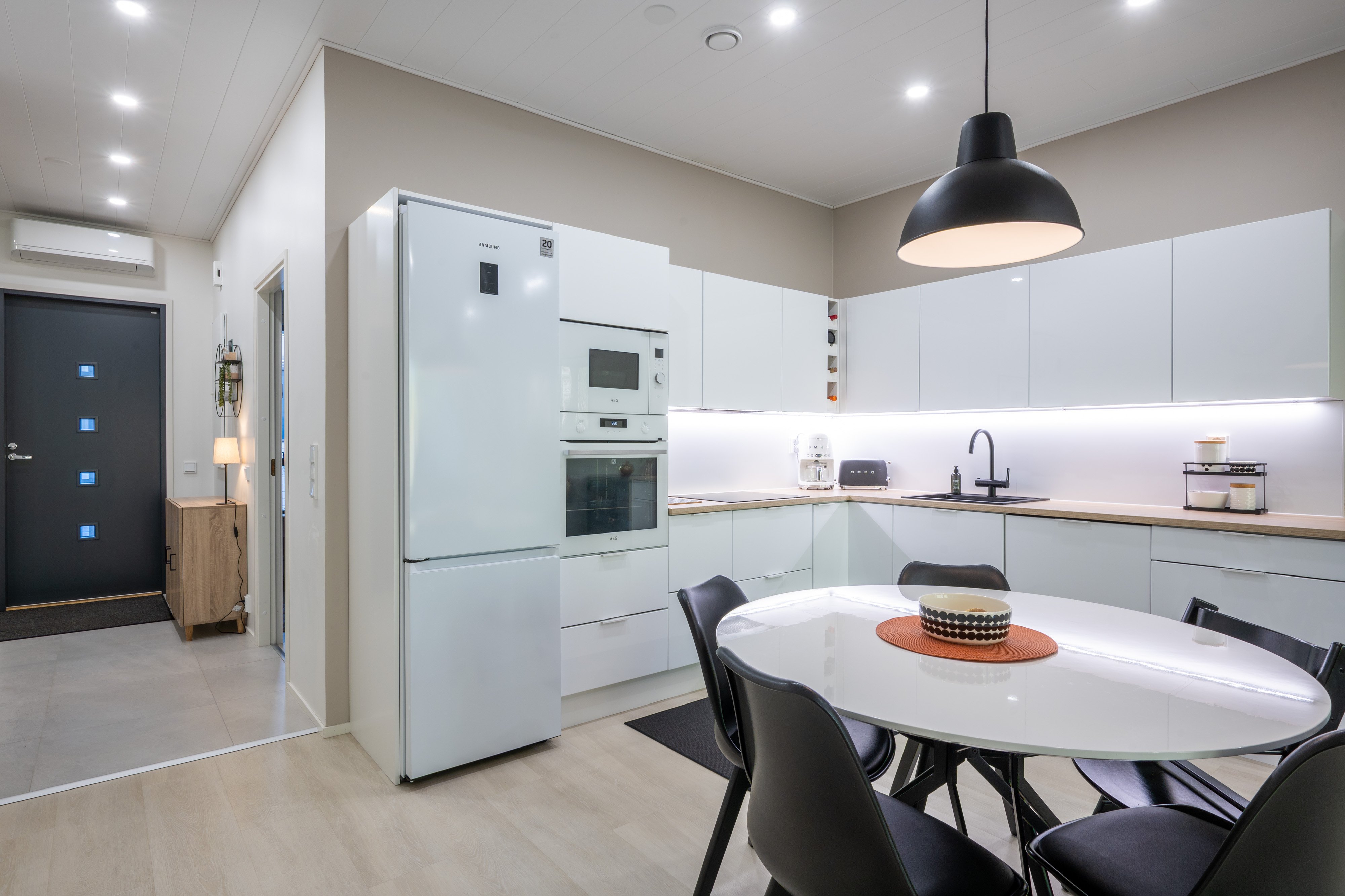 Etsitkö modernia ja viihtyisää kotia rauhalliselta alueelta? Tämä vuonna 2020 valmistunut rivitaloasunto Järvenpään Kinnarissa tarjoaa erinomaiset puitteet mukavaan asumiseen. Asunnon avokeittiö ja olohuone muodostavat avaran ja valoisan kokonaisuuden, jossa on helppo viihtyä.