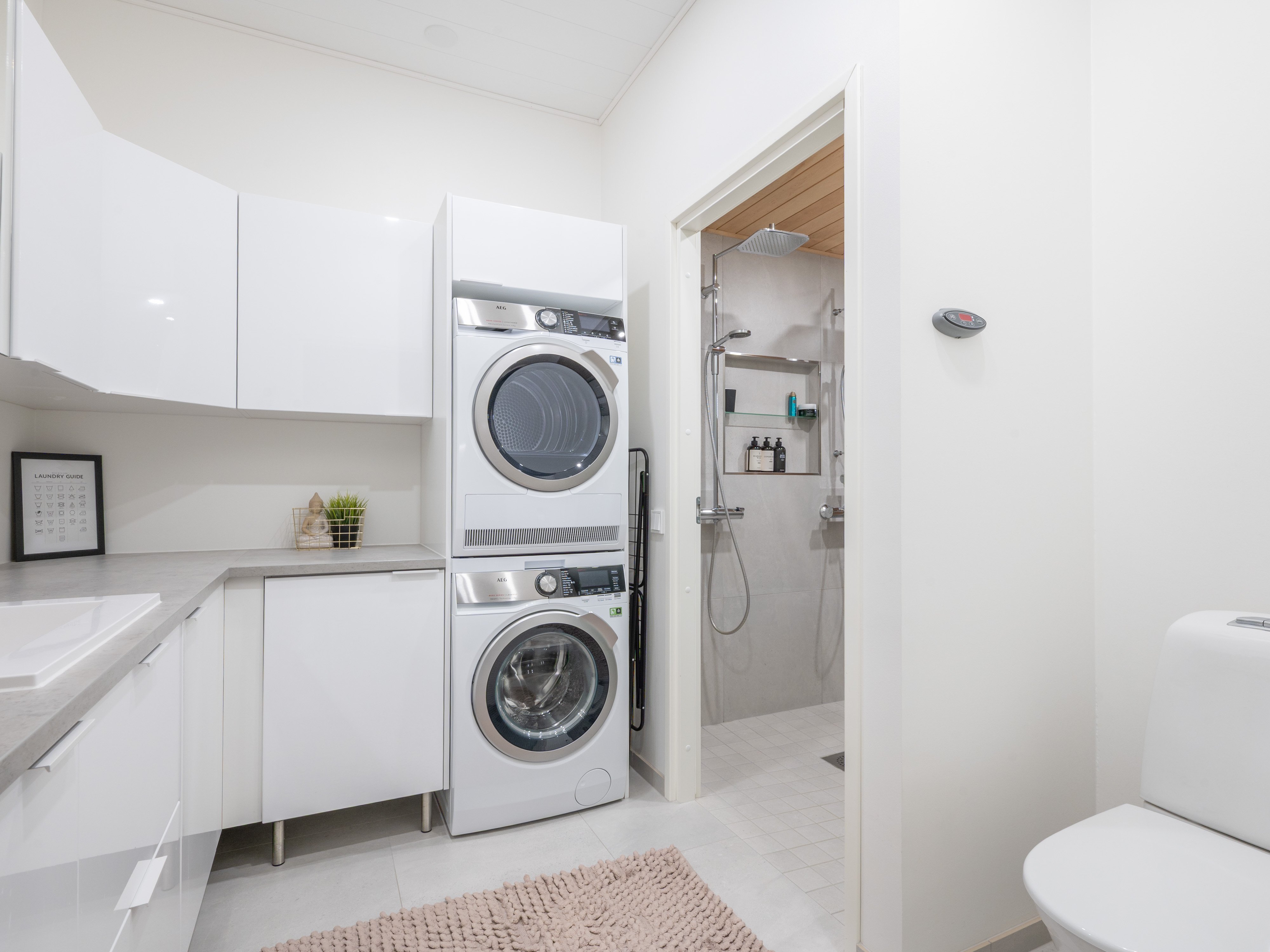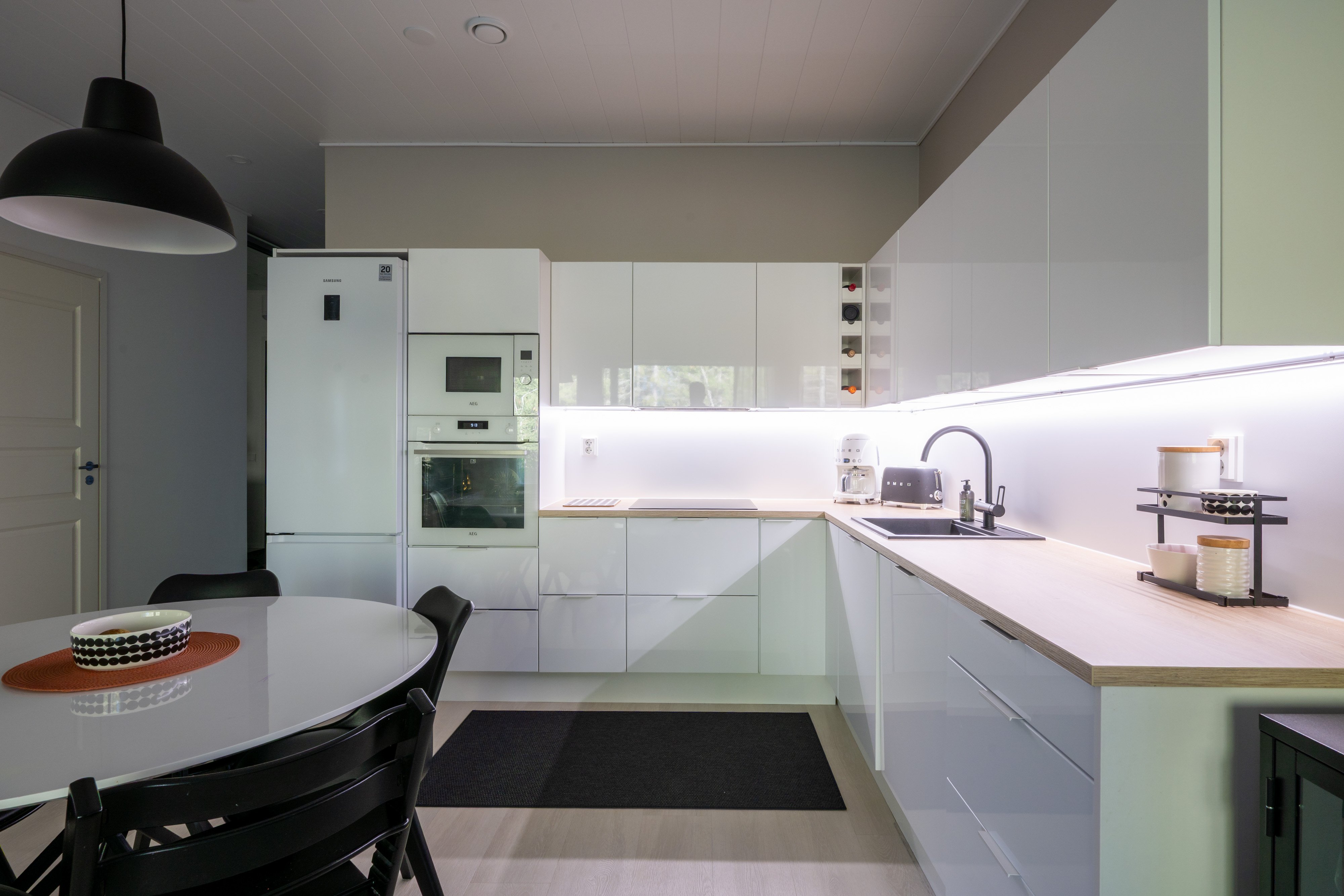 Asunnossa on laadukkaat materiaalit ja varusteet, kuten lattialämmitys ja koneellinen ilmanvaihto, jotka lisäävät asumismukavuutta. Oma sauna tarjoaa mahdollisuuden rentoutua kiireisen päivän jälkeen. Ulkona odottaa viihtyisä terassi, jossa voi nauttia kauniista kesäilloista.