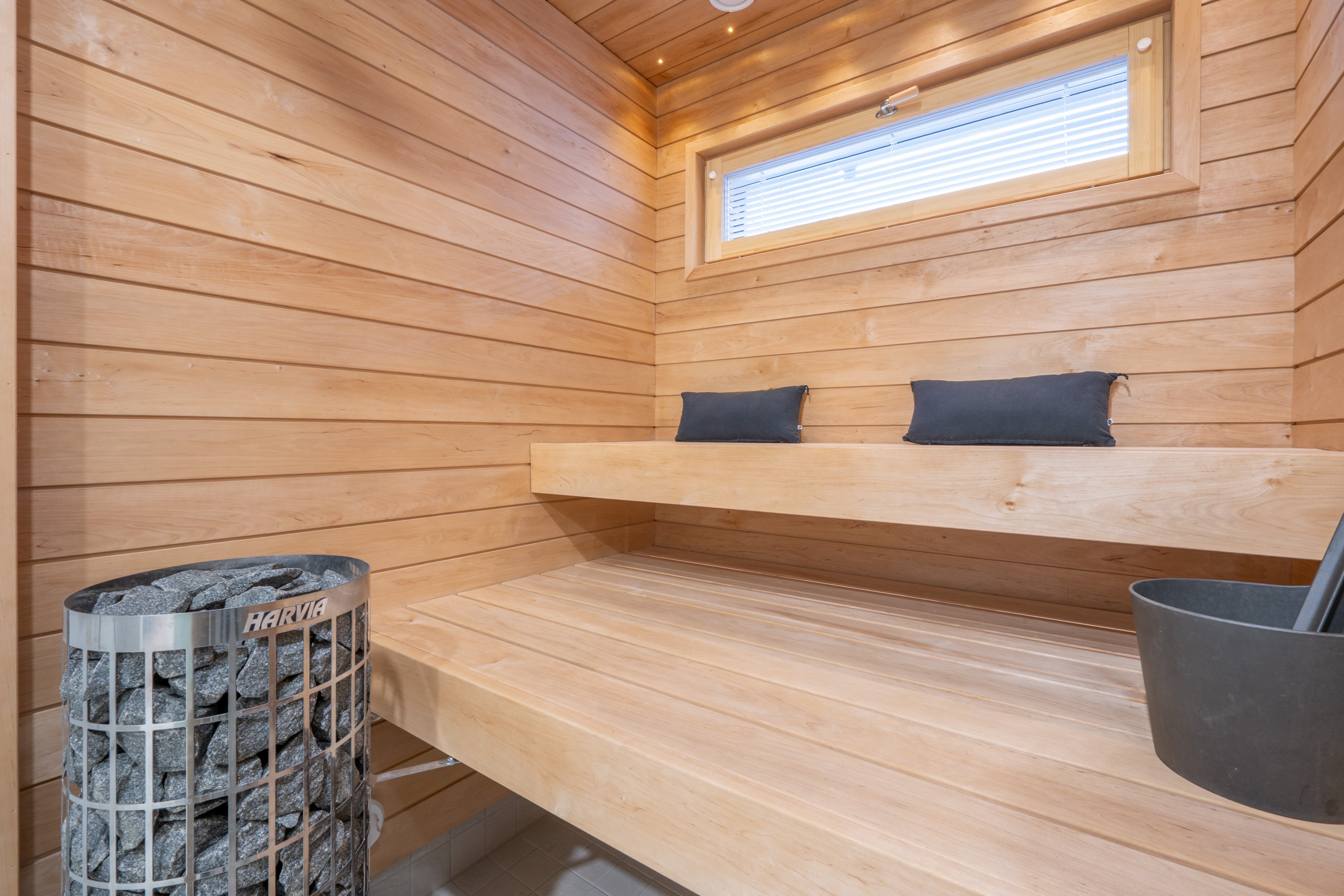 Kaksi makuuhuonetta tarjoavat rauhalliset tilat lepoon ja rentoutumiseen.