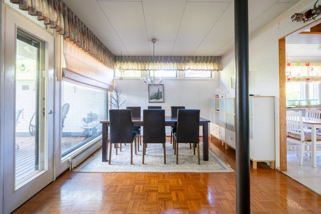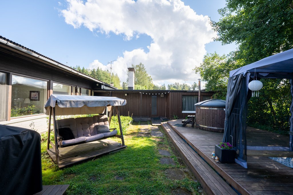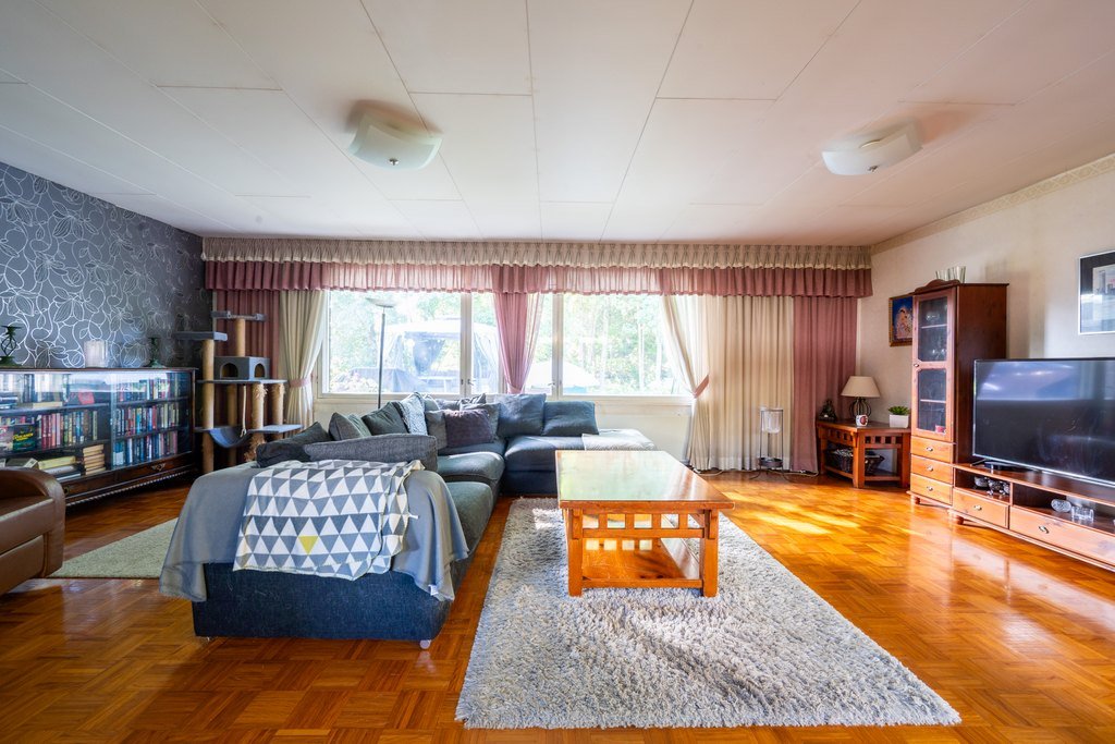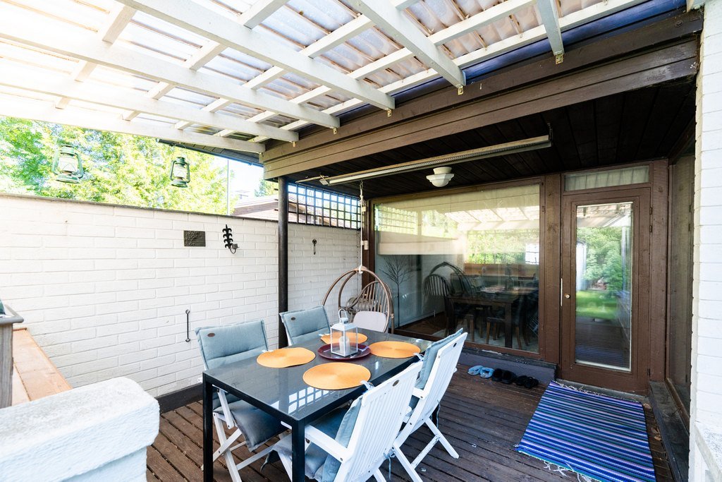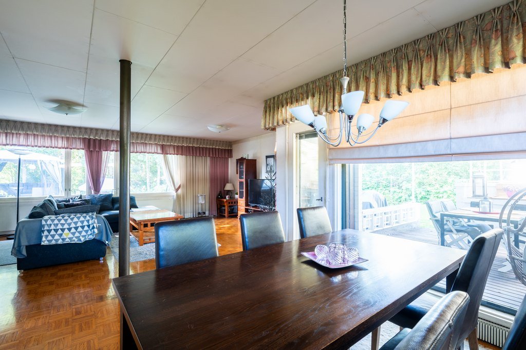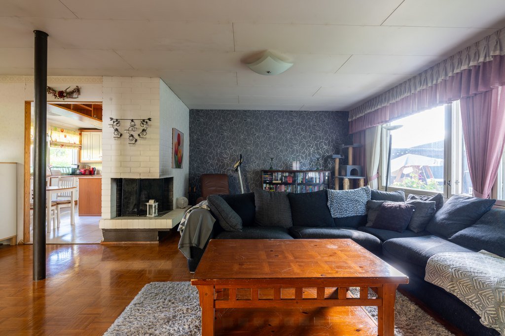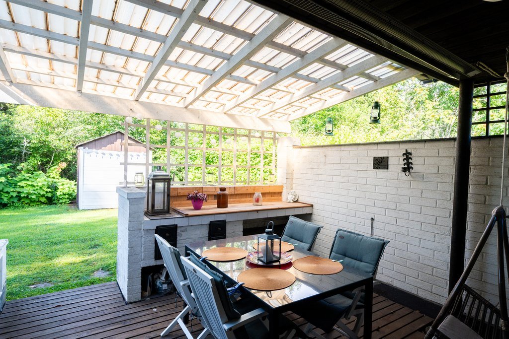 Tilavasta olohuoneesta on käynti katetulle/ suojaisalle terassille.