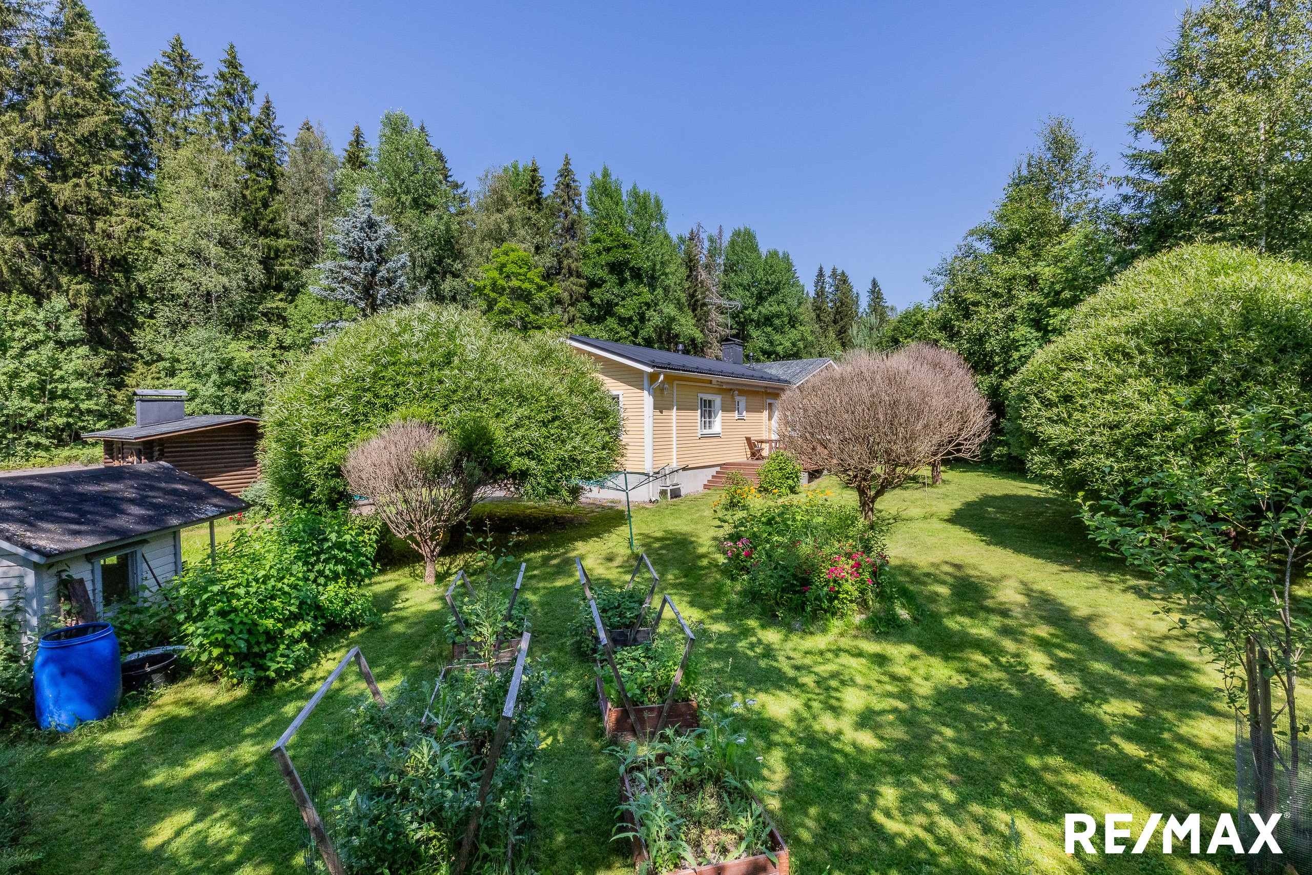 Reilunkokoinen, noin 2300 m2:n tontti tarjoaa runsaasti tilaa puutarhalle, lasten leikeille ja monenlaisille harrastuksille. Talo on hyvässä peruskunnossa ja valmis asumiseen, mutta se tarjoaa myös mahdollisuuden toteuttaa omia sisustus- ja remontti-ideoita.