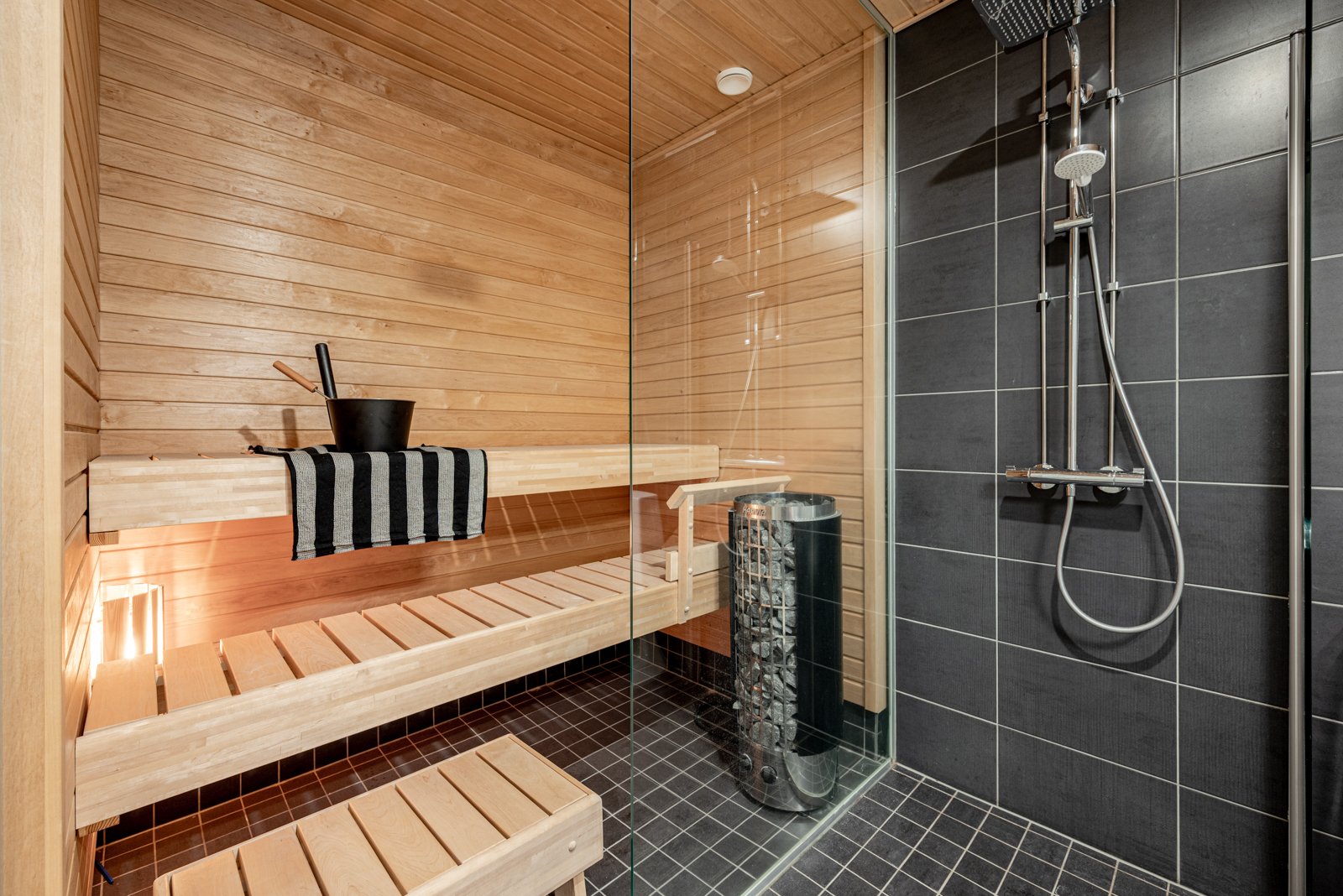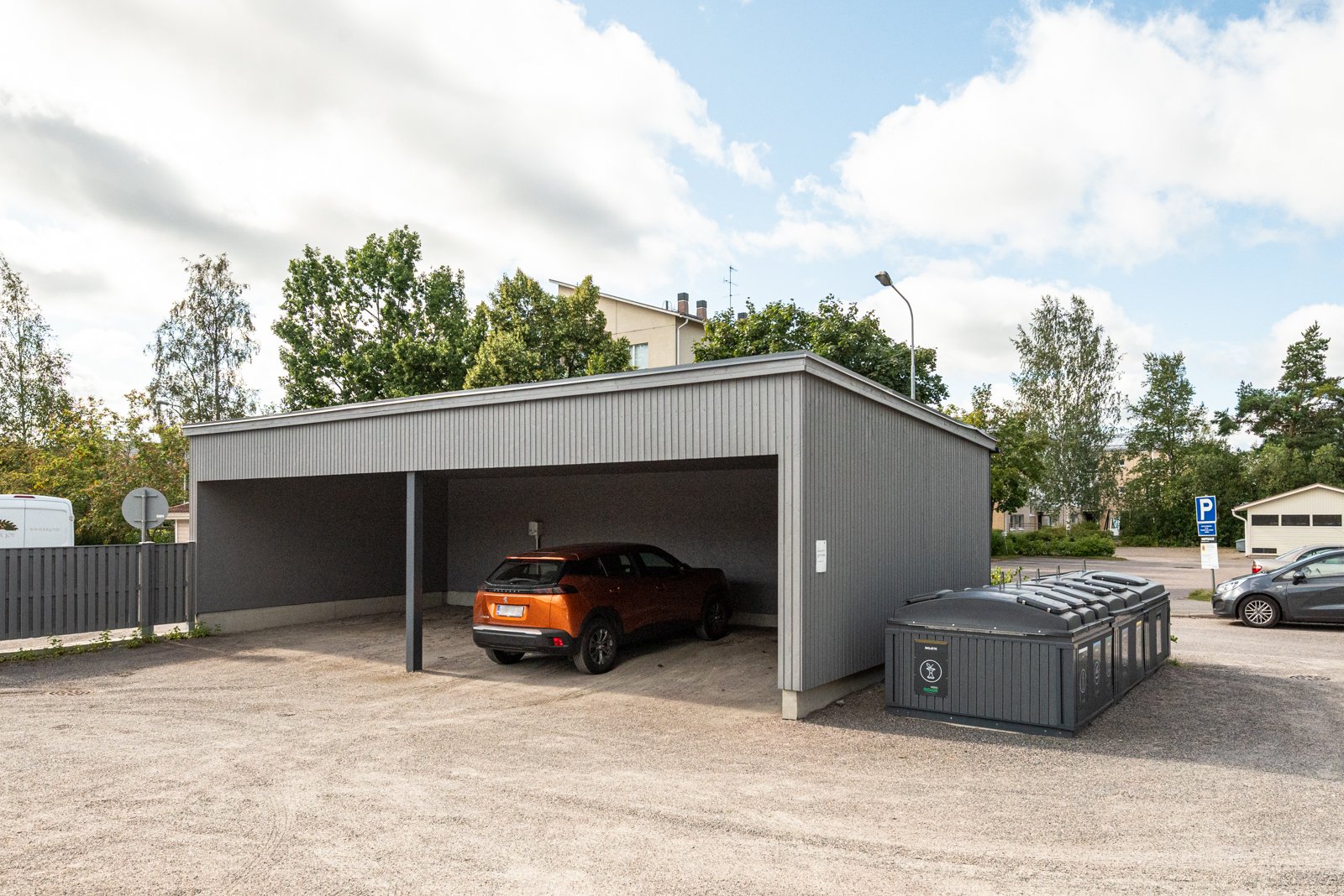 Makuuhuoneet on suunniteltu arjen tarpeet huomioiden – molemmista löytyy kaapistot, ja säilytystilaa täydentää oma lämmin talon ylimmässä kerroksessa sijaitseva vinttikomero, jolle pääset kätevästi hissillä. Kodin kruunaa oma pistokkeellinen autokatospaikka – arjen luksusta, kun auto on suojassa säältä.
