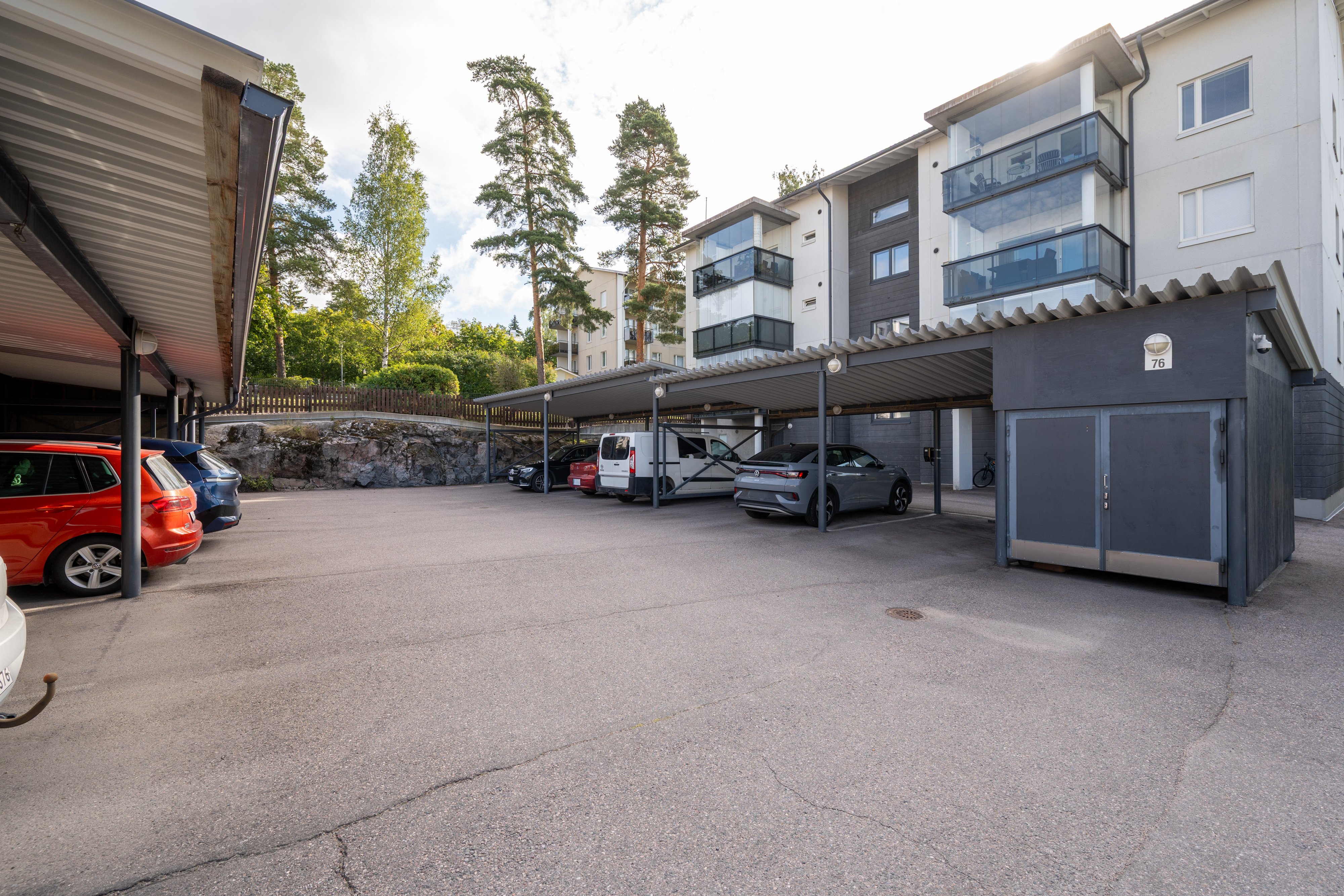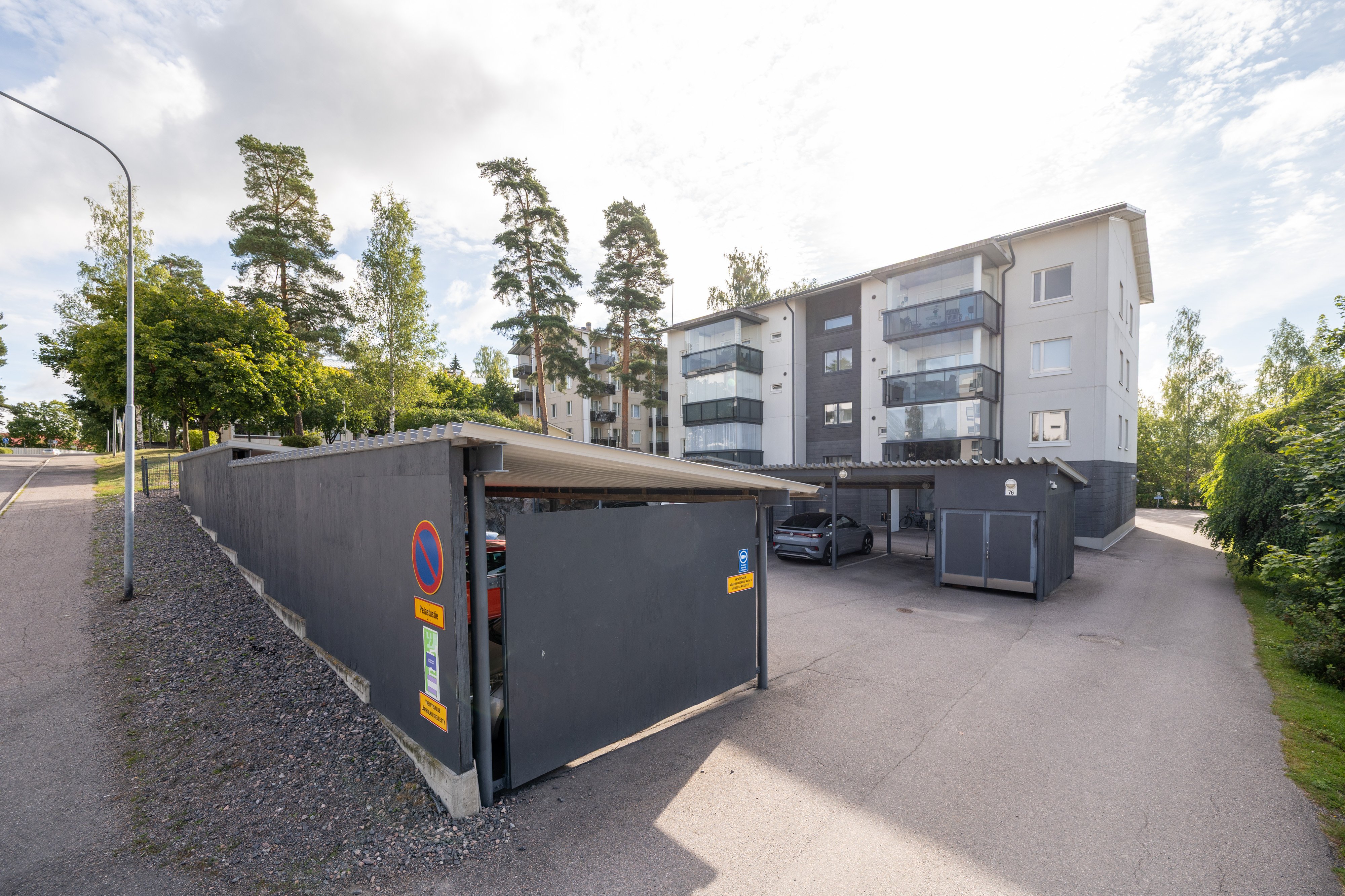 Liikenneyhteydet ovat erinomaiset: lähistöllä on sekä juna-asema että bussipysäkki, ja autolla pääsee sujuvasti liikkumaan. Autokatospaikka on saatavilla erikseen, mikä lisää asumismukavuutta.