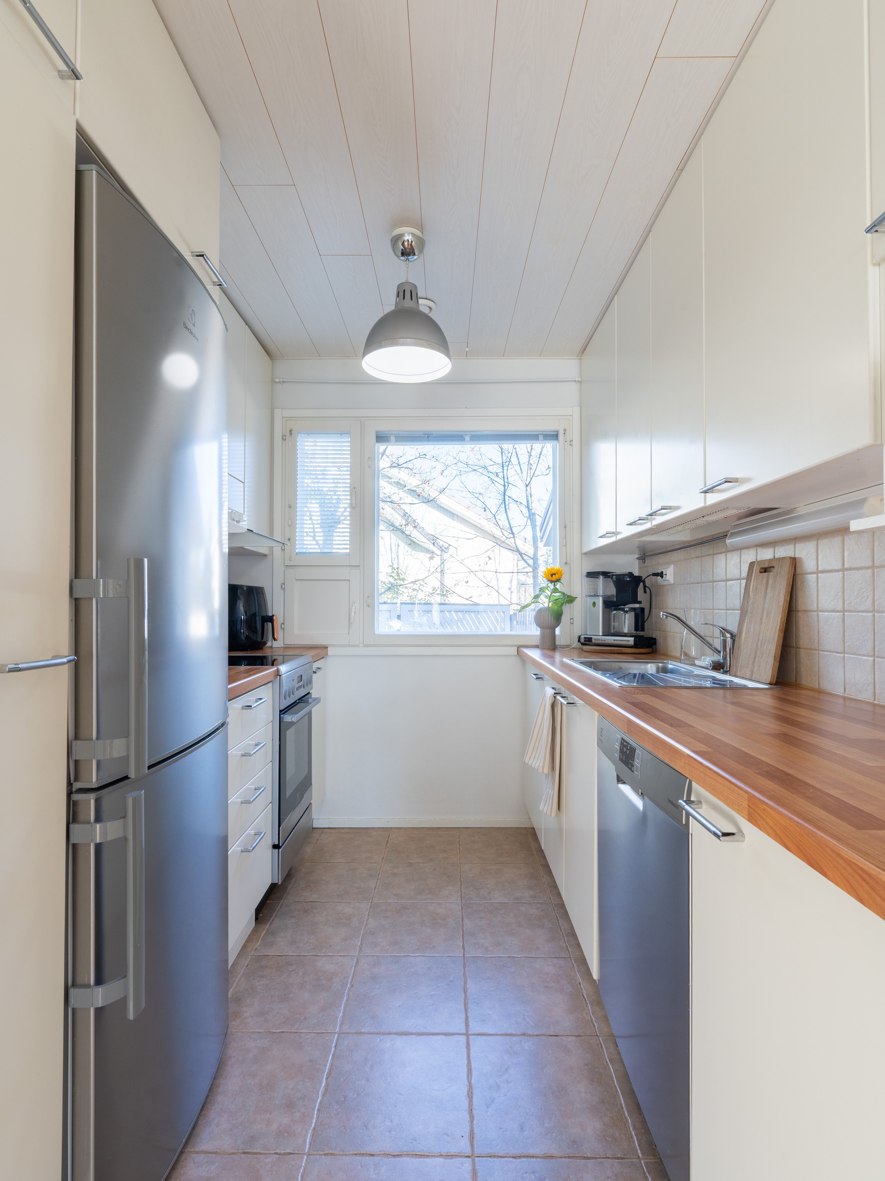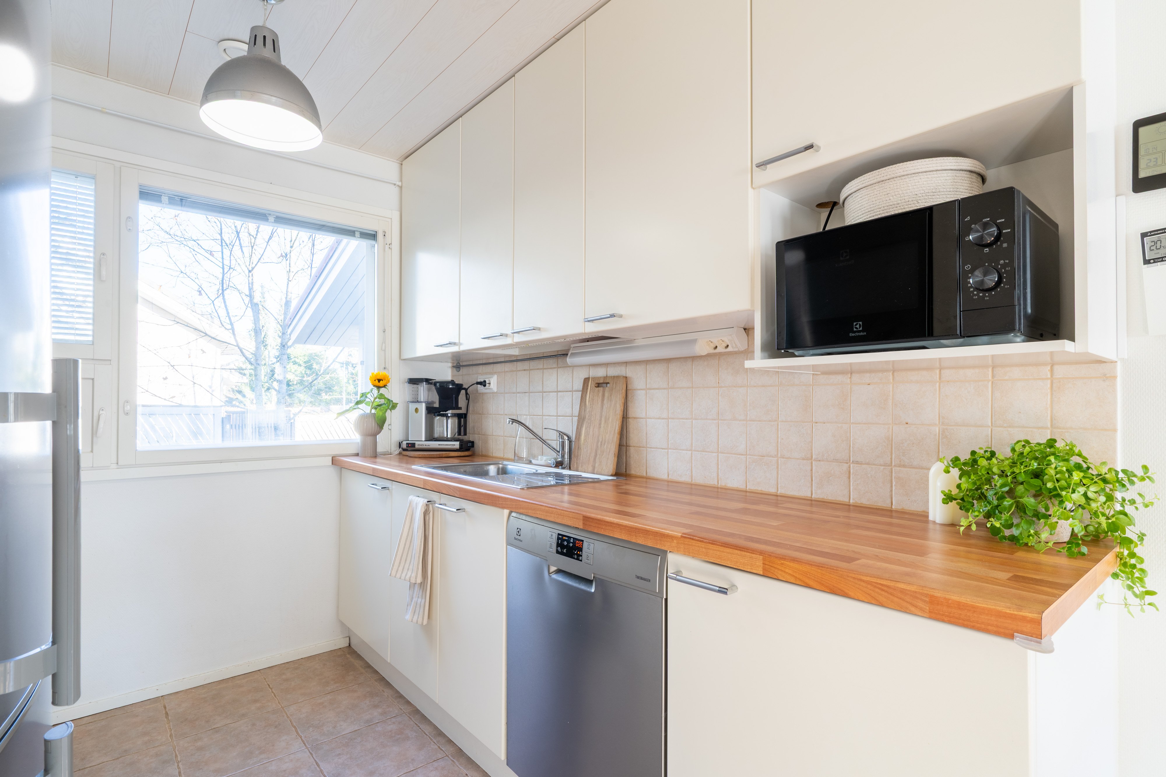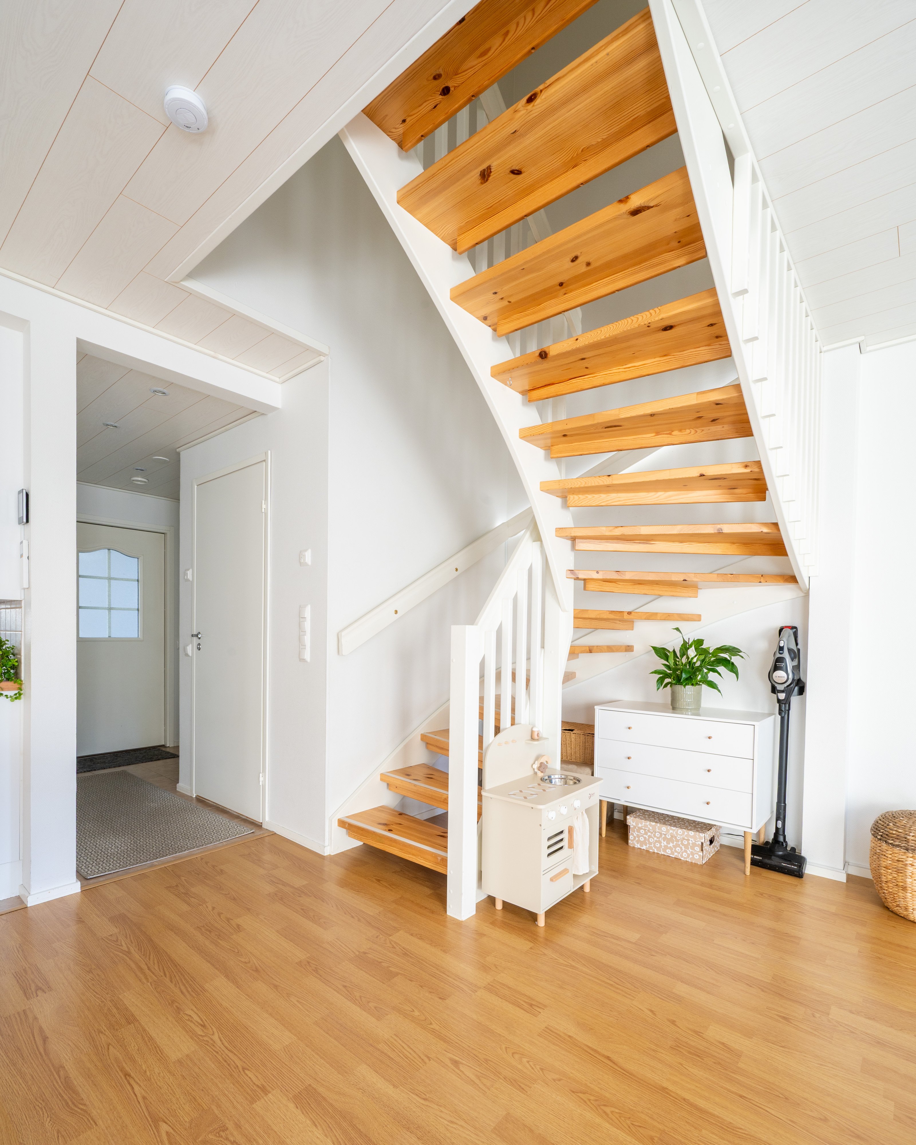 Asunnossa on kaksi kerrosta, ja alakerrasta löytyy valoisa olohuone, joka jatkuu sujuvasti keittiöön. Keittiössä on kaikki tarvittavat laitteet, kuten induktioliesi ja astianpesukone, mikä tekee arjesta sujuvaa. Kaksi makuuhuonetta tarjoavat tilaa perheelle tai työtilaksi. Kylpyhuoneessa on lattialämmitys ja sauna, jossa rentoutua päivän päätteeksi.
