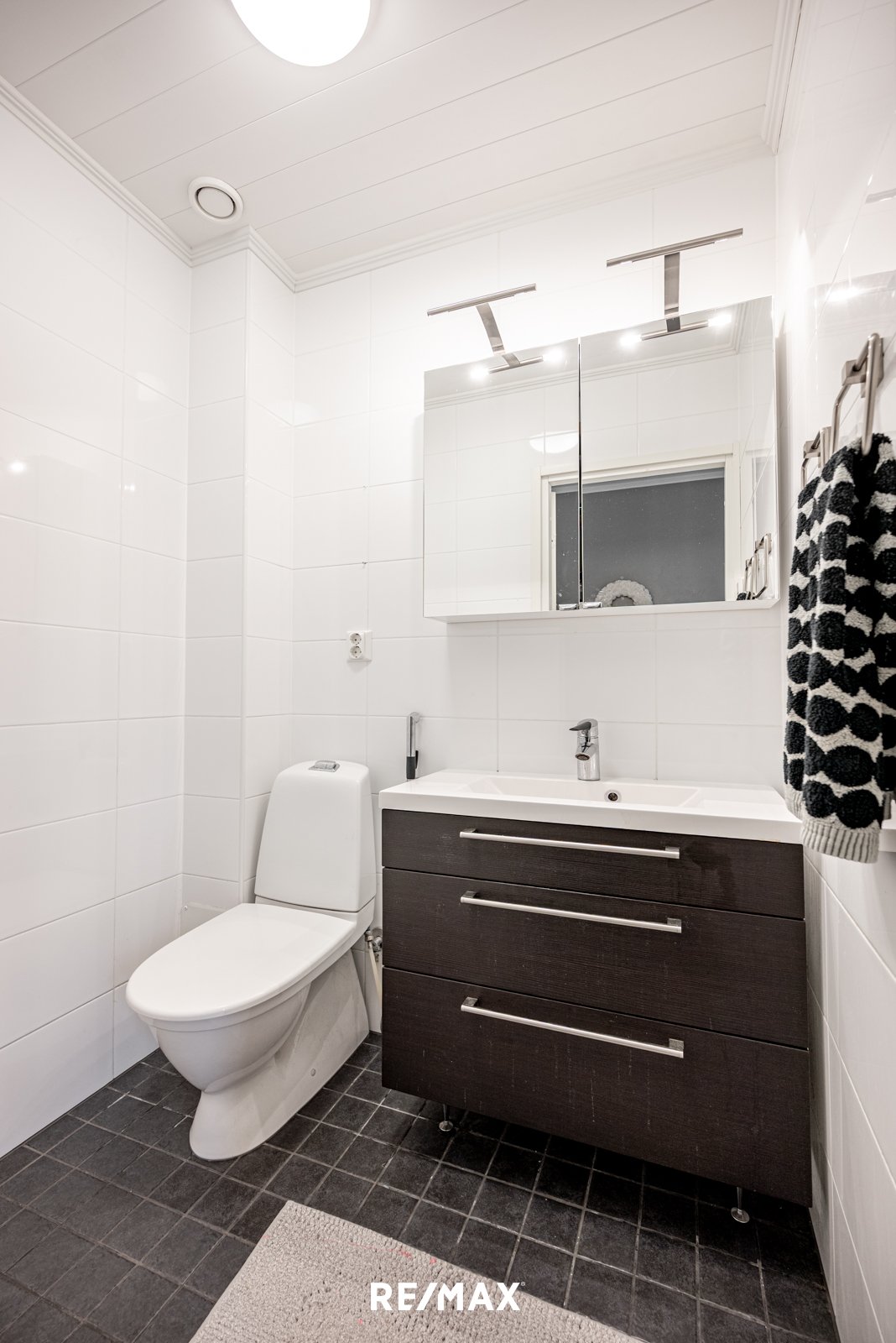 Saunallinen kylpyhuone kutsuu rentoutumaan päivän päätteeksi ja erillinen wc sekä käytännöllinen kodinhoitohuone tekevät arjesta sujuvaa. Asunnosta löytyy kaikki, mitä toimivalta ja mukavalta kodilta voi toivoa.