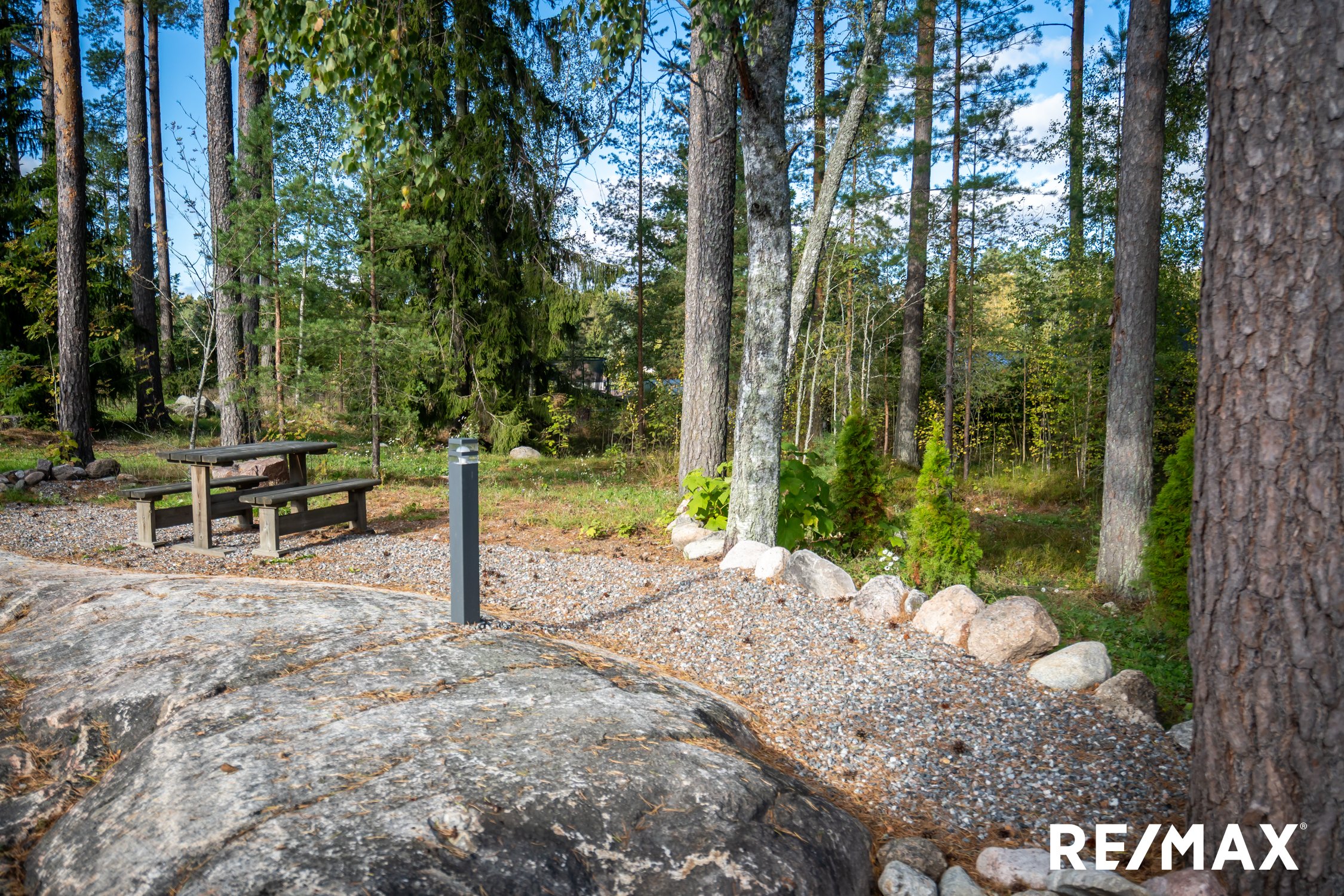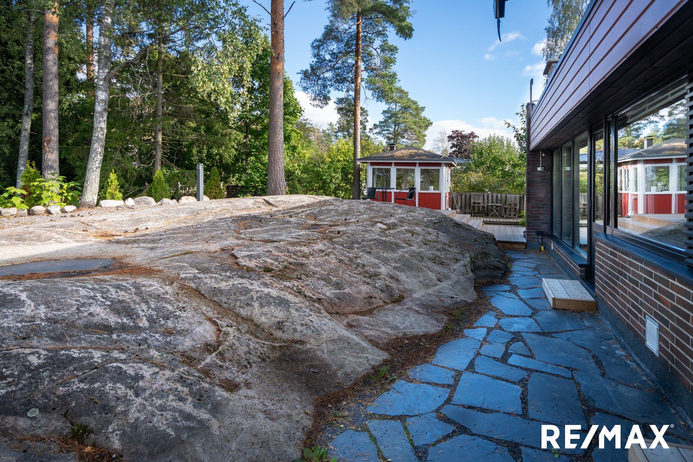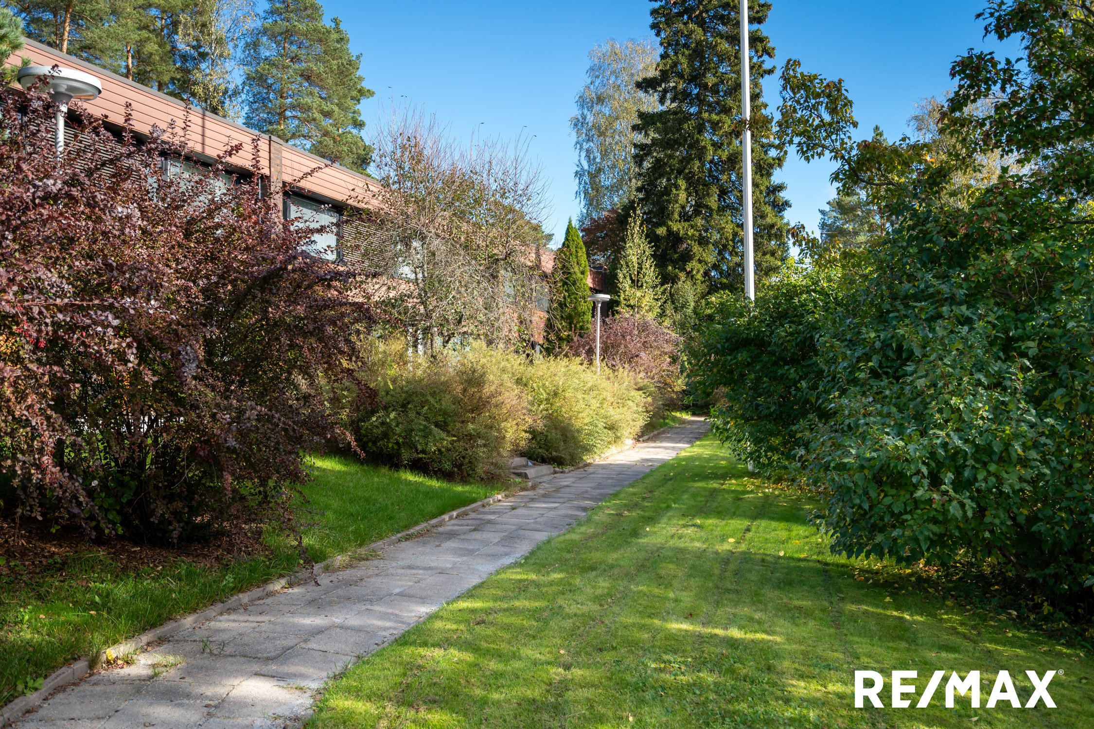 Asunnon avarasta olohuoneesta on suora yhteys luonnon kauniille takapihalle. Takapiha rajoittuu metsään, tarjoten luonnonrauhaa ja yksityisyyttä ilman naapurien näköyhteyttä. Oma rauha ja kauniit maisemat sekä erittäin hyvin hoidetut yhtiön etupiha lisäävät asumiseen viihtyvyyttä. Takapihalla on terassi sekä oma ns. huvimaja joka kuuluu tähän asuntoon.