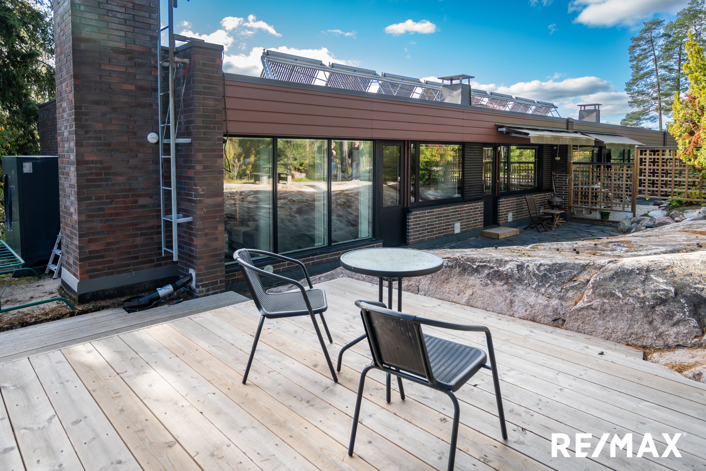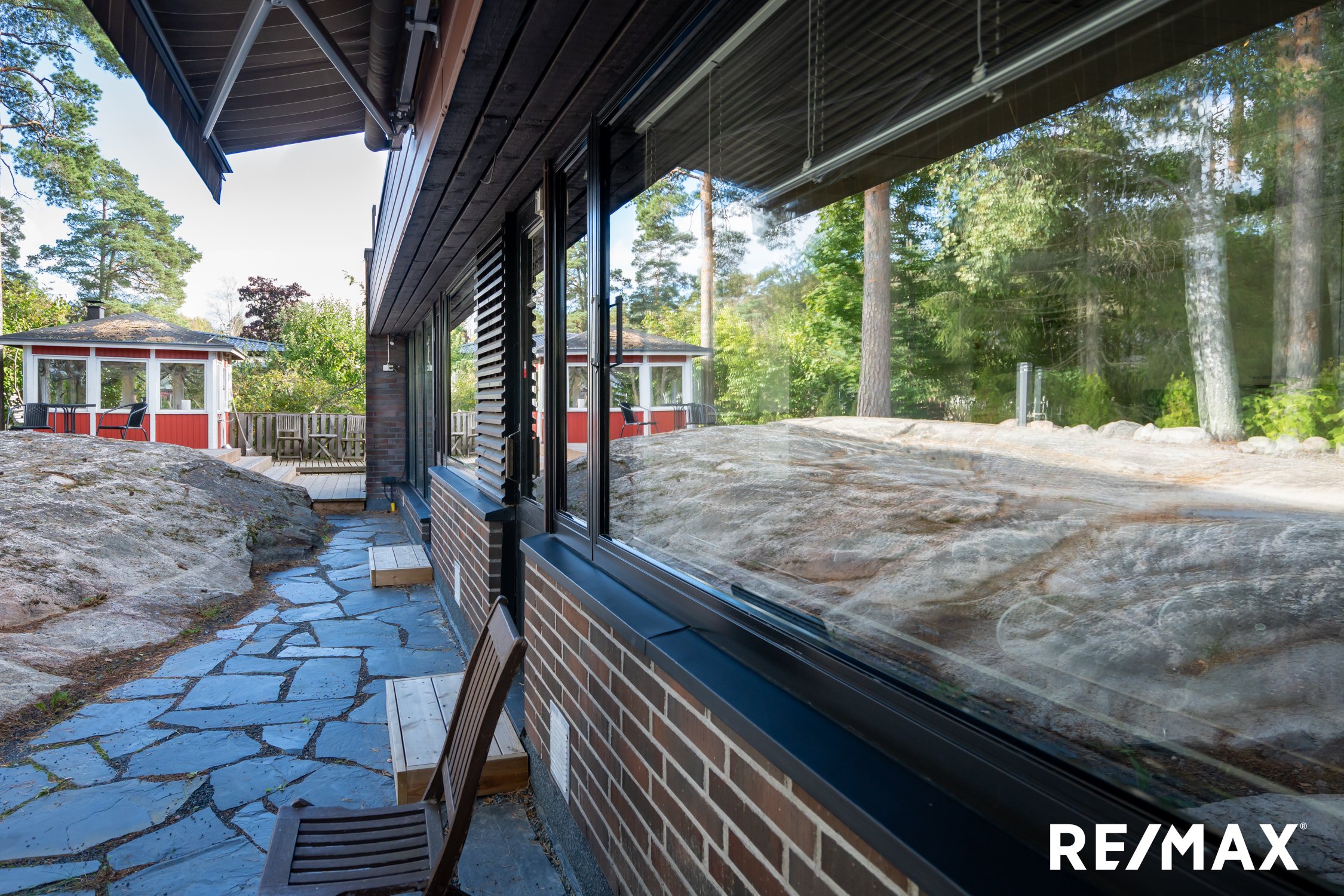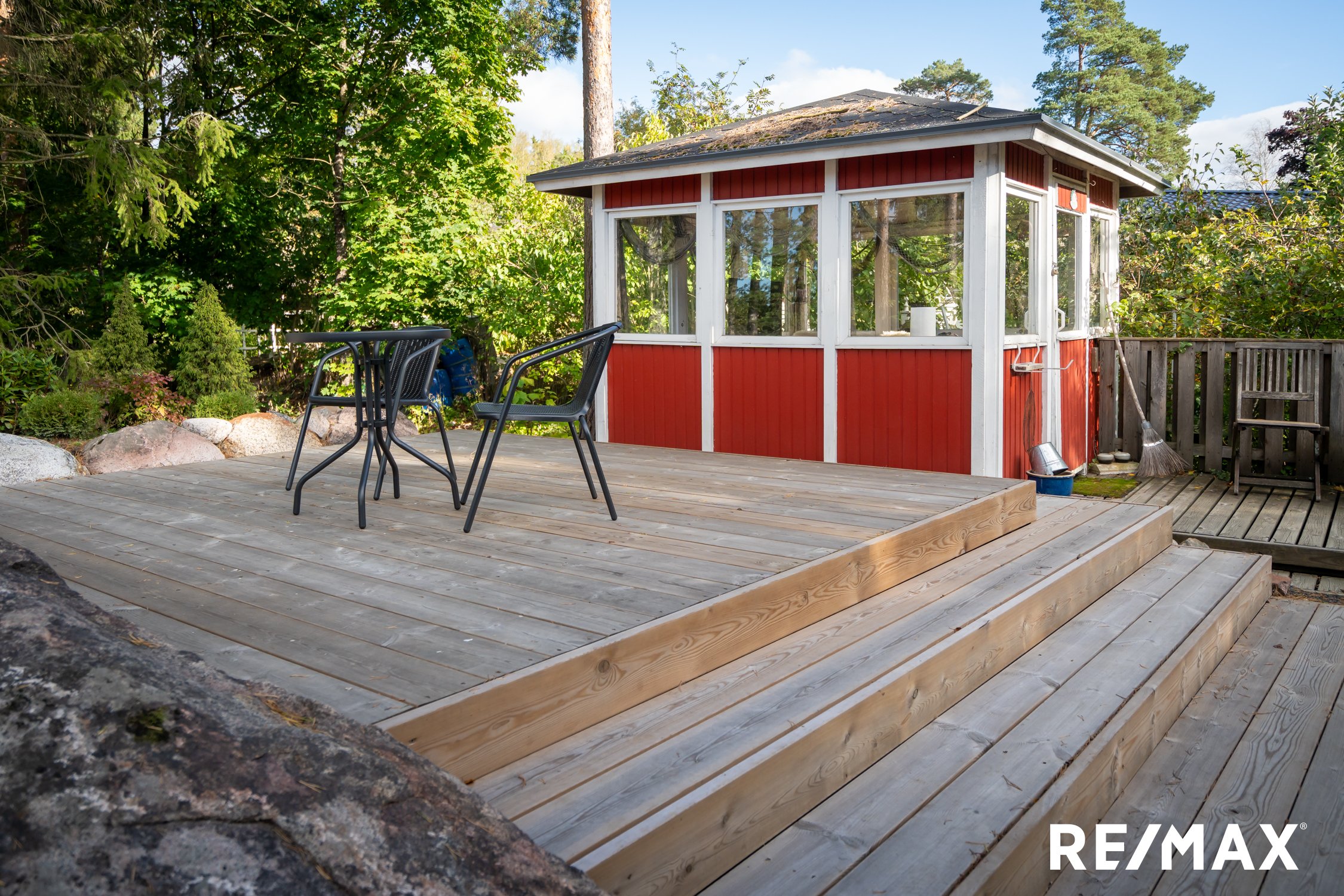 Asunnon avarasta olohuoneesta on suora yhteys luonnon kauniille takapihalle. Takapiha rajoittuu metsään, tarjoten luonnonrauhaa ja yksityisyyttä ilman naapurien näköyhteyttä. Oma rauha ja kauniit maisemat sekä erittäin hyvin hoidetut yhtiön etupiha lisäävät asumiseen viihtyvyyttä. Takapihalla on terassi sekä oma ns. huvimaja joka kuuluu tähän asuntoon.