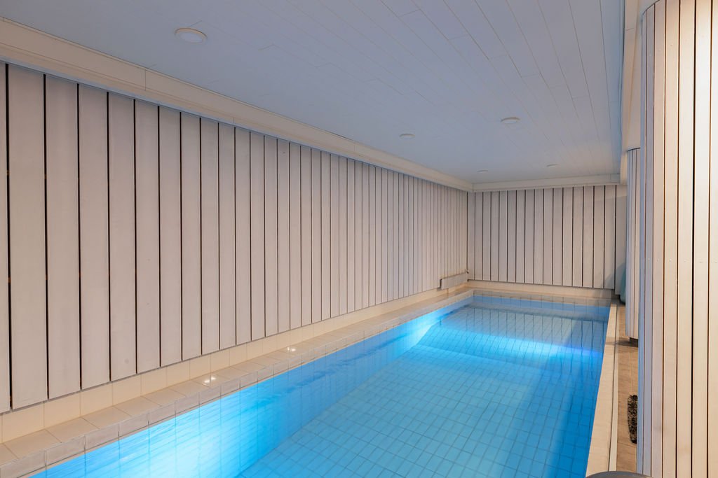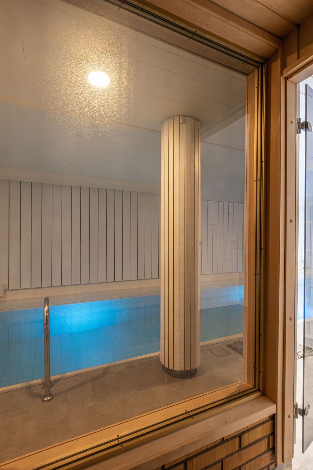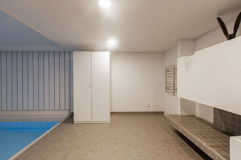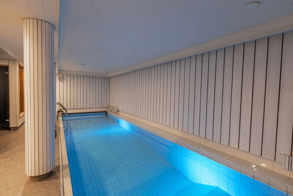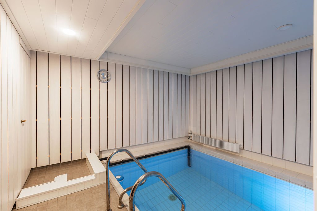 Kodin sydän on suuri olohuone, josta avautuu näkymät takapihan puolella olevaan metsikköön. Keittiö on varusteltu nykyaikaisilla laitteilla ja tilava ruokailutila kutsuu perheen ja ystävät yhteisiin hetkiin. Asuntoon arjen luksusta tuo oma uima-allas, joka tarjoaa mahdollisuuden rentoutumiseen omassa kodissa. Allashuoneen yhteydessä on sauna, jossa on heti valmis kiuas. Allasosaston kruunaa takka ja tunnelmavalaistus. Lisäksi asunnolla on oma autotalli, johon on myös sisäkautta kulku.