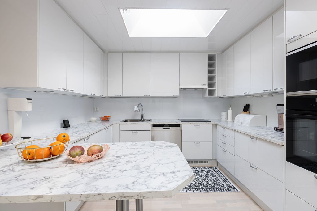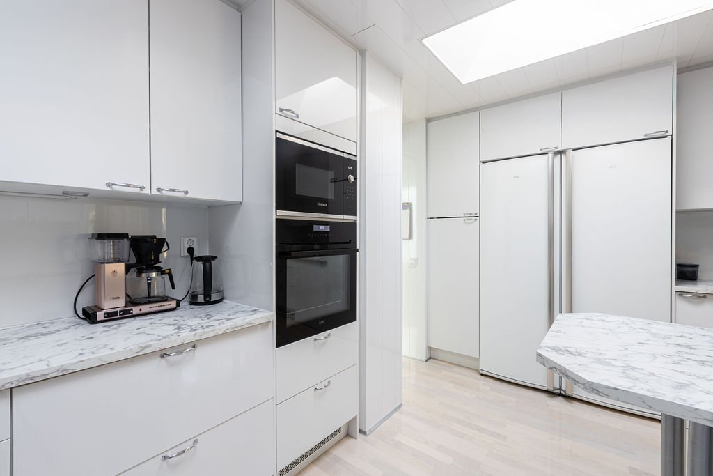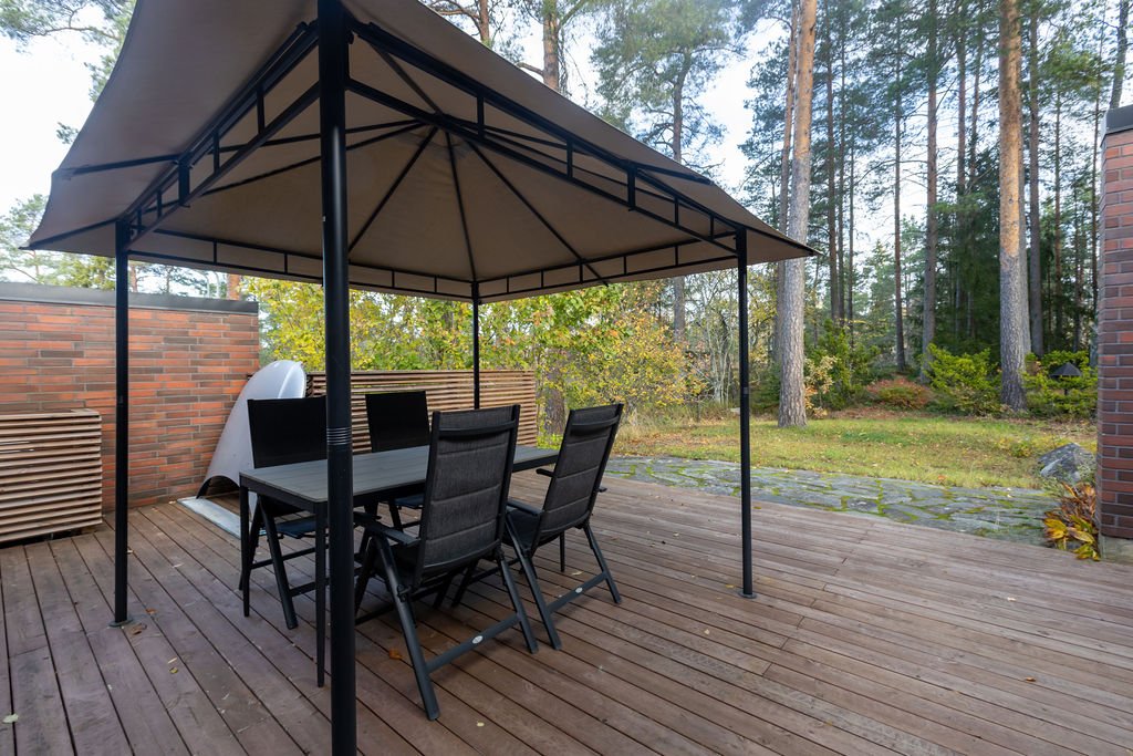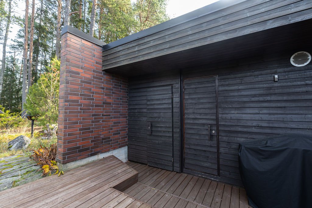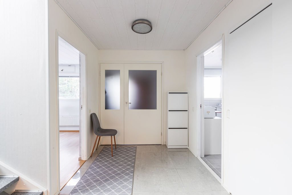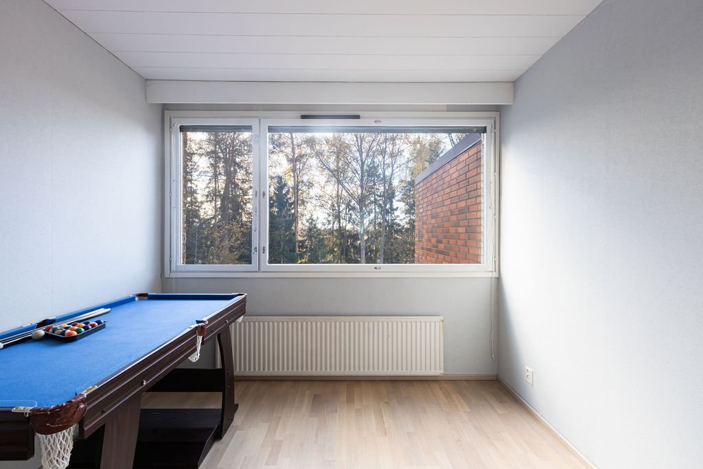 Kodin sydän on suuri olohuone, josta avautuu näkymät takapihan puolella olevaan metsikköön. Keittiö on varusteltu nykyaikaisilla laitteilla ja tilava ruokailutila kutsuu perheen ja ystävät yhteisiin hetkiin. Asuntoon arjen luksusta tuo oma uima-allas, joka tarjoaa mahdollisuuden rentoutumiseen omassa kodissa. Allashuoneen yhteydessä on sauna, jossa on heti valmis kiuas. Allasosaston kruunaa takka ja tunnelmavalaistus. Lisäksi asunnolla on oma autotalli, johon on myös sisäkautta kulku.