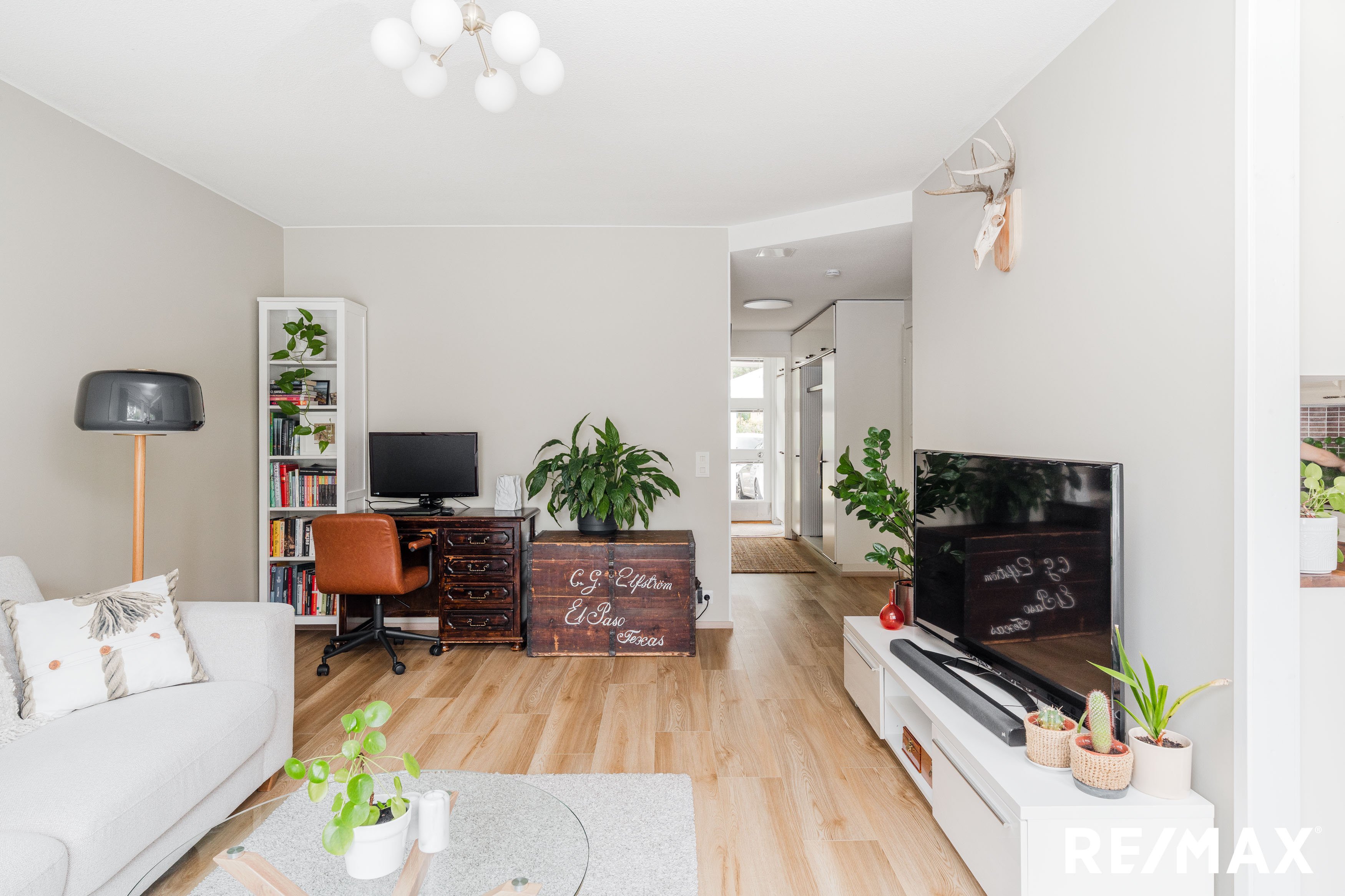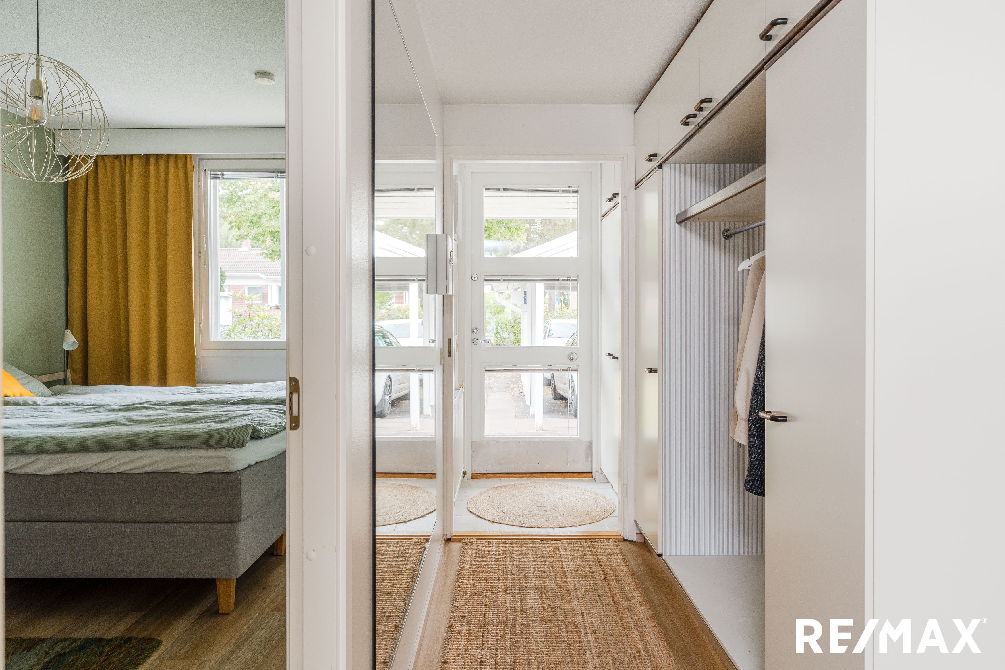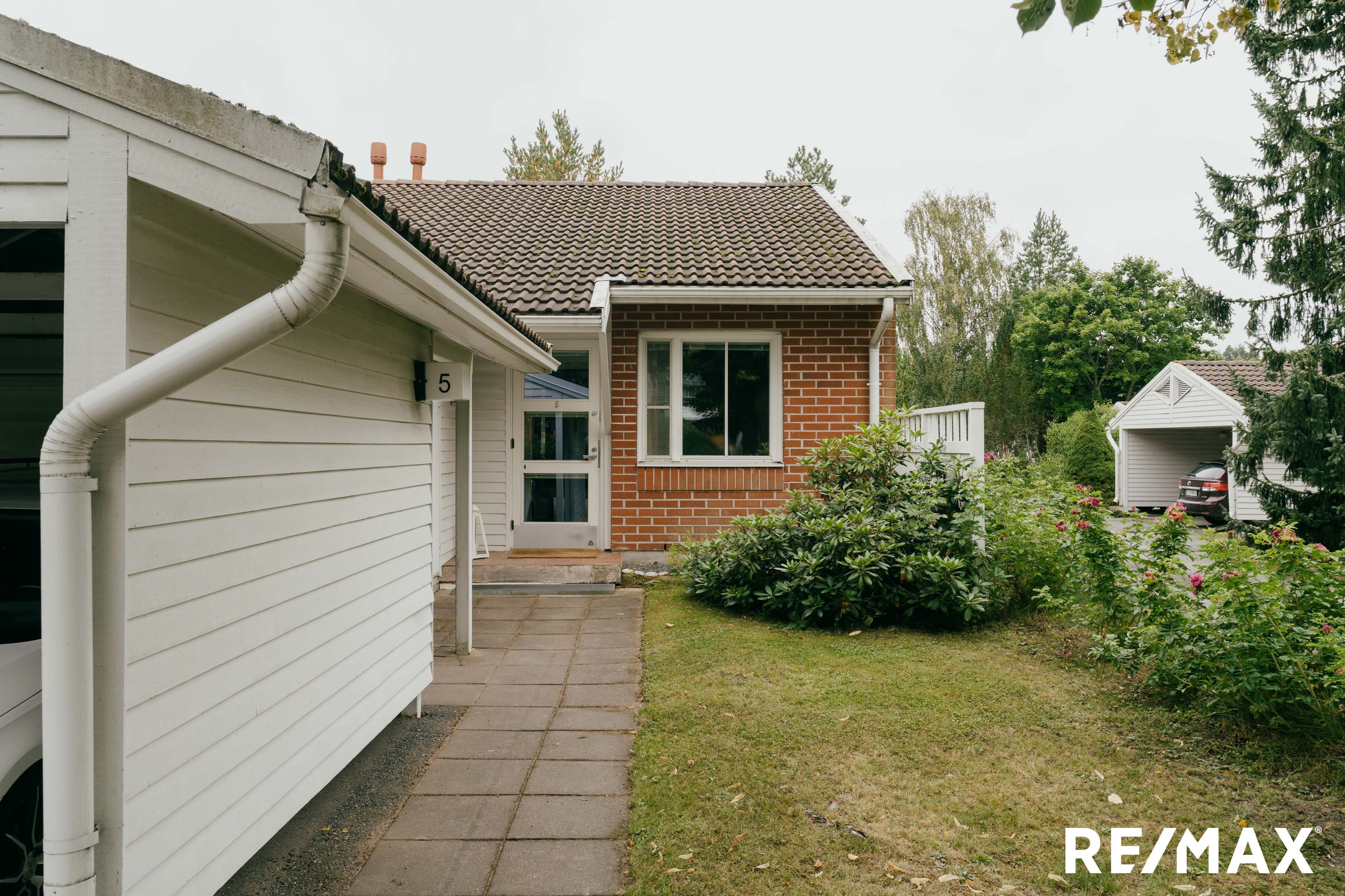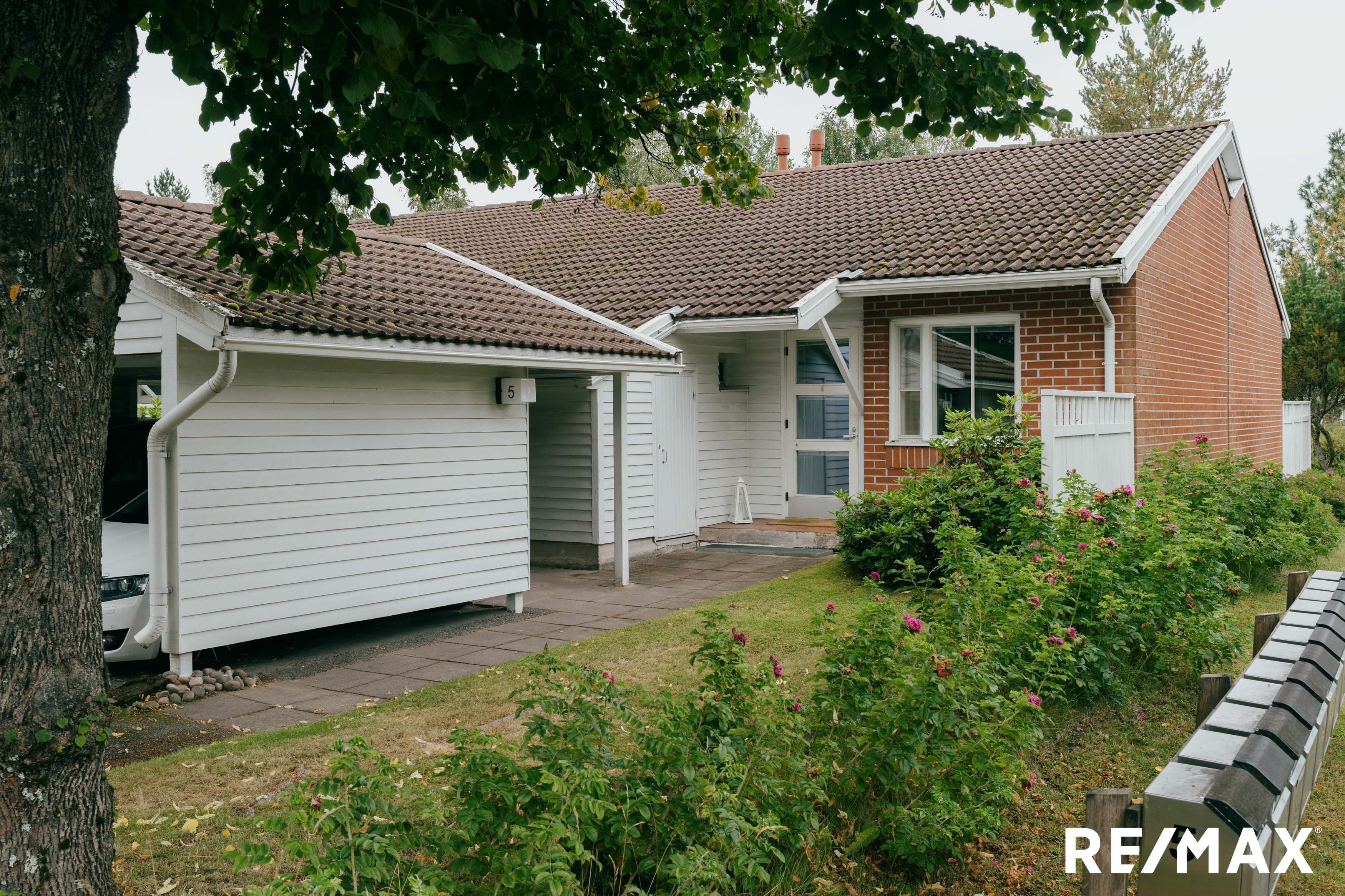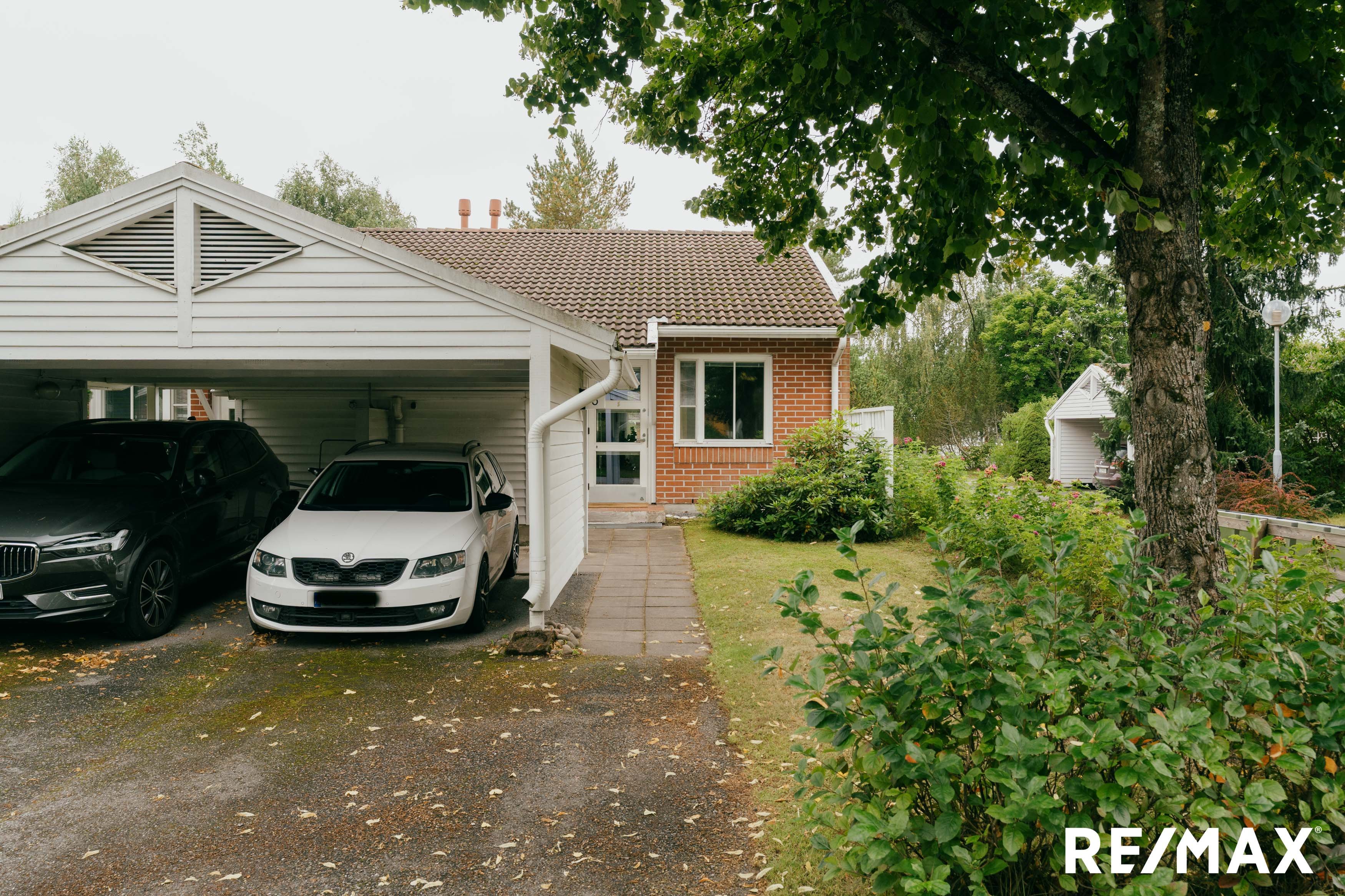 Asunnon edessä on autokatospaikka ja pihapaikka