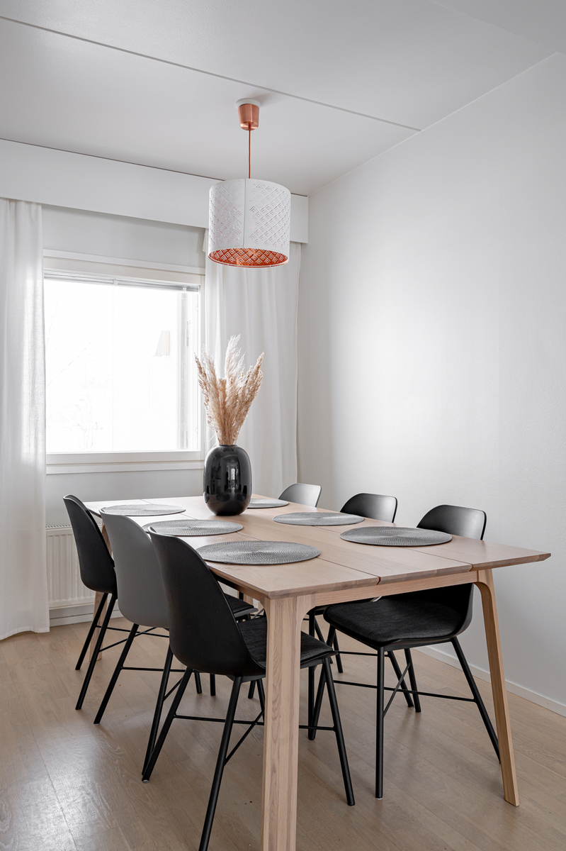 Olohuone on tilava ja ruokailutila yhdistää tämän sulavasti keittiöön. Kylpyhuoneessa ja saunassa riittää hyvin tilaa pienelle perheellekin ja se on uusittu kokonaisuudessaan vuonna 2019. Kokonaisuutta täydentää vielä erillinen toinen WC.