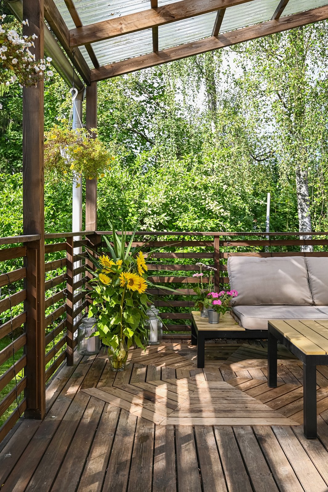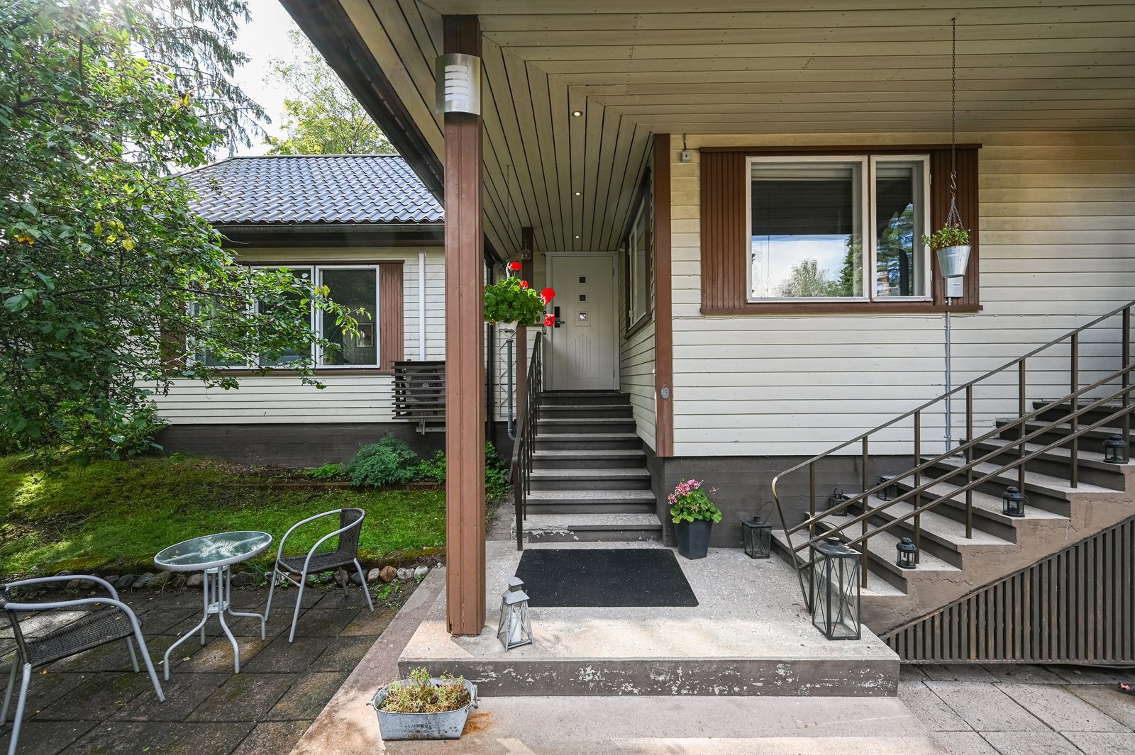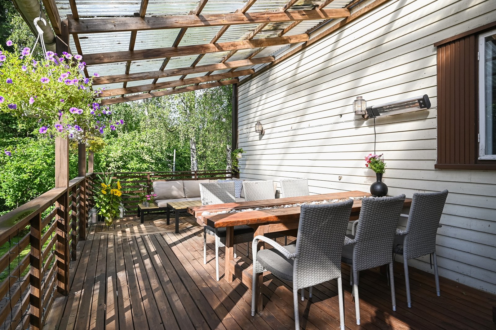 Isolla terassilla nautit perheen ja ystävien kanssa grillihetkistä ja pihamaata löytyy viherpeukalollekkin mukavasti. Vesi-ilmalämpöpumppu on asennettu öljylämmityksen kylkeen ja vesikate uusittu vuonna 2019.