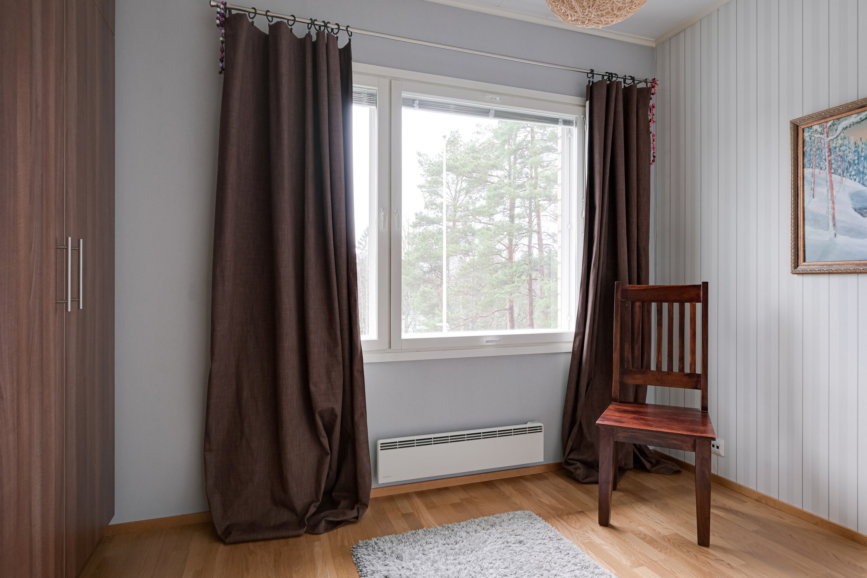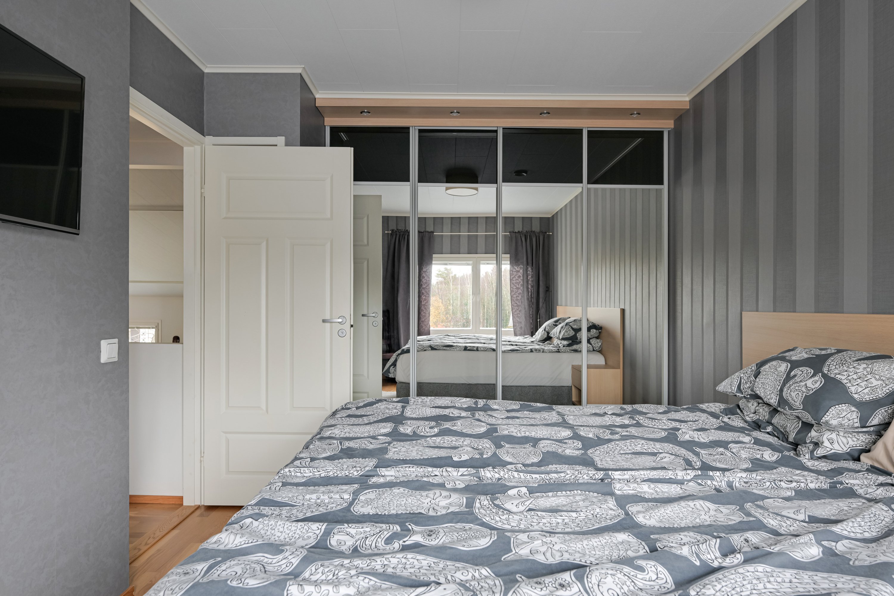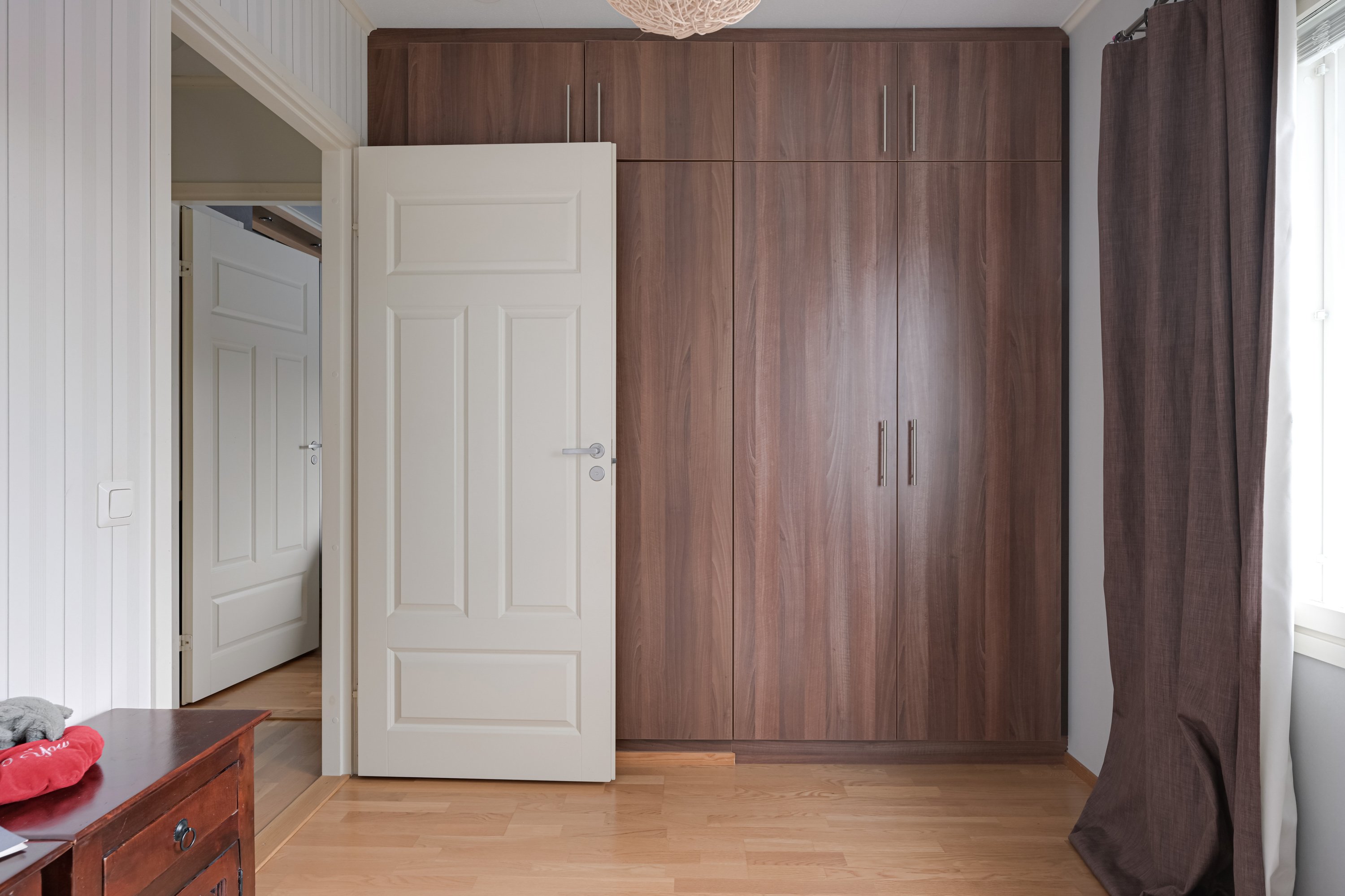 Kaikissa makuuhuoneissa hyvin säilytystilaa.