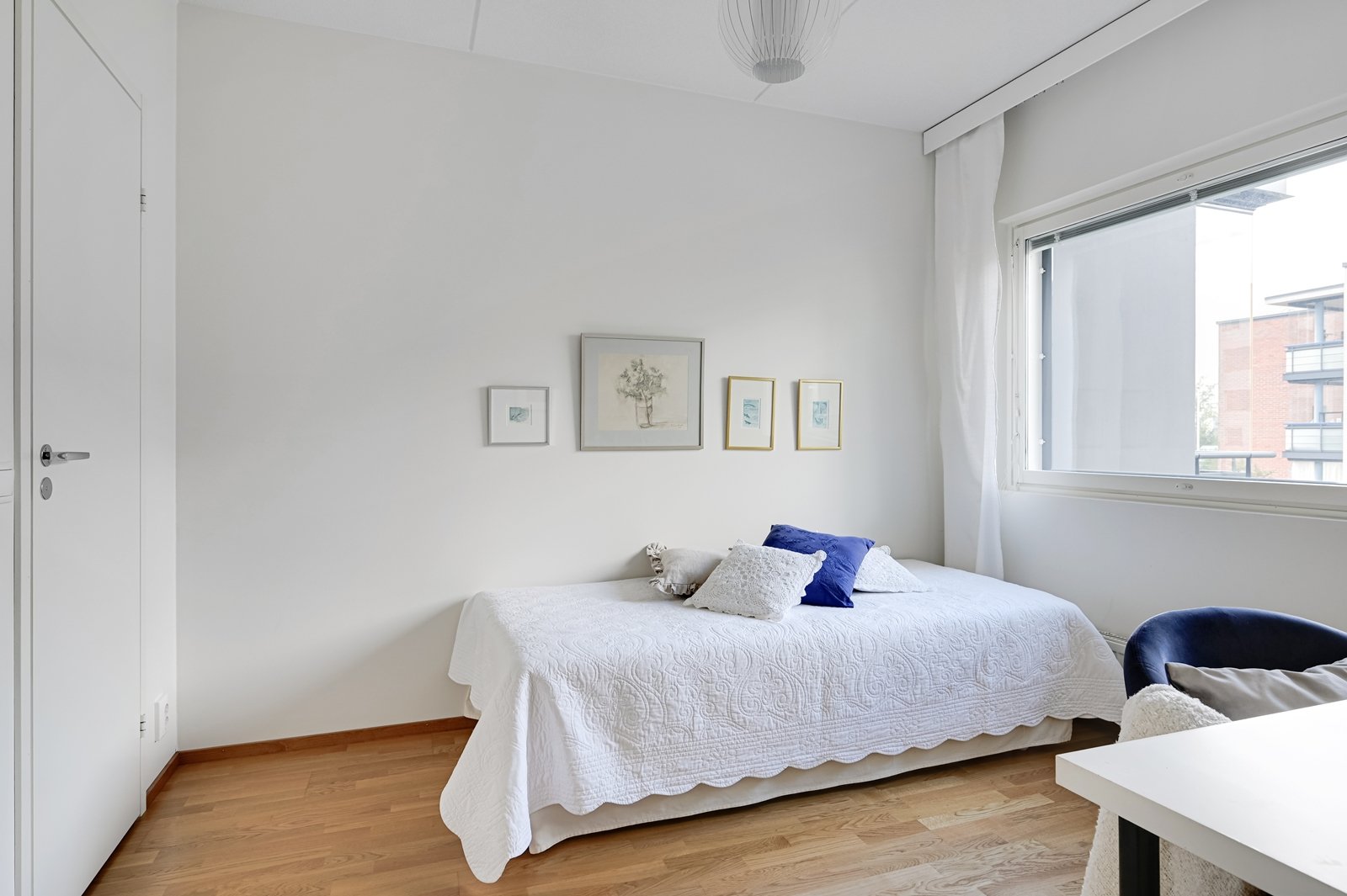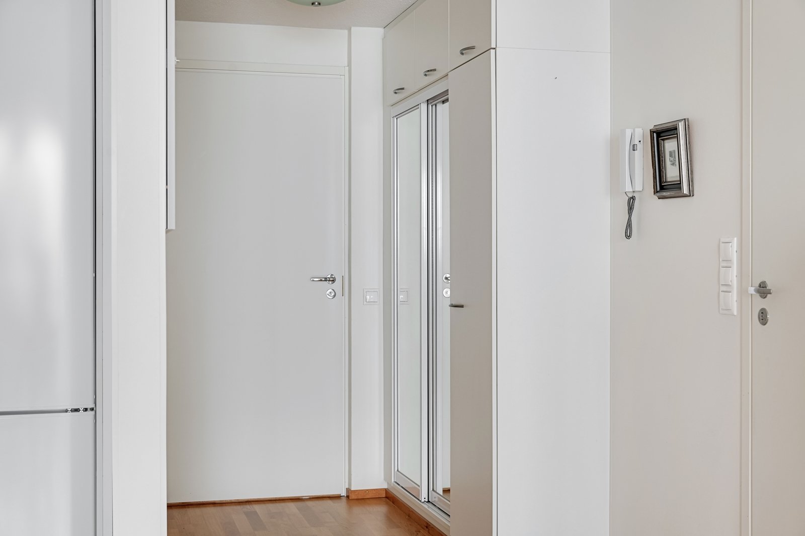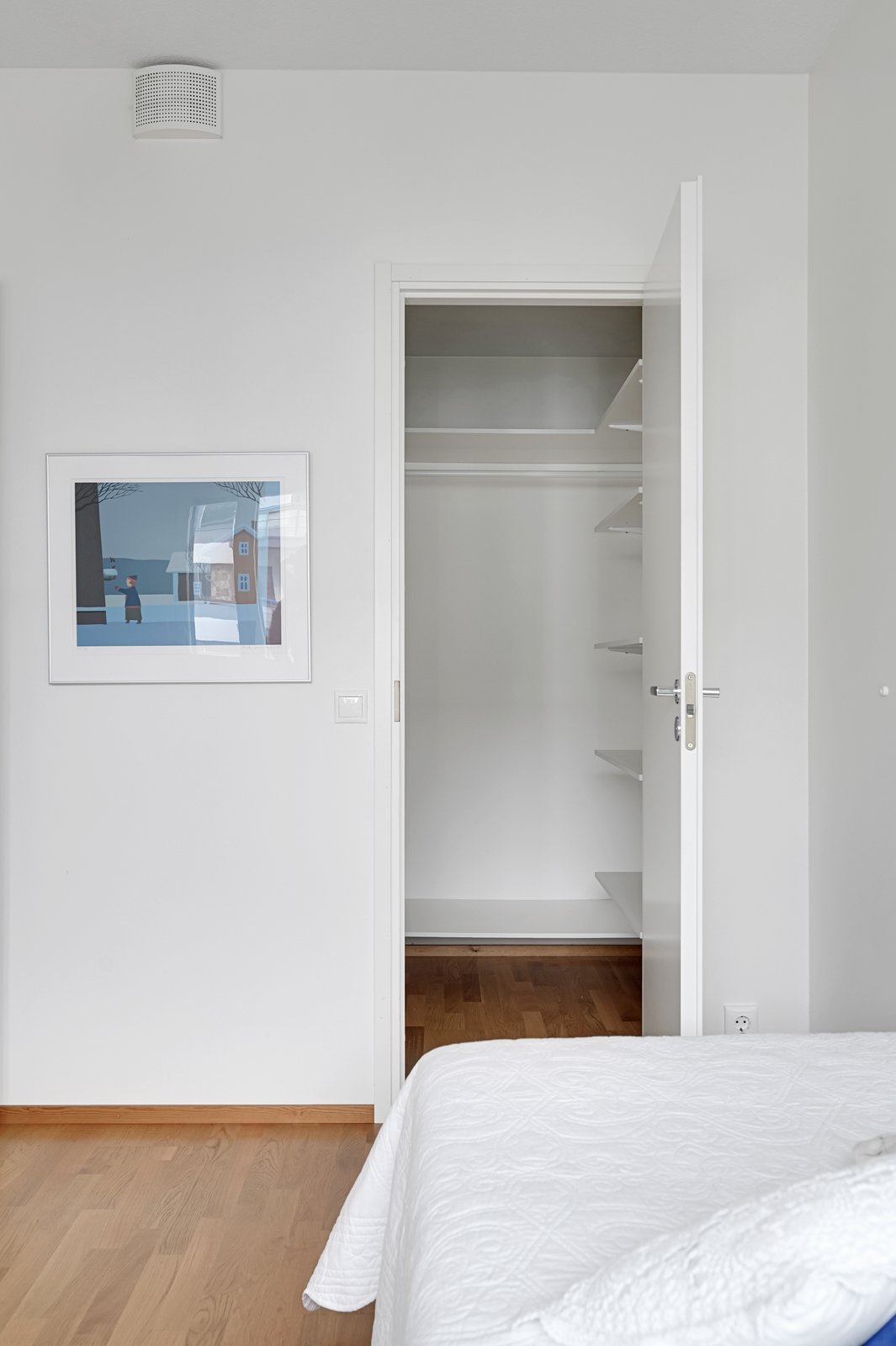 Makuuhuoneen yhteydessä on vaatehuone. Keittiön ja eteisen kaapistoissa on runsaasti säilytystilaa ja lisäksi huoneiston käytössä on verkkokellarikomero.