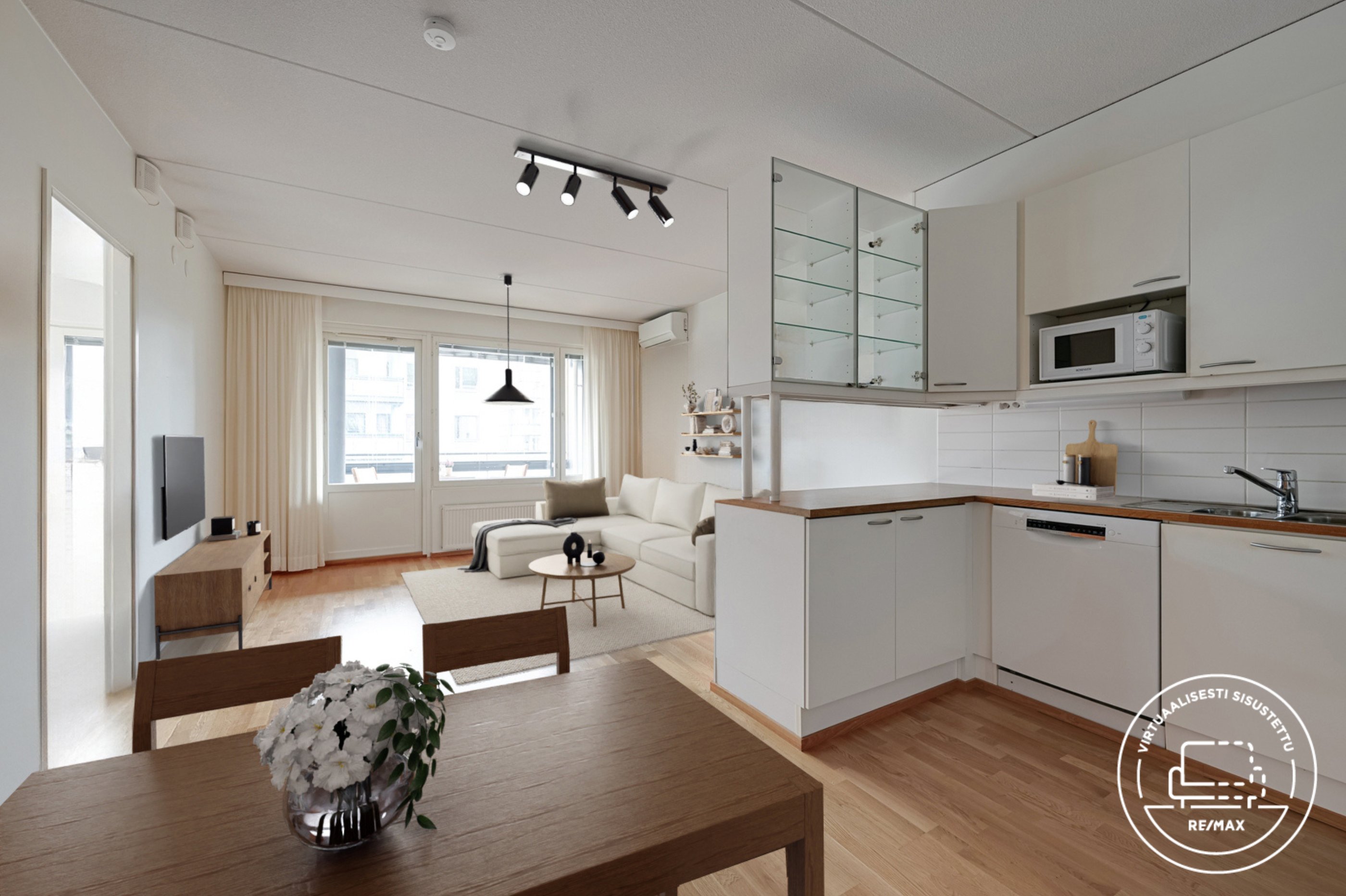 Saunallinen kaksio on varustettu tehokkailla neliöillä ja järkevällä pohjalla. Kylpyhuone on tilava ja moderni ja asunnossa on myös oma, siistikuntoinen sauna.