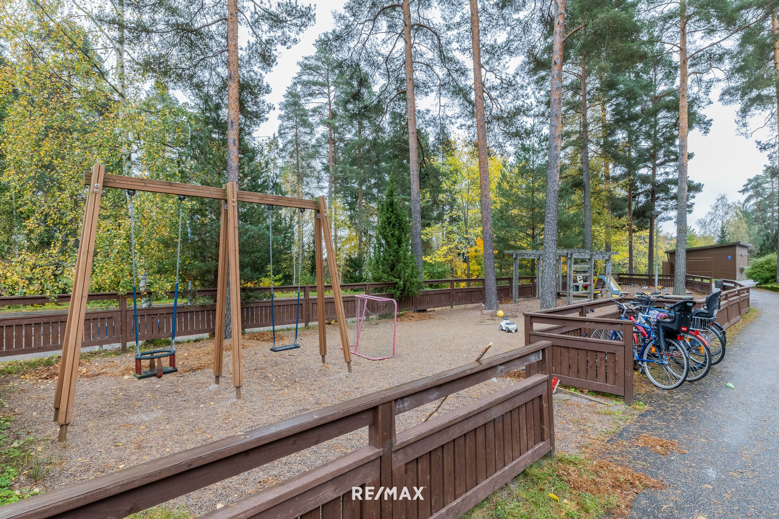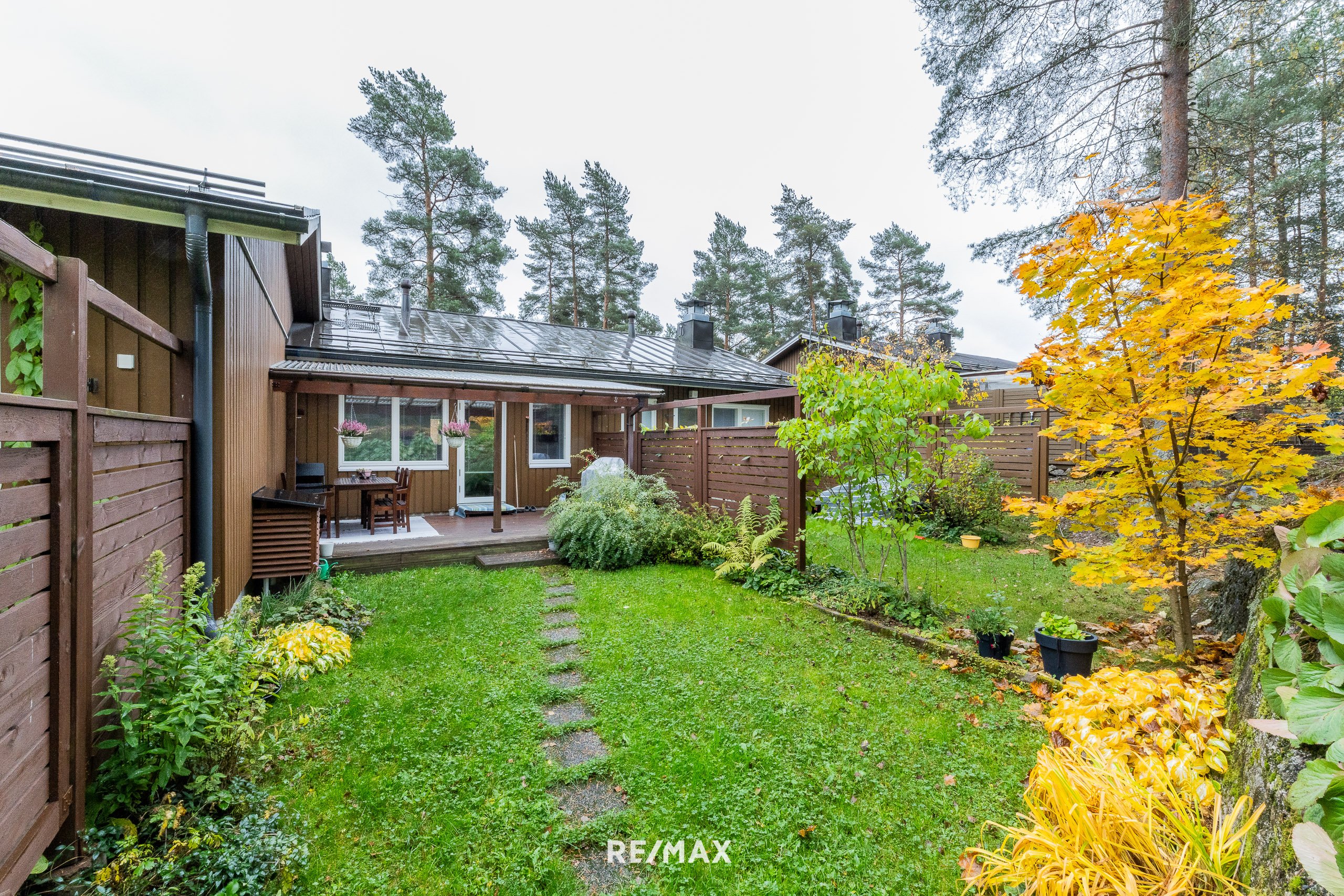 Asunnon piha rajoittuu metsään, mikä tarjoaa erinomaisen viihtyvyyden metsän välittömässä läheisyydessä sekä mahdollisuuden kulkea kulkea luonnossa suoraan kotipihalta.
