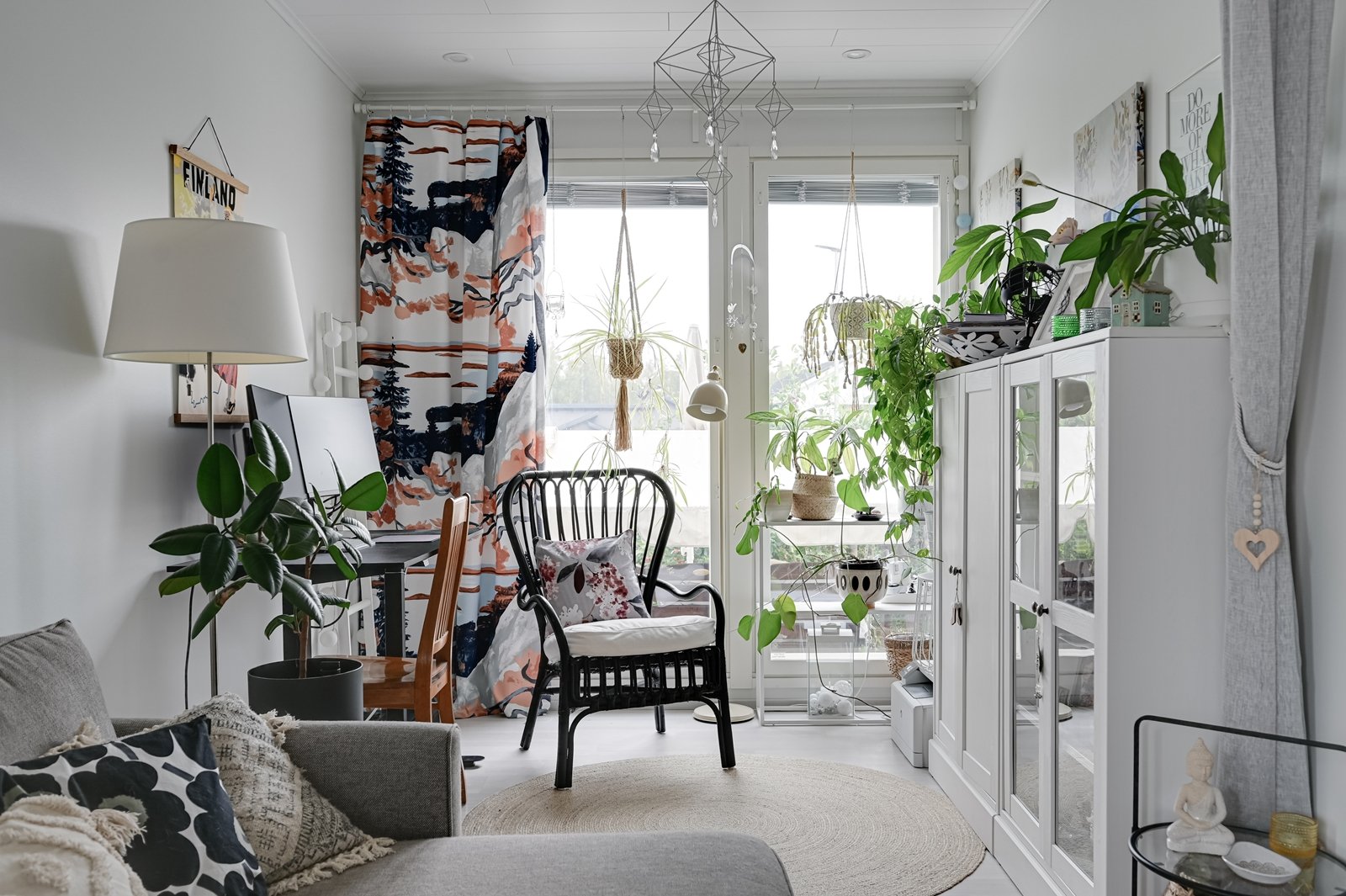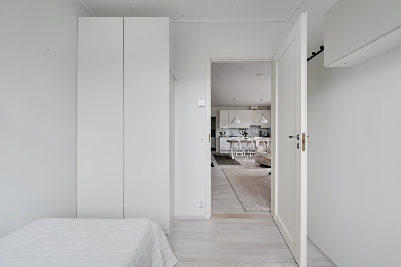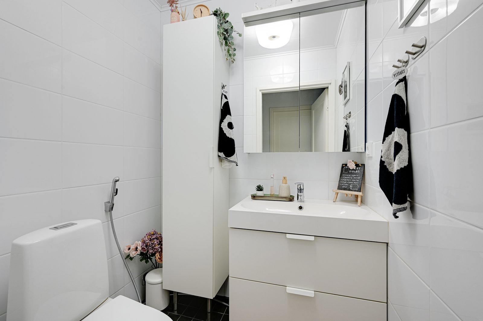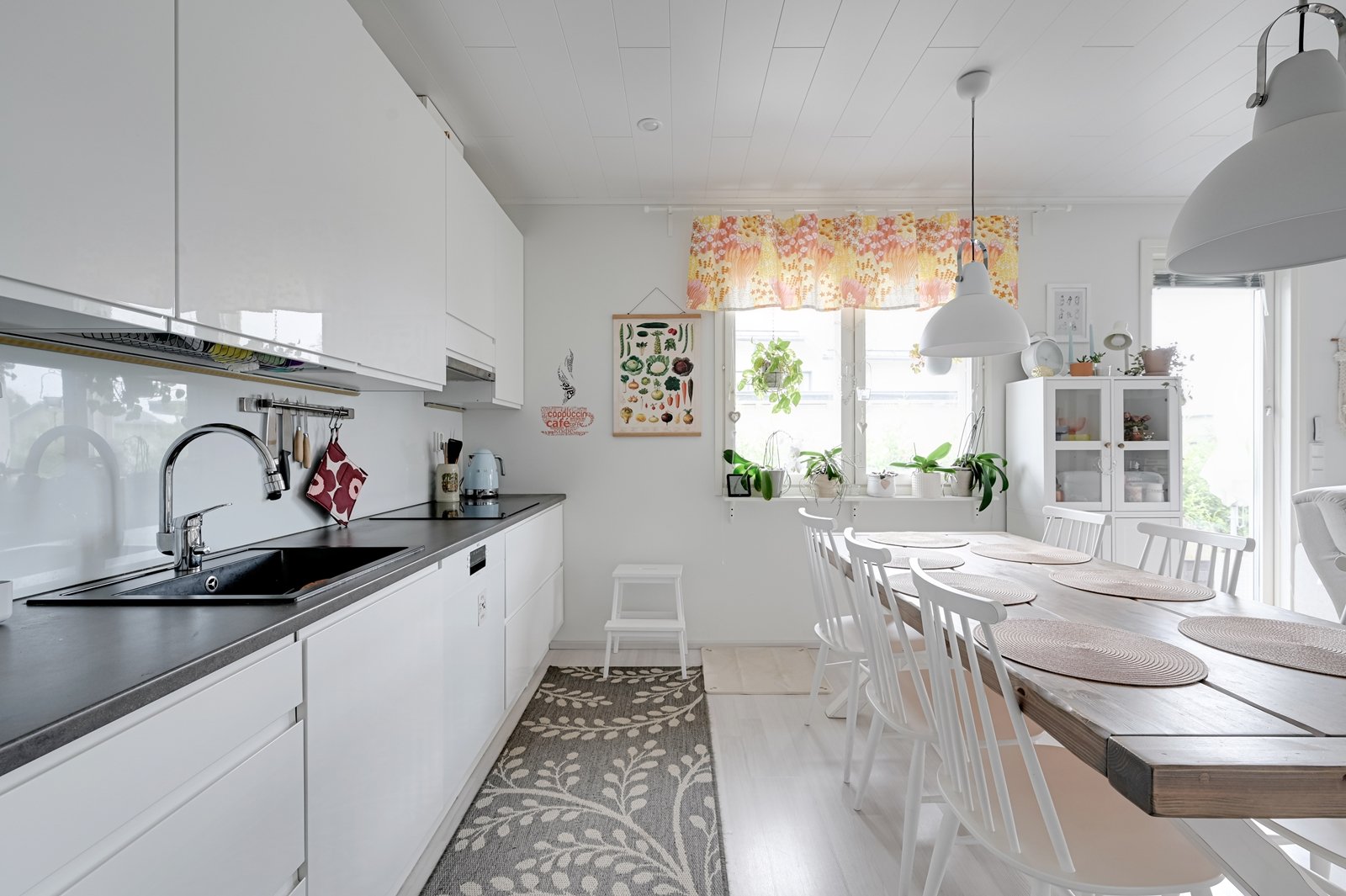 Tämän kodin ehdoton etu on hyvin suunniteltu toimiva pohjaratkaisu. Kodin sydämenä toimii avara kauniilla valkoisella varaavalla takalla varustettu olohuoneen ja modernin kiiltovalkoisin kalustein sisustetun avokeittiön yhtenäinen tila. Keittiöstä pääsee kätevästi suoraan kodinhoitotilaan, jossa on runsaasti kaappi- ja laskutilaa sekä oma uloskäynti. Kahdella suihkulla varustettu pesutila ja tyylikäs sauna tuovat pientä luksusta arkeen. Asunnon nykyisten kolmen makuuhuoneen lisäksi olohuoneesta voi helposti erottaa neljännen makuuhuoneen tai tarvittaessa erillisen työtilan.