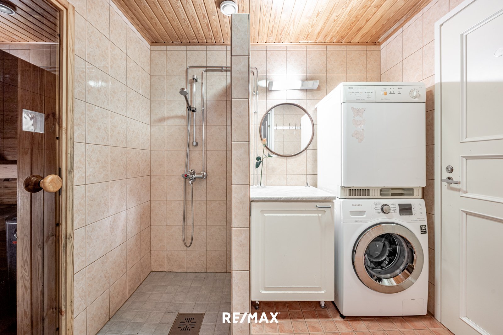 Sauna ja kylpyhuone tarjoavat rentouttavat puitteet päivän päätteeksi. Säilytystilaa on runsaasti niin vaatehuoneessa kuin ulkovarastossakin, mikä lisää asumisen helppoutta