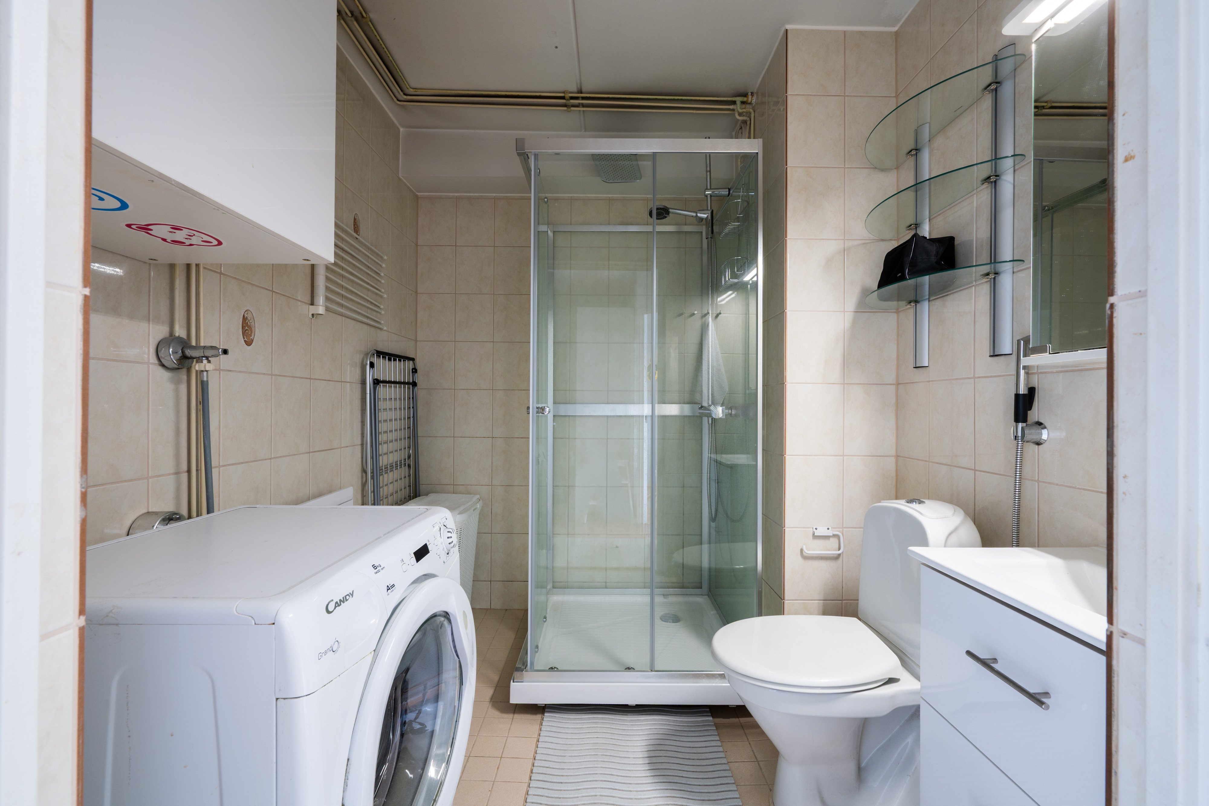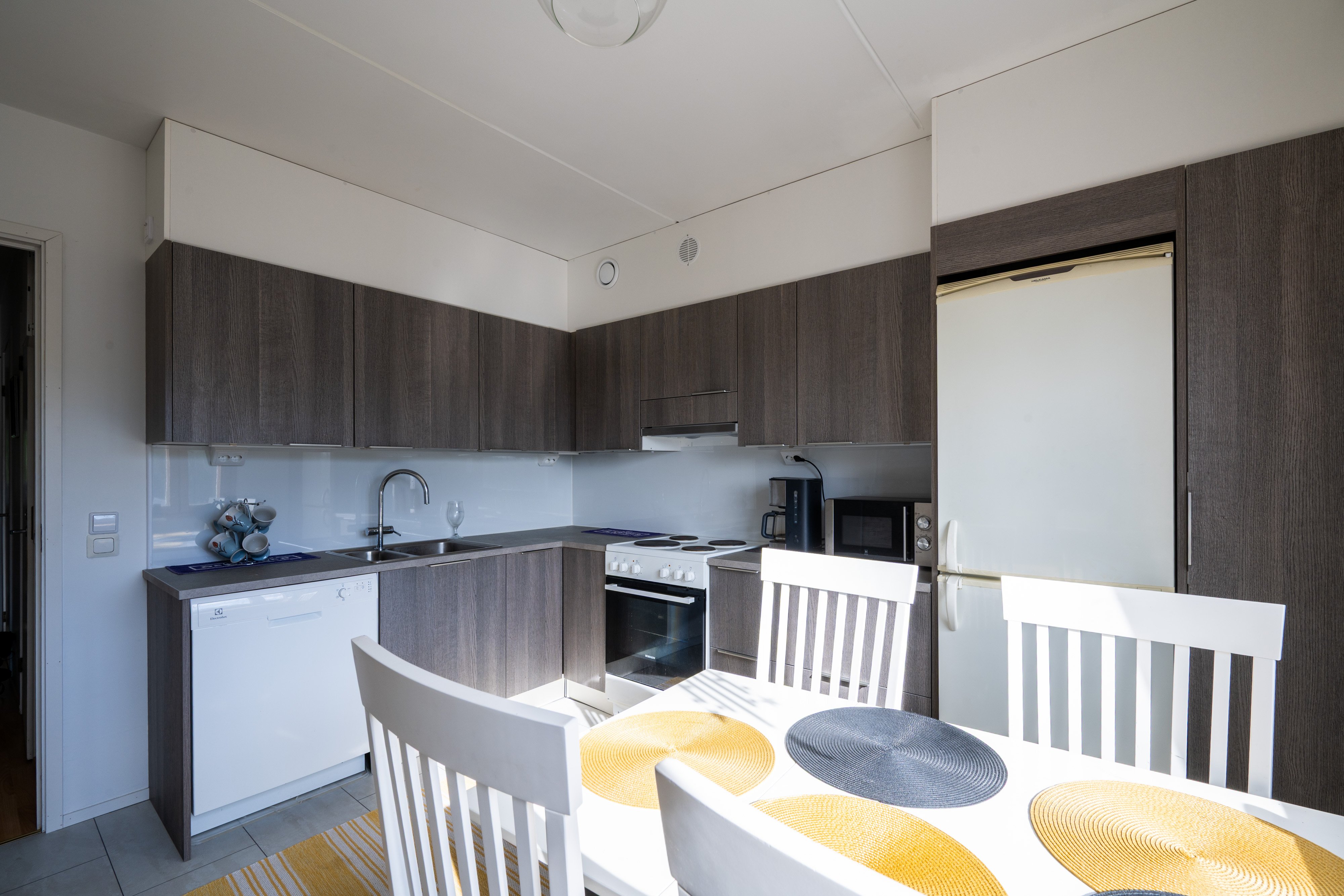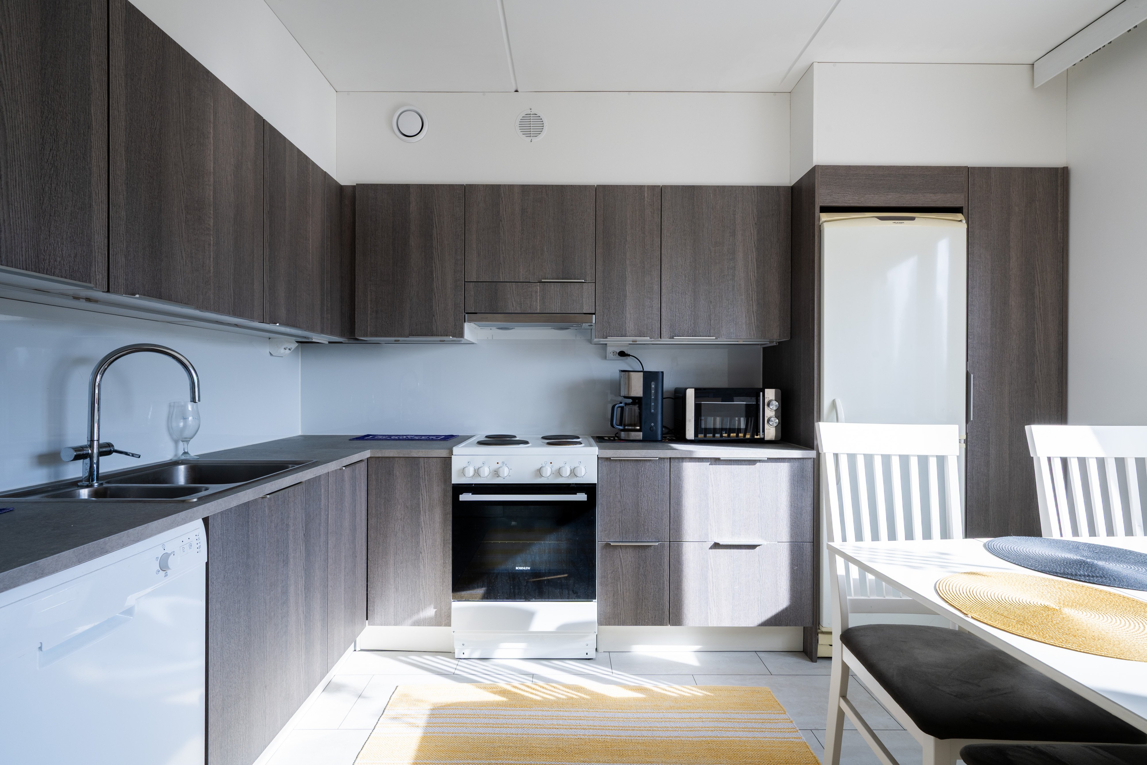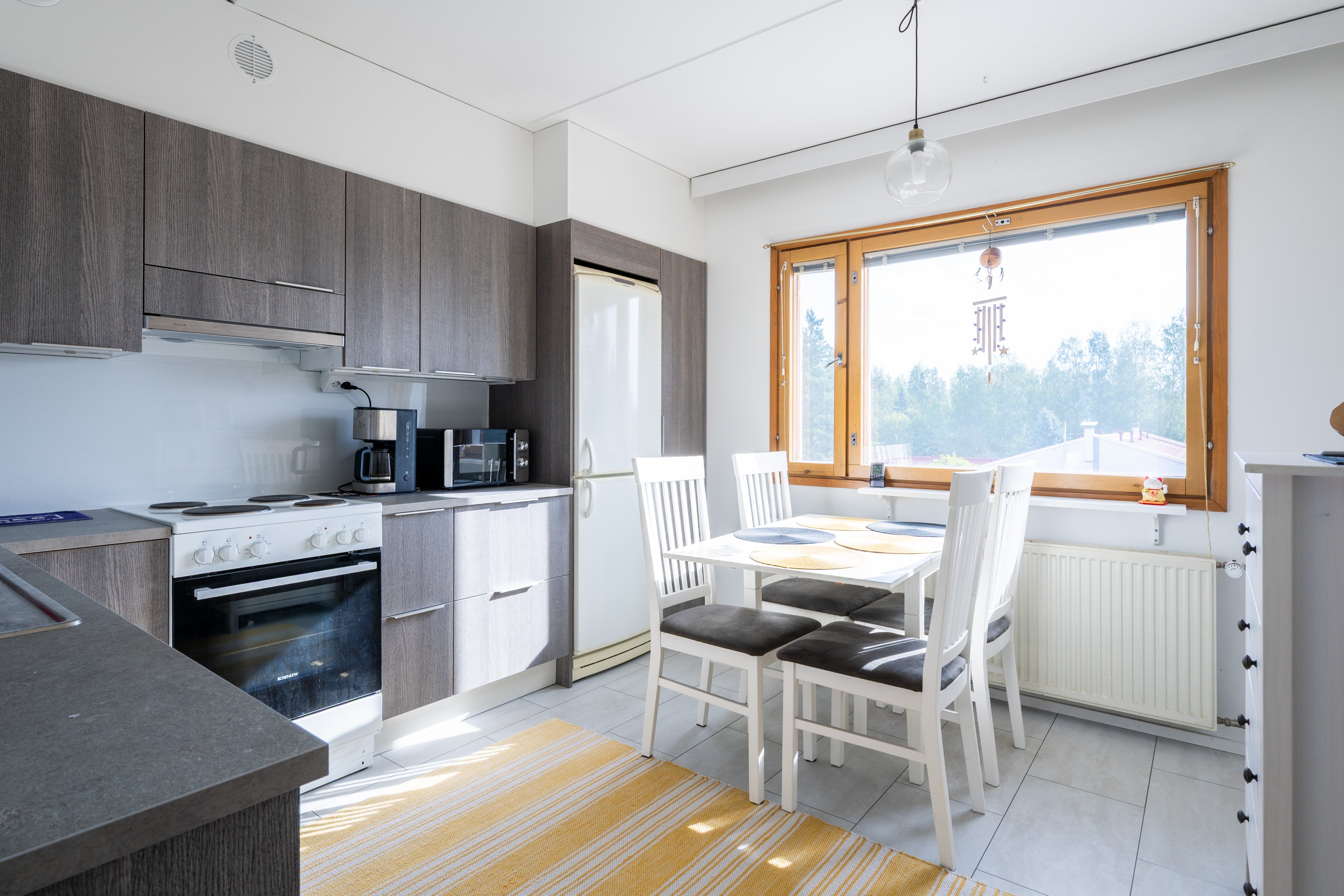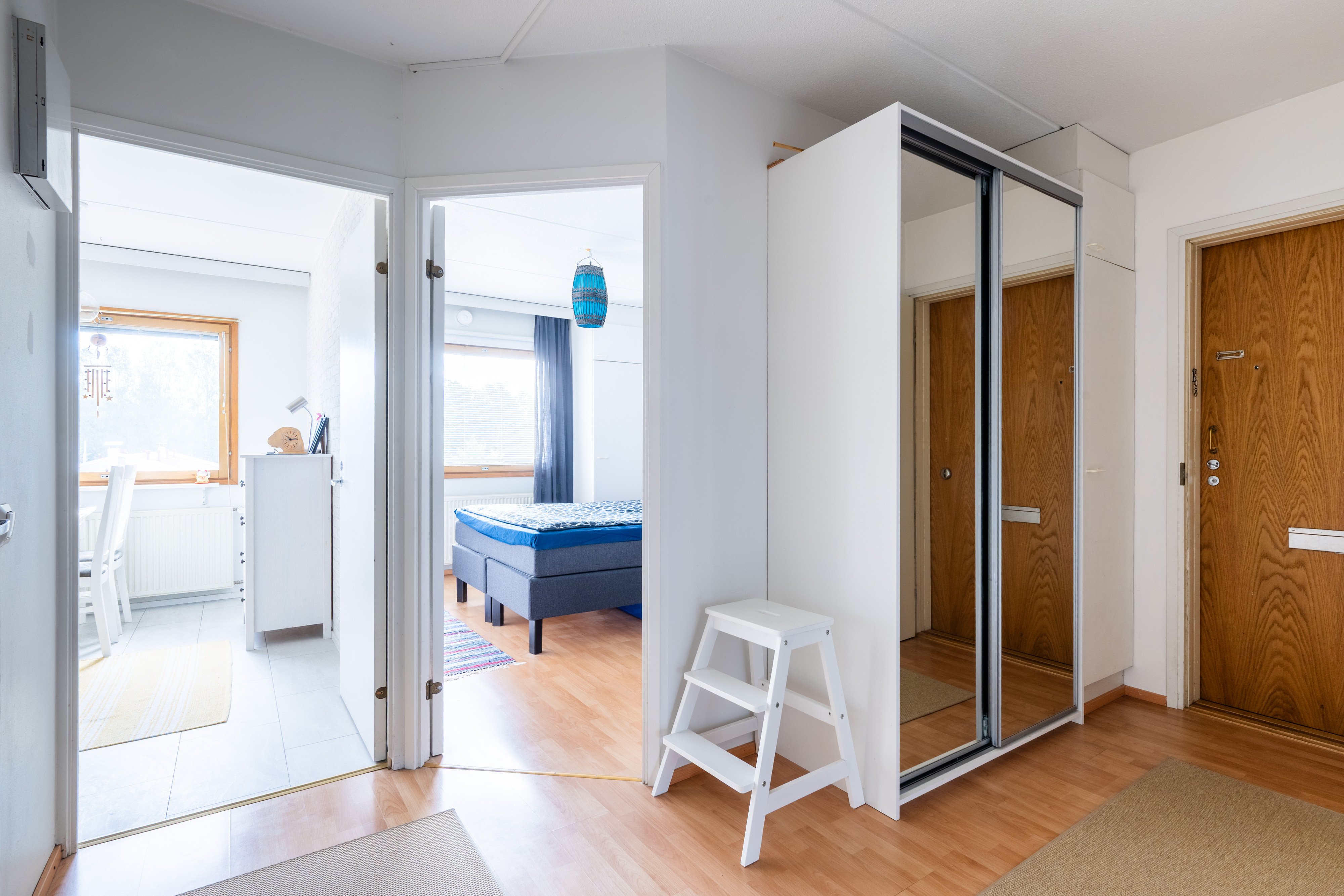 Keittiö on remontoitu vuonna 2022. Kaapistot ja lattiat on uusittu, liesi ja liesituuletin päivitetty, ja varusteet ovat arkea helpottavat jääkaappipakastimesta astianpesukoneeseen. Kylpyhuoneessa suihkukaappi, lattialämmitys ja pesukoneliitäntä tekevät aamuista sujuvia. Olohuoneessa ja makuuhuoneessa on laminaattilattiat, keittiössä ja kylpyhuoneessa laatta. Parveke on lasitettu ja suunta länteen, mikä pidentää kautta ja tuo lisätilaa pitkälle syksyyn. Säilytystä on kaapistoissa ja kellarin häkkivarastossa.