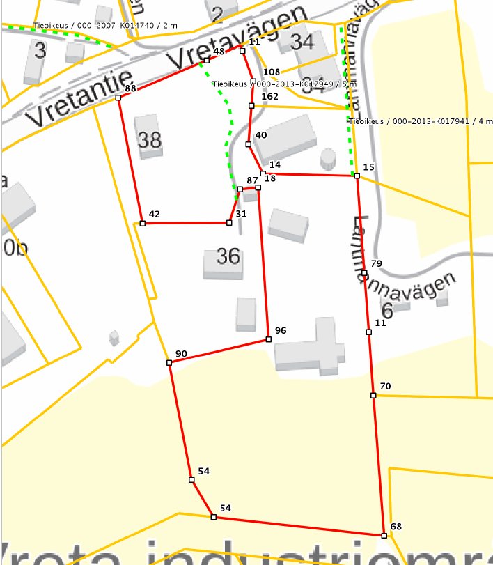 Pihapiirin alueeksi lasketaan n. 8 000 m2 ja e-luku on 0,15 eli teoreettinen rakennusoikeus on 1 200 m2.