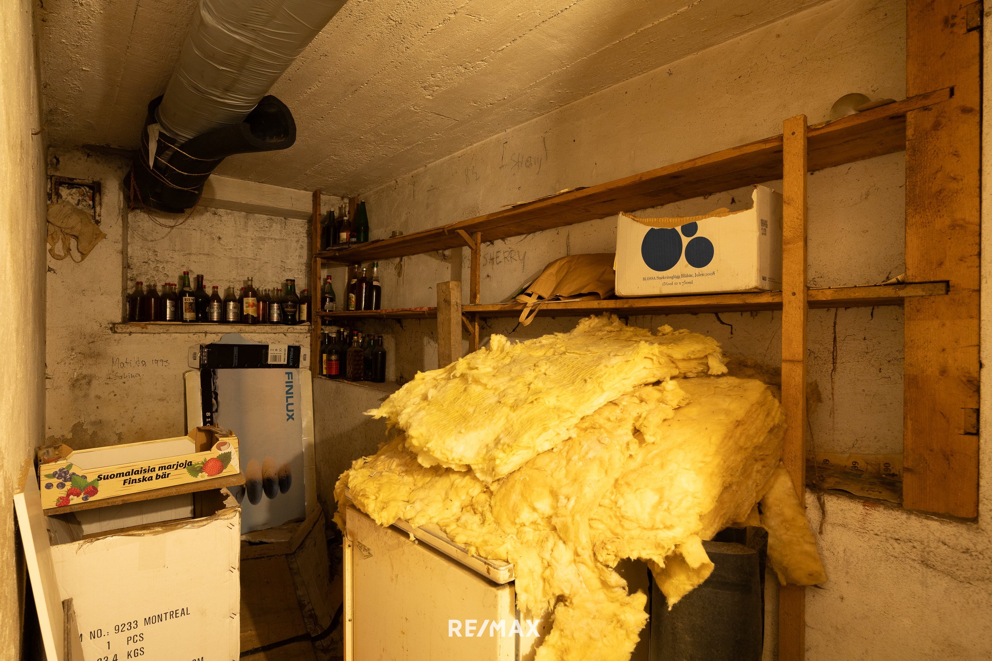 Talon pohjakerroksessa on neljä huonetta, keittiö, kylpyhuone ja wc sekä veranta. Ullakolla on kaksi makuuhuonetta ja runsaasti säilytystilaa, ja kellarista löytyy muun muassa viinikellari ja puuvarasto. Lämmitys tapahtuu puulla ja öljyllä, ja talon luonnollinen ilmanvaihto luo miellyttävän sisäilman.