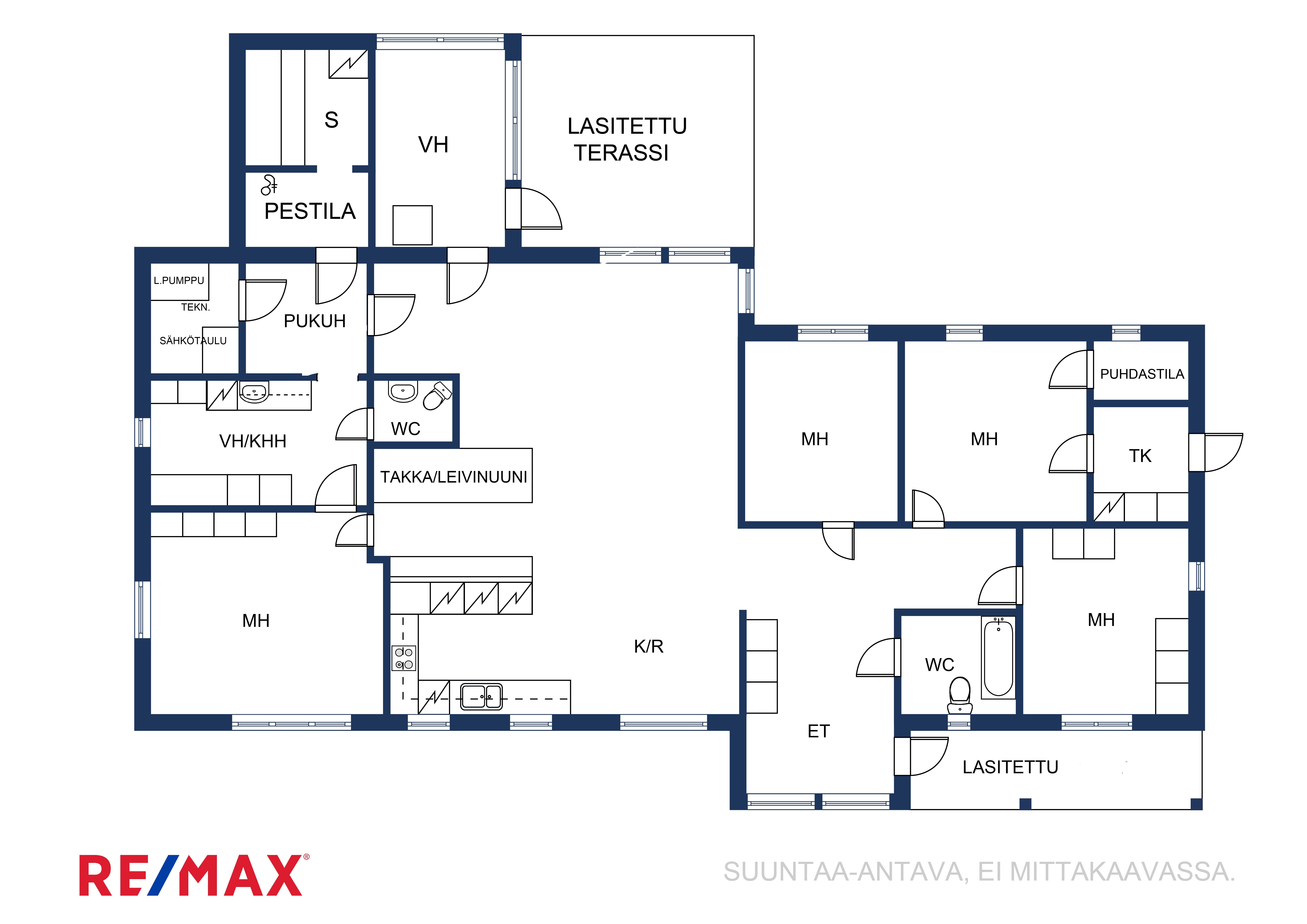 Asunnossa on neljä makuuhuonetta, joista yksi on muunnettu käteväksi vaatehuone-/varastotilaksi. Olohuoneessa varaava takka ja leivinuuni tuovat lämpöä ja tunnelmaa. Keittiö on moderni, hyvin varusteltu ja tarjoaa runsaasti säilytys- ja työskentelytilaa. Keittiöön luksusta ruoanlaittoa rakastavalle perheelle tuo kodin sydämenä olevat leivinuuni, puuhella ja takka, joiden tyyli on saatu sopimaan täydellisesti tähän nykyaikaiseen kotiin. Sauna puulämmitteisellä kiukaalla kruunaa päivän – tässä kodissa arjen luksus on osa jokapäiväistä elämää.