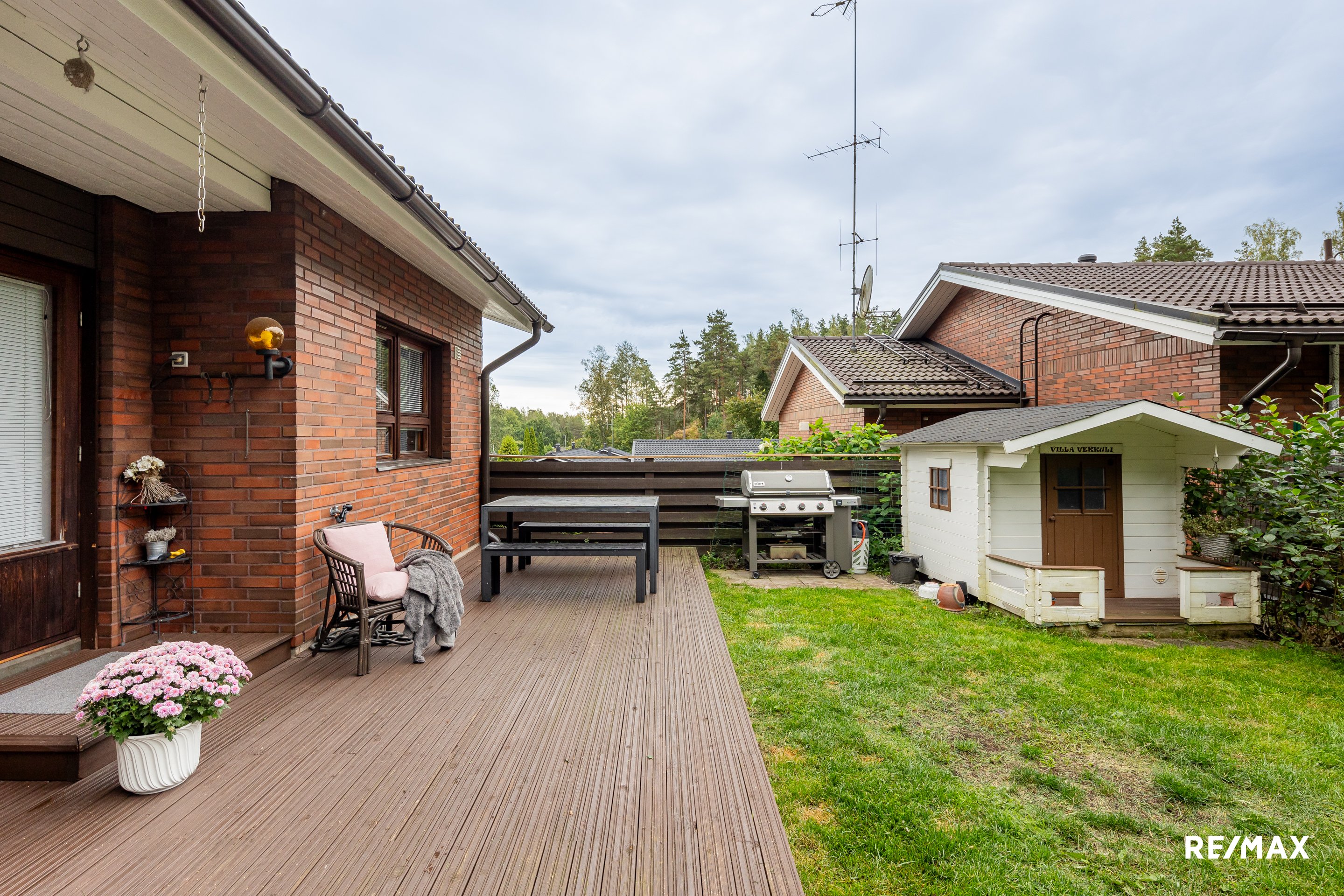 Tervetuloa tutustumaan tähän hyvin pidettyyn ja pohjaratkaisultaan erinomaisen toimivaan kotiin arvostetulla ja rauhallisella Jolkbyn alueella. Tämä yksitasoinen, neljän huoneen päätyasunto tarjoaa huoletonta ja viihtyisää asumista luonnon läheisyydessä, kuitenkin vain hetken päässä Kirkkonummen keskustan kattavista palveluista ja sujuvista liikenneyhteyksistä.