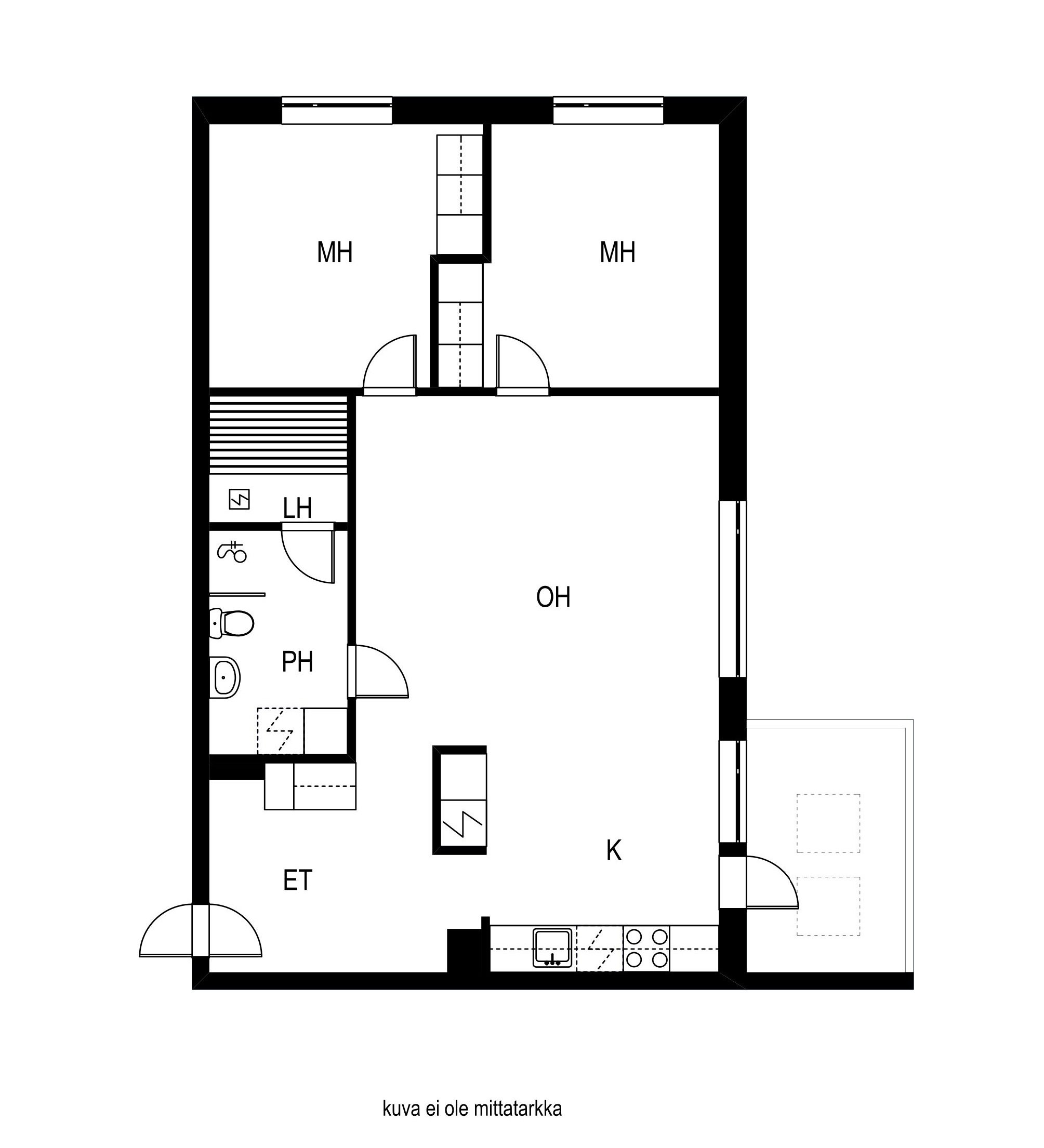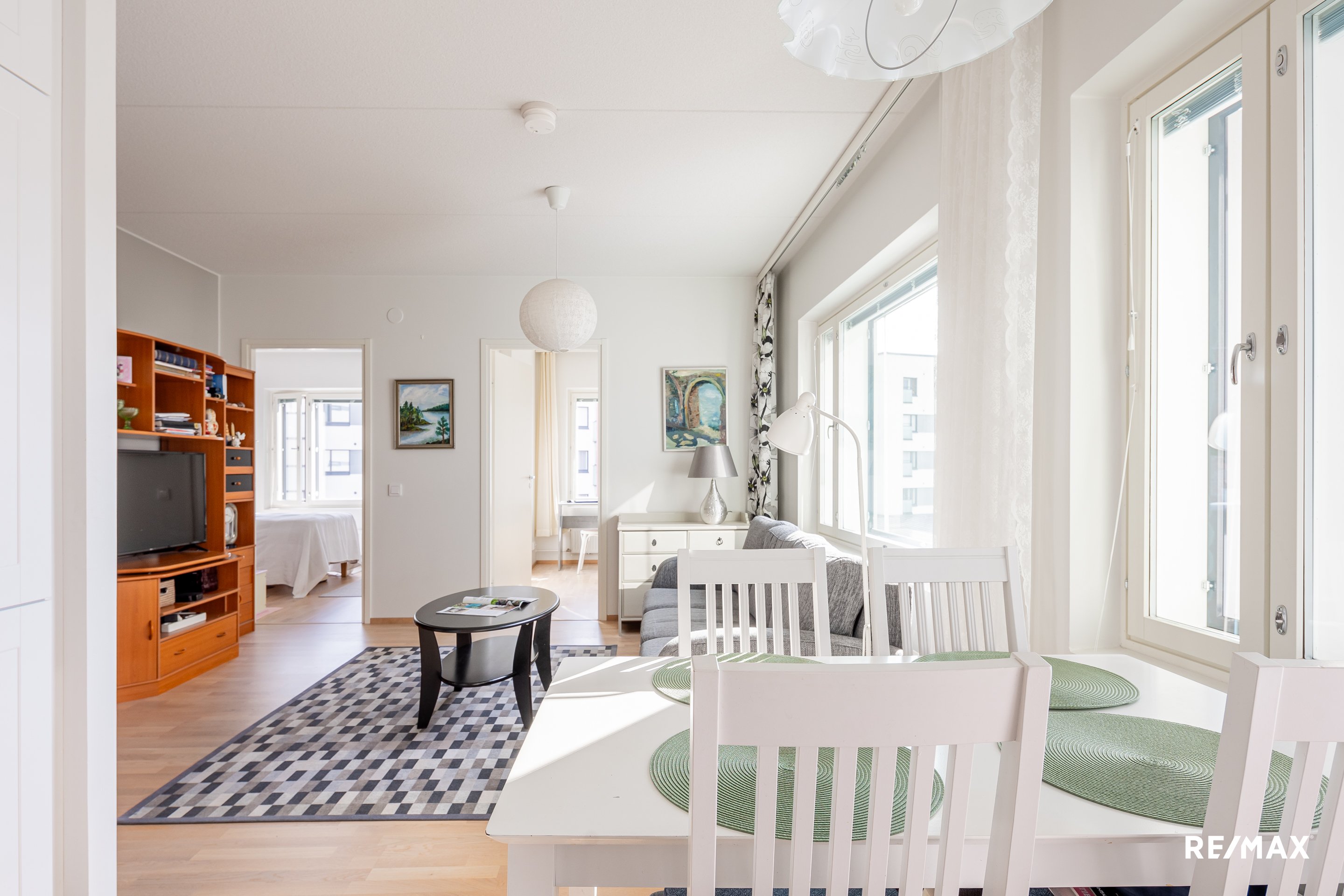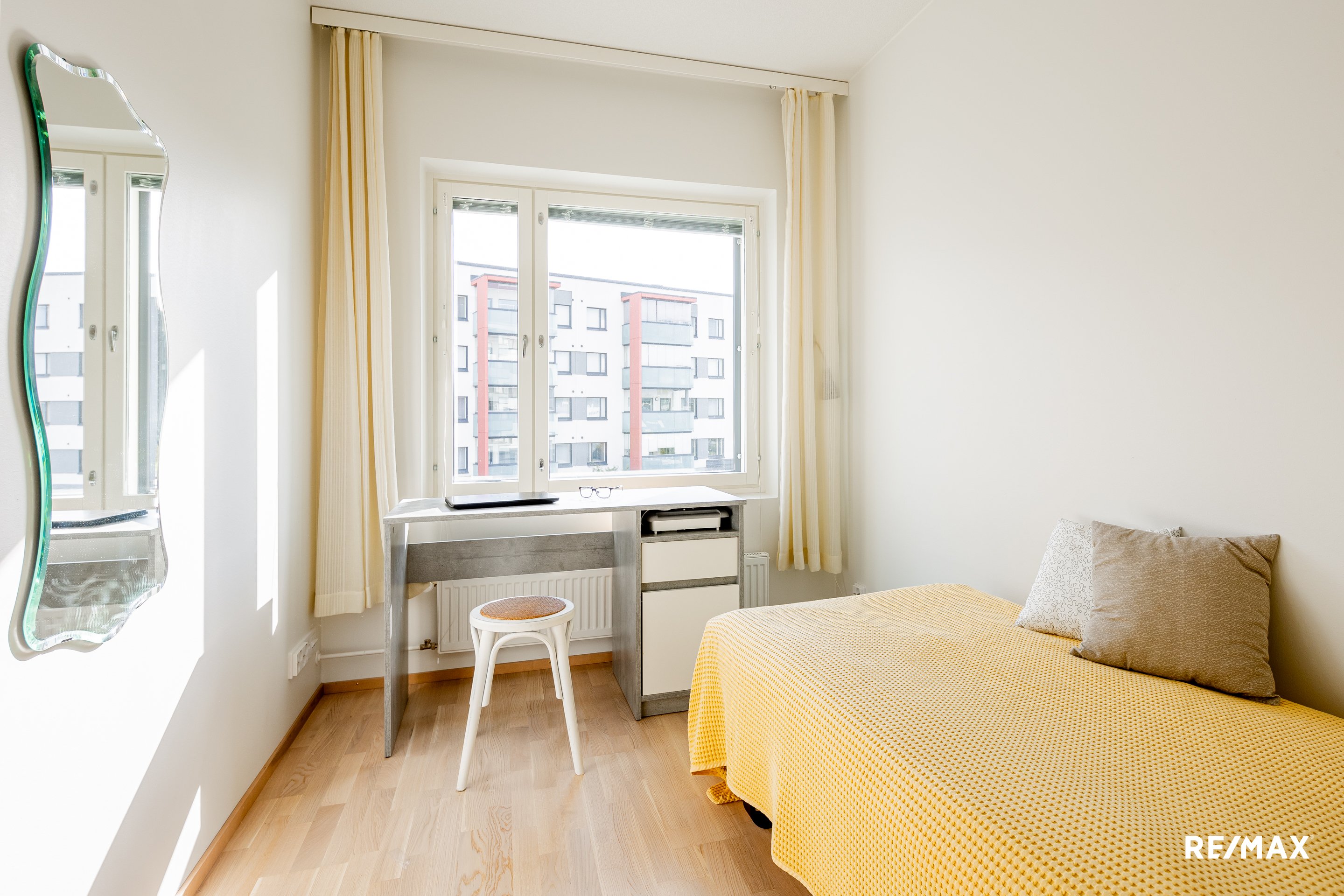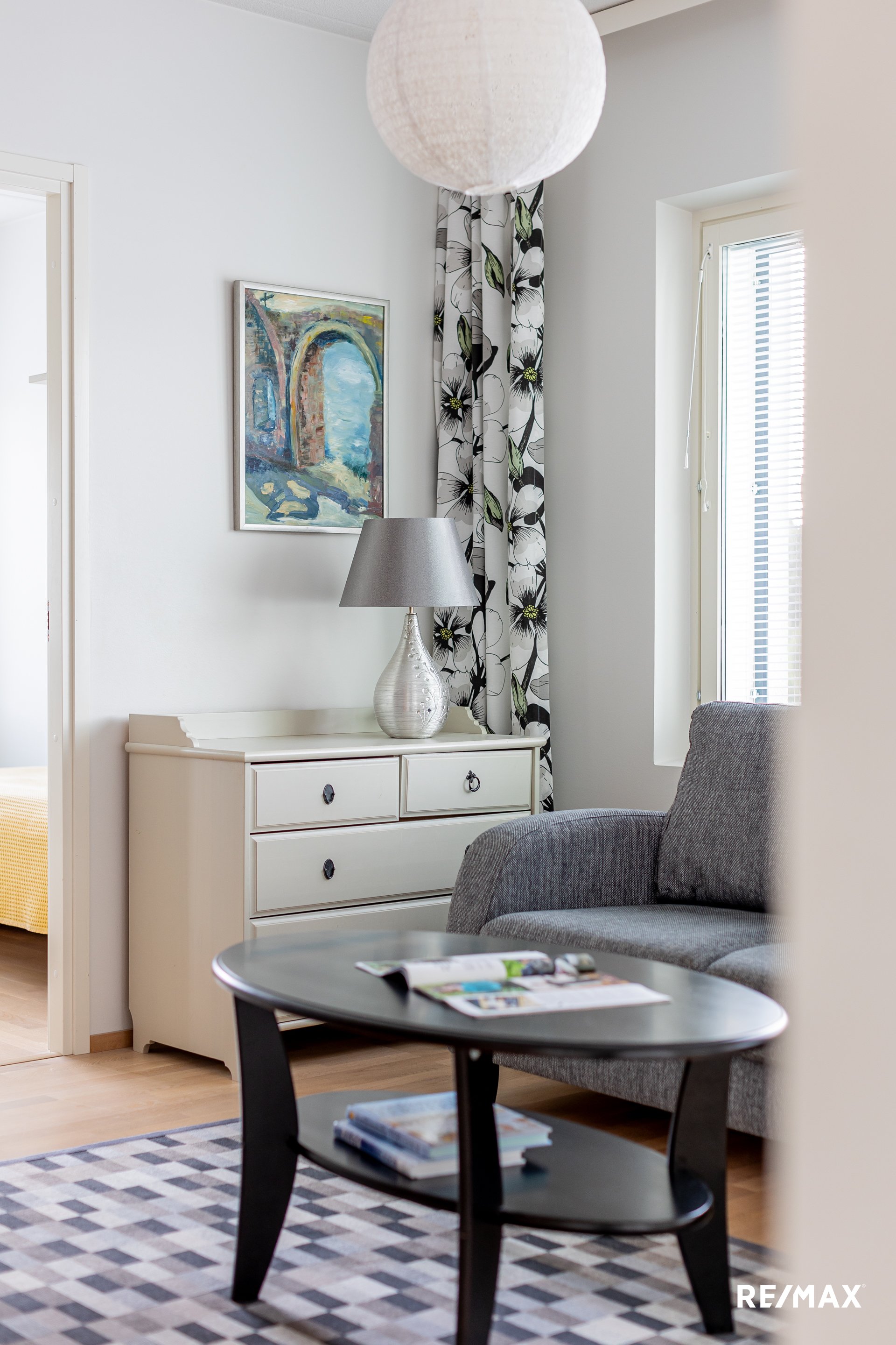 Asunnossa on kaunis parkettilattia, joka luo harmonisen ja nykyaikaisen tunnelman. Vaalea avokeittiö ja olohuone muodostavat avaran kokonaisuuden, jossa on tilaa niin arjen rutiineille kuin yhdessäololle. Kaksi tilavaa makuuhuonetta avautuvat Saloviuksenpihan viihtyisälle korttelipihalle, tarjoten viihtyisät puitteet lepoon ja rentoutumiseen. Oma tunnelmallinen sauna tuo arkeen ihanaa luksusta ja suuri lasitettu parveke kutsuu nauttimaan puistomaisista näkymistä ympäri vuoden. Käytännöllisyyttä asumiseen tuovat tilava ja tyylikäs kylpyhuone sekä pyykinhuoltotila.