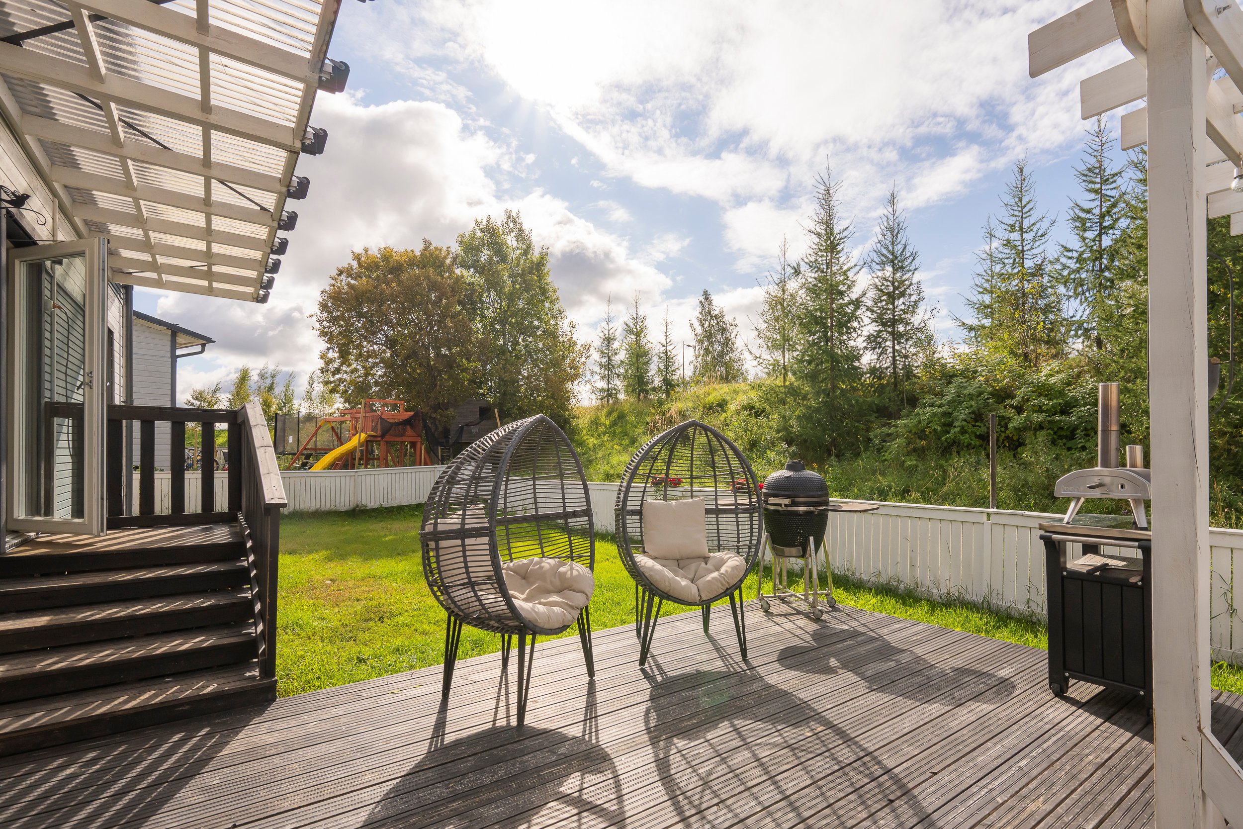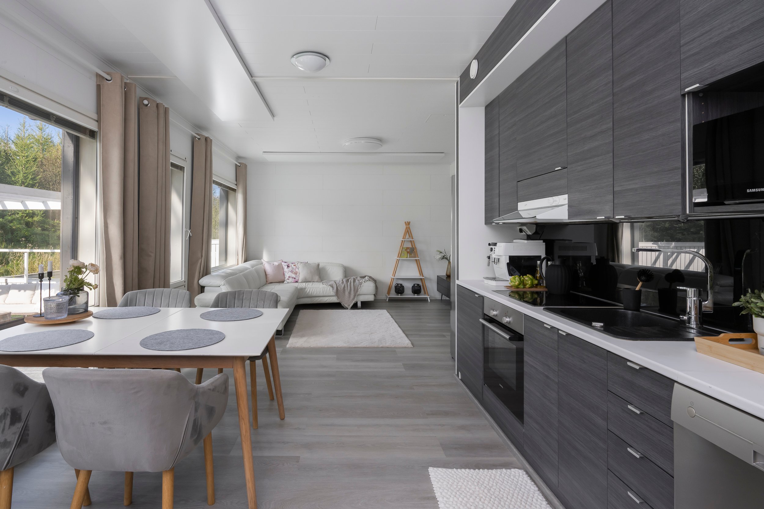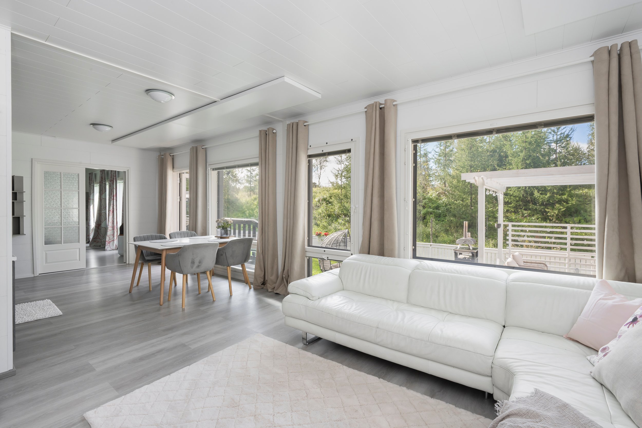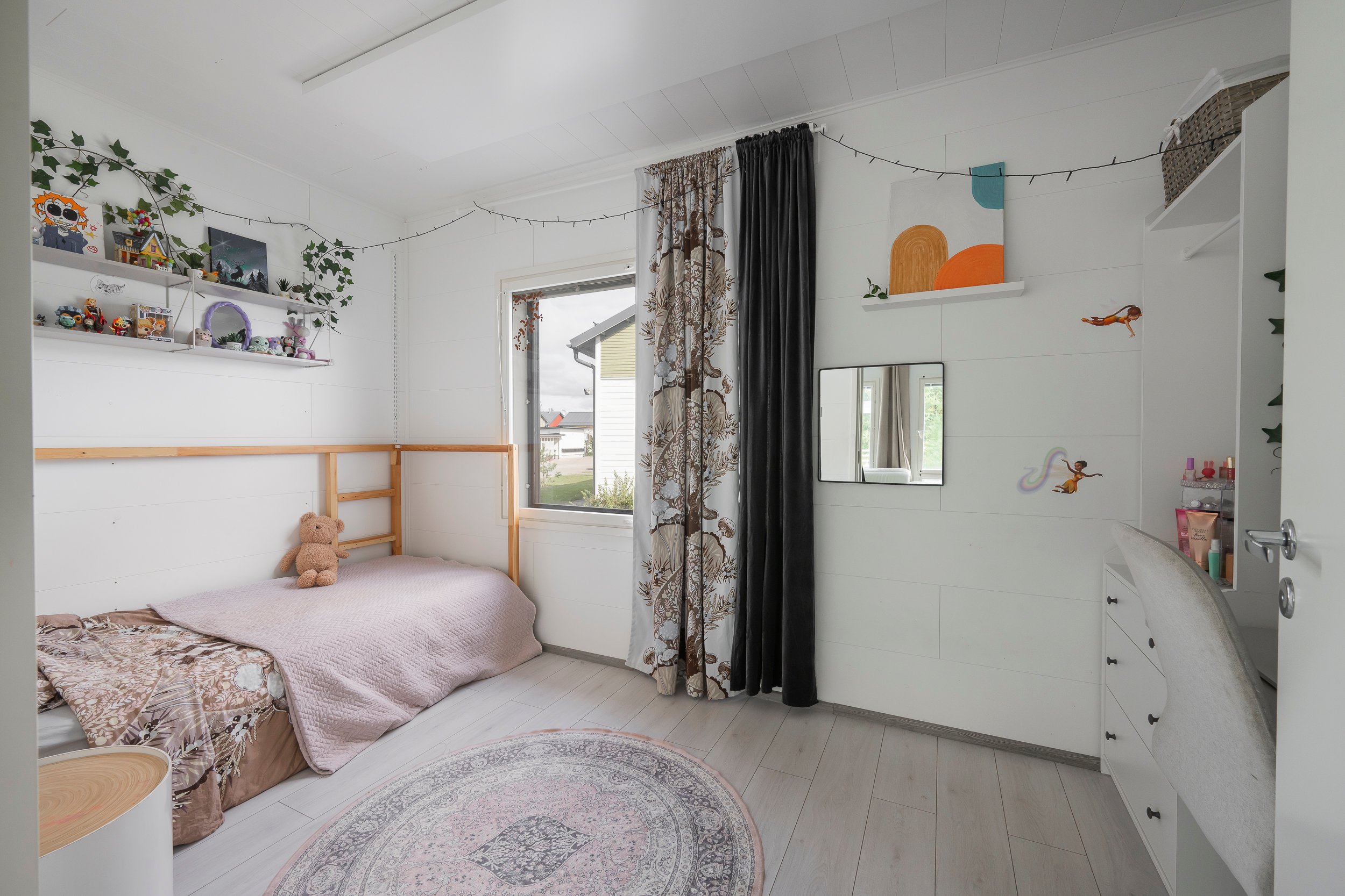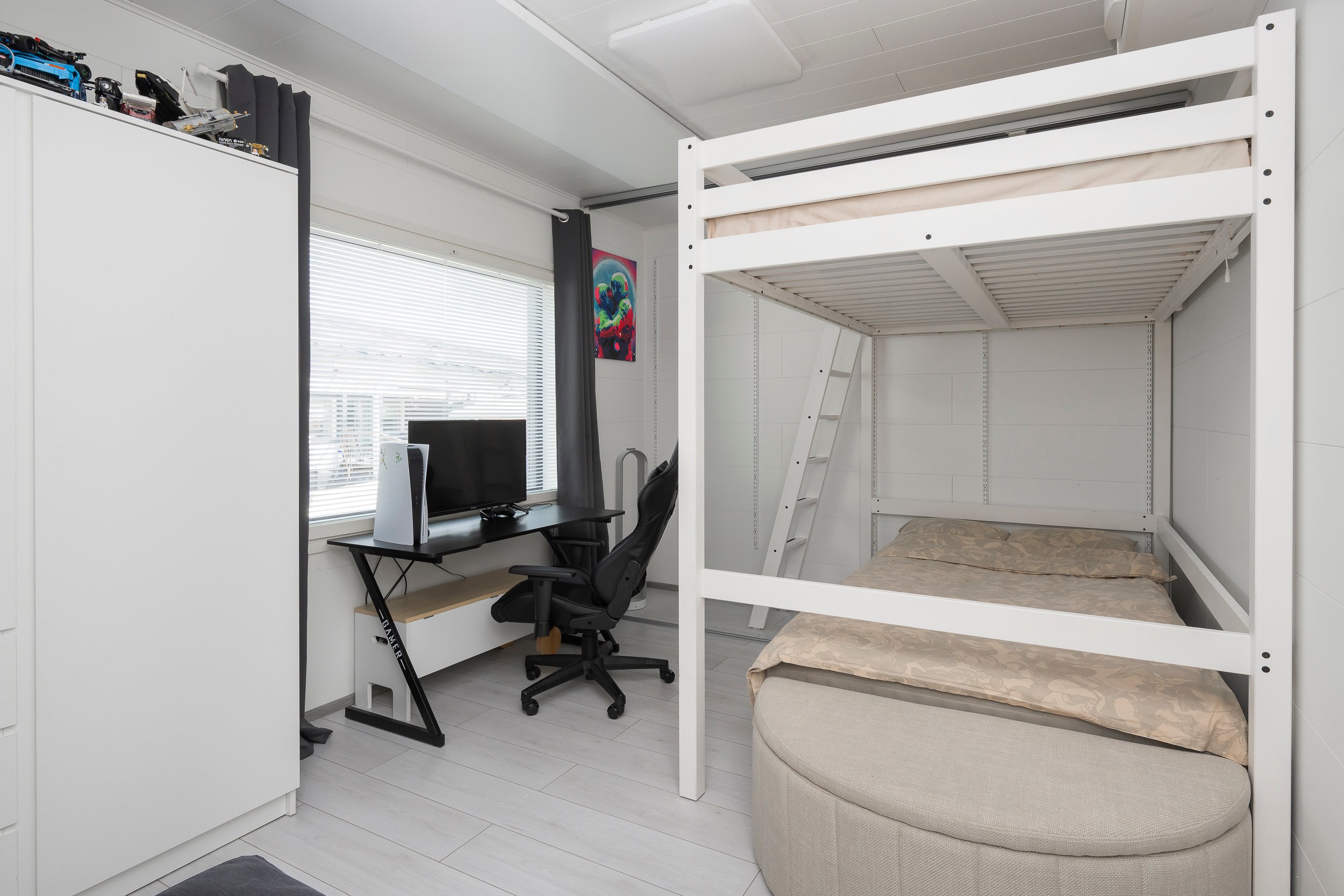 Tässä erillistalossa on kolme tilavaa makuuhuonetta, mukavan avara ja yhtenäinen keittiö/olohuonetila, josta pääsee lämpimään vuoden aikaan sujuvasti oleilemaan tilavalle ja suojaisalle aidatulle piha-alueelle, se onkin yksi tämän kodin parhaista puolista.