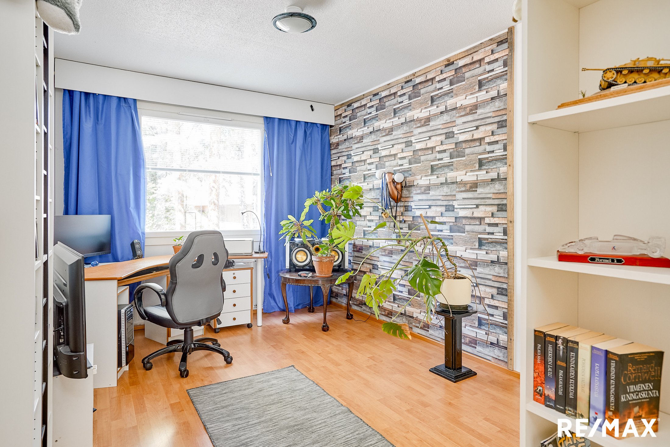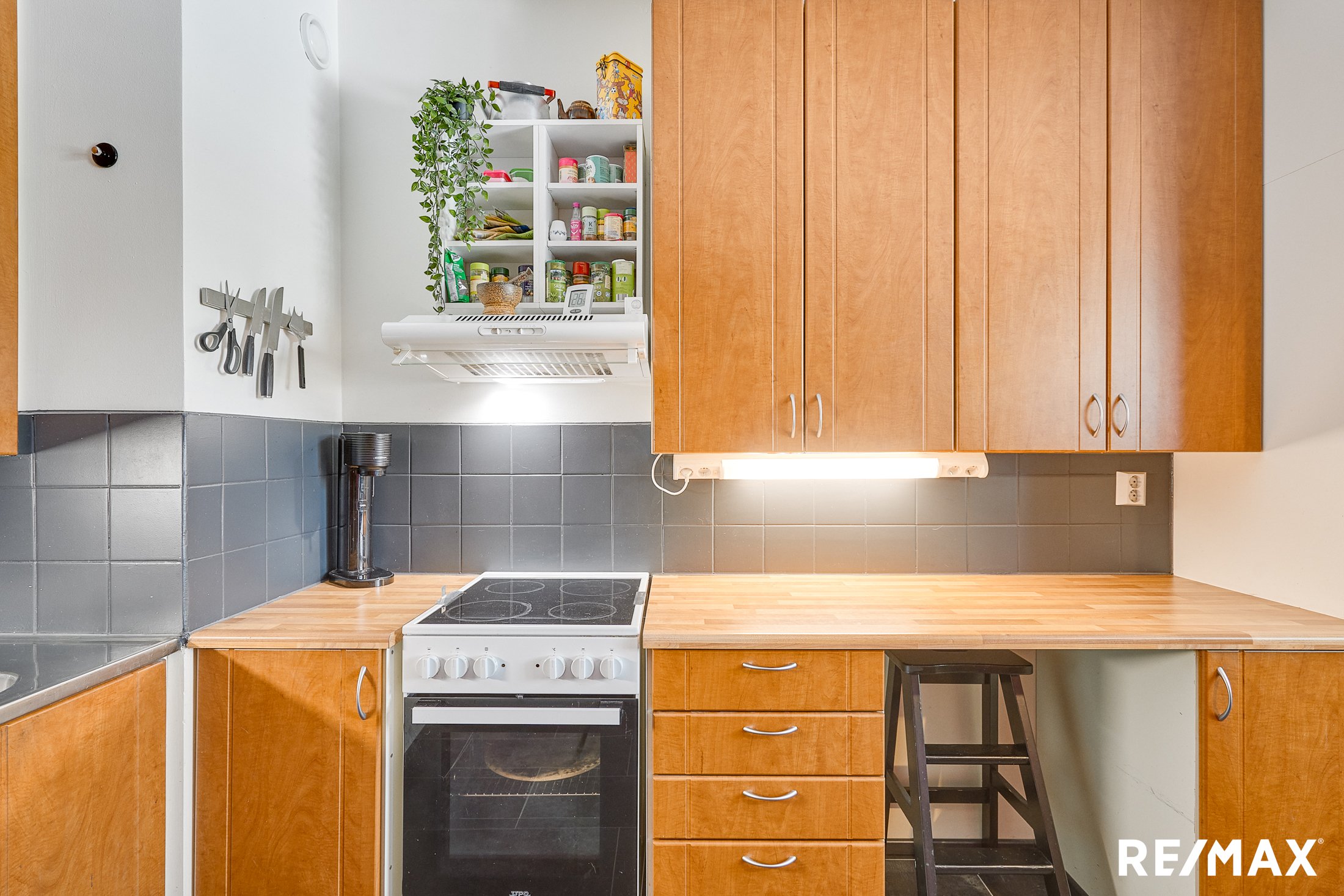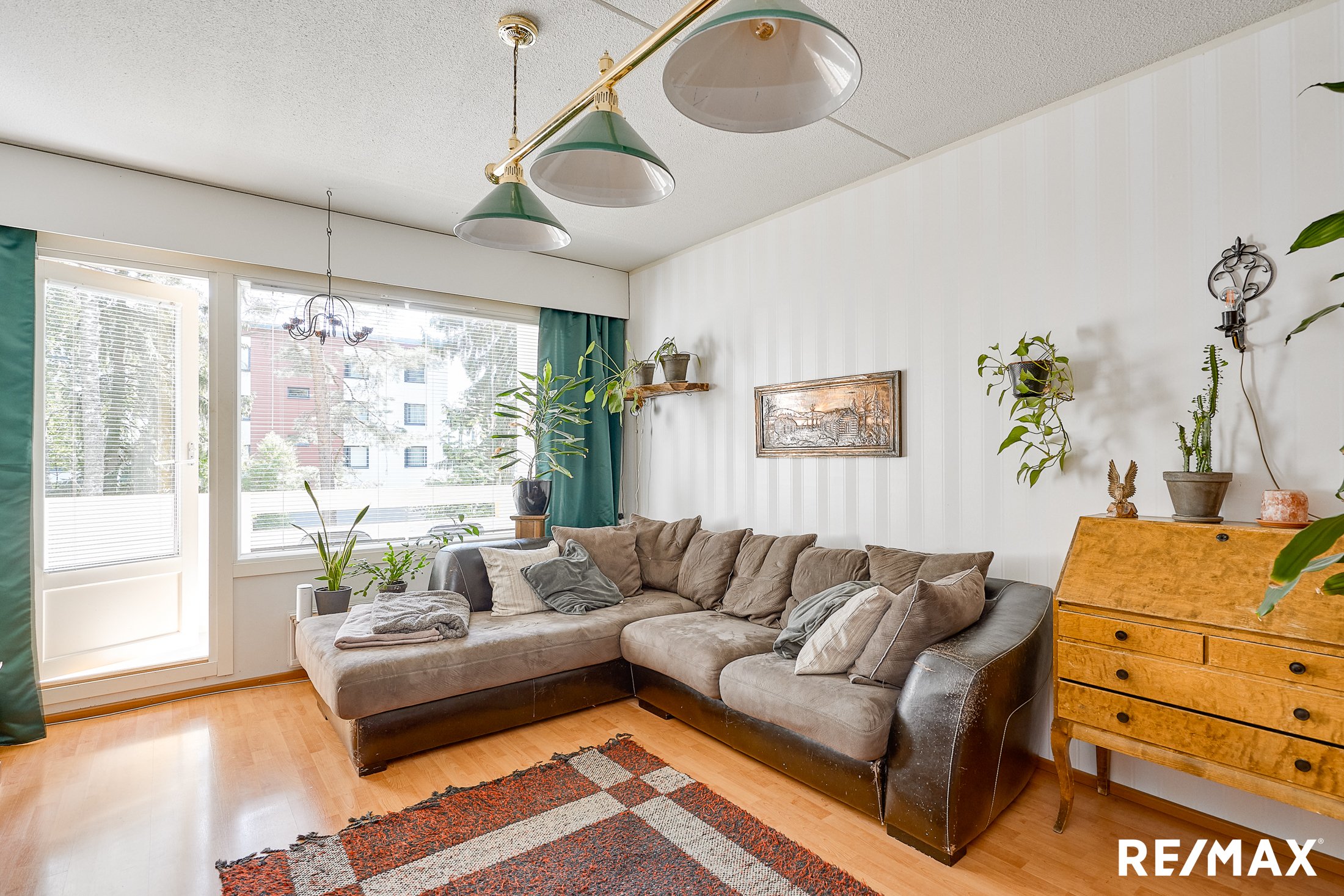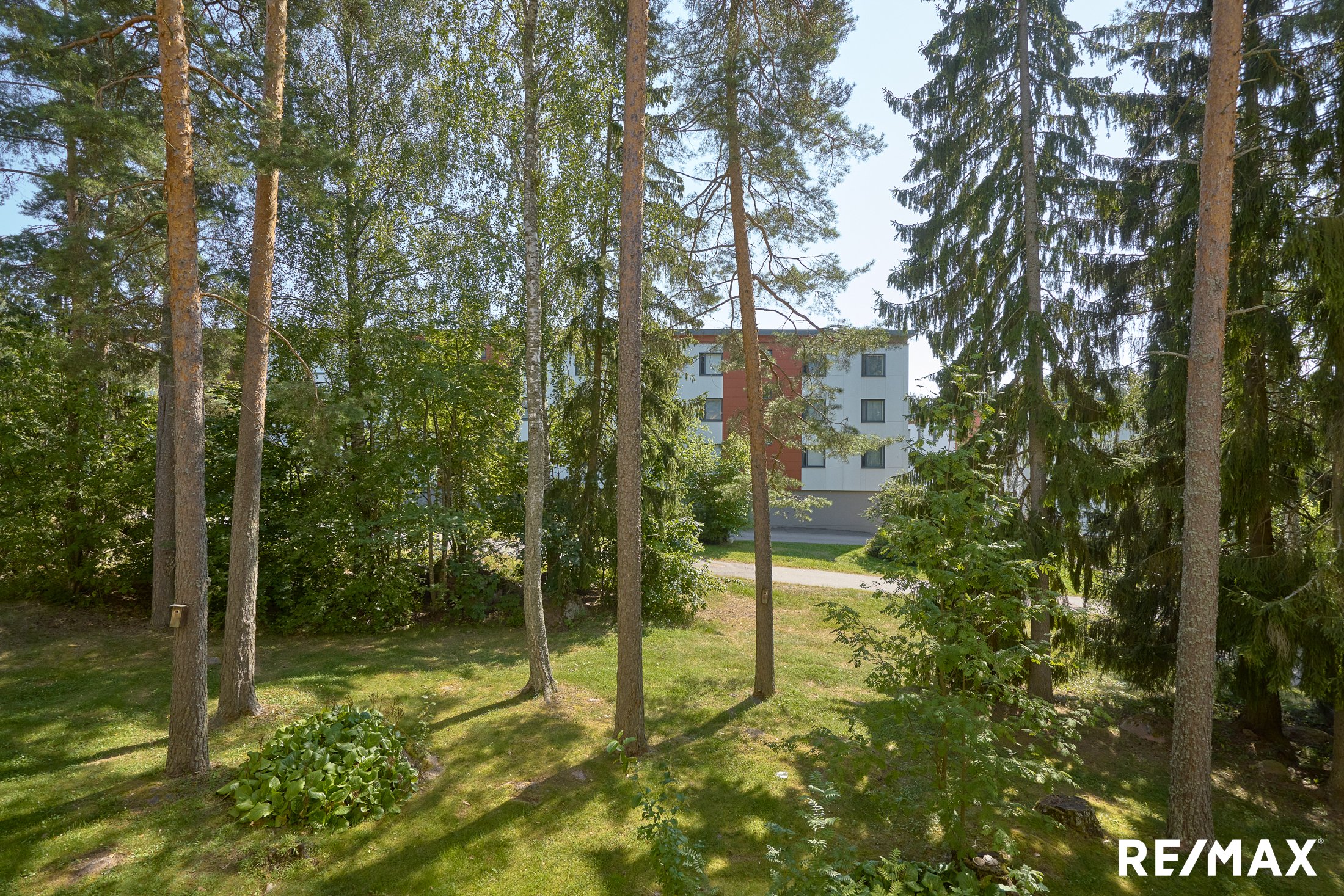 Pesuhuone laattapinnoilla. Tilava keittiö, josta ikkunanäkymät sisäpihalle. Asunnossa kaksi makuuhuonetta ja toisesta käynti vaatehuoneeseen. Viihtyisästä olohuoneesta käynti parvekkeelle ja näkymät vehreälle takapihalle. Huoneistoon kuuluu kaksi huoneistovarastoa taloyhtiön yhteistiloissa.